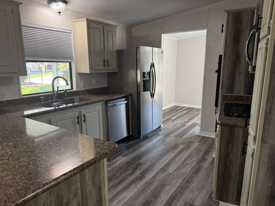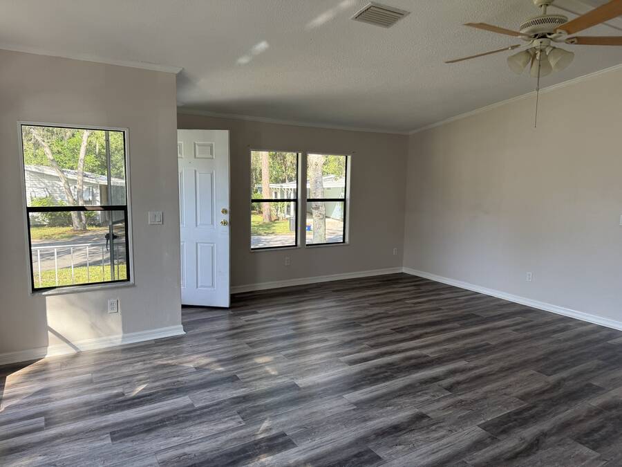 Newly renovated 2-bedroom, 2 bath home situated on desirable corner lot in a 55+ community. Updated kitchen with stainless steel appliances, solid surface counter tops and laminate flooring throughout. Newly installed HVAC system and roof. The community offers an active lifestyle and resort style amenities. Located on one of the most picturesque lots in the community. Available for immediate occupancy.