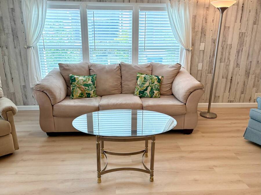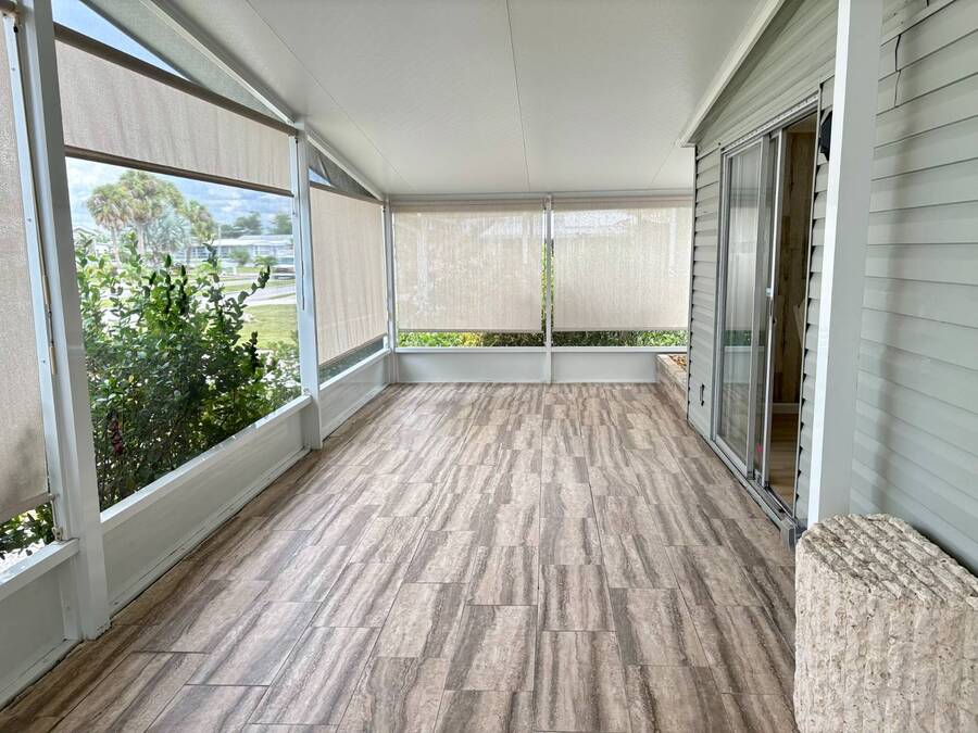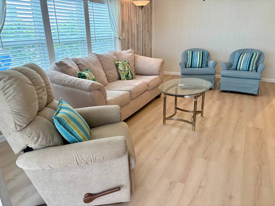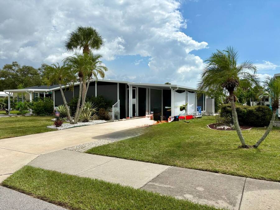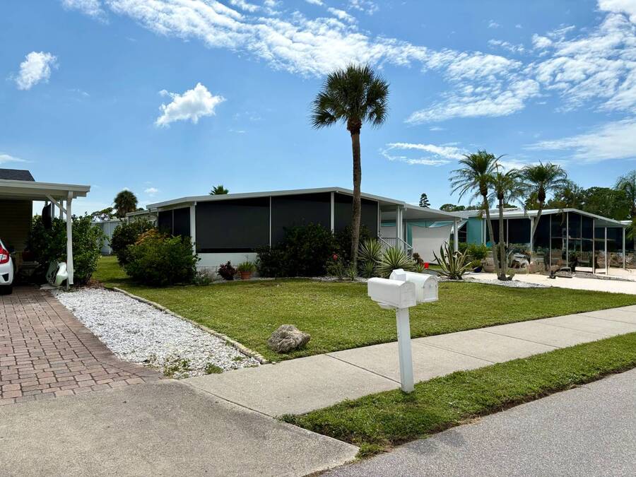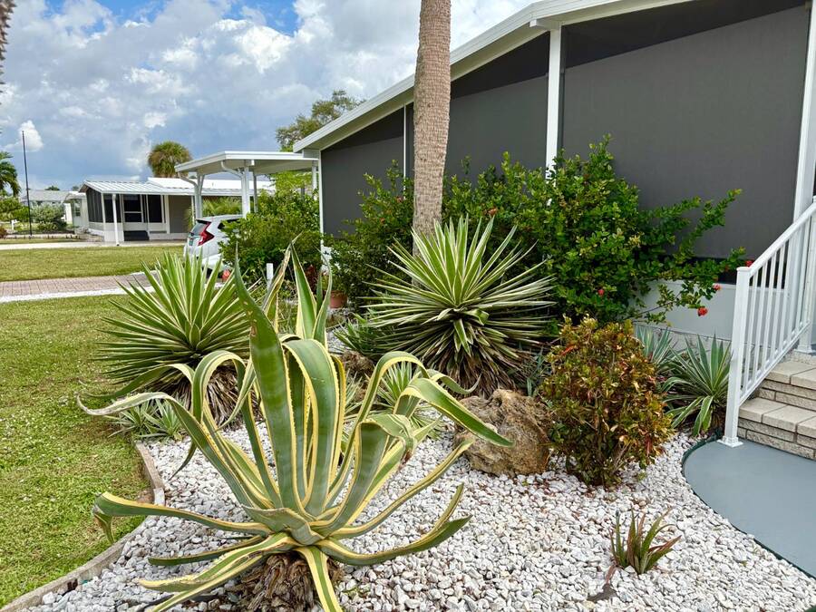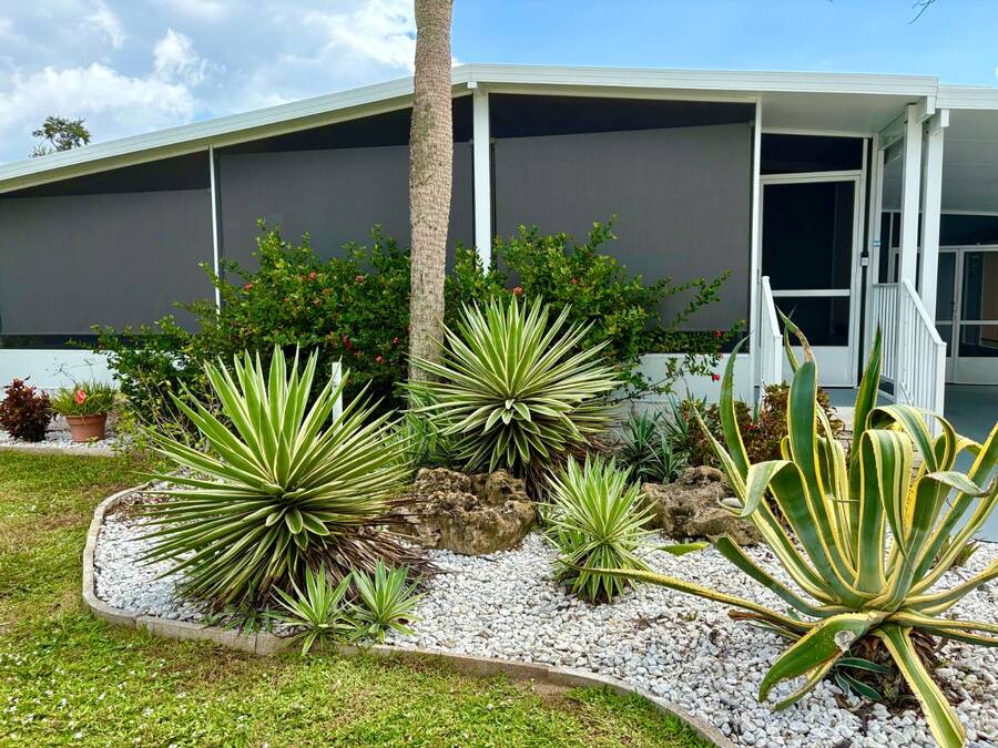 Welcome to 928 Lucaya, a fantastic new listing in the heart of the sought-after 55+ Resort Community of Bay Indies. This beautifully renovated 2-bedroom, 2-bath home measuring 24' x 40' is a true gem where every detail has been thoughtfully upgraded to offer comfort, style, and peace of mind. Perfectly positioned in the center of the park, it provides effortless access to all the amenities Bay Indies has to offer, making daily life both convenient and enjoyable. Just one mile from historic downtown Venice, you'll find yourself moments away from charming shops, delectable dining, pristine beaches, scenic golf courses, and endless opportunities for boating and fishing. Lucaya is a unique and welcoming street-it's the only one in Bay Indies that permits motorcycles and scooters, creating a sense of inclusivity and freedom that sets it apart. From the moment you arrive, the home's curb appeal is undeniable. Majestic palms frame a meticulously maintained lawn, while a freshly painted driveway leads to a new carport and a 2023 TPO roof. Updated double-pane windows enhance both the home's energy efficiency and its aesthetic charm. A reverse osmosis water softener system adds a luxurious touch, and water-resistant, 80% UV-filtering shades in the front lanai and side screen room ensure year-round comfort. The porch and carport roof are insulated, and the A/C and hot water heater, both replaced in 2019, provide reliable climate control and peace of mind. Step inside to discover a spotless, move-in-ready interior that comes partially furnished, making your transition seamless. Each room is adorned with a distinctive wall décor that adds warmth and personality throughout. The screen room off the carport features double doors, making it ideal for golf cart storage while also serving as a breezy retreat to enjoy Florida's outdoor charm. Just beyond, the insulated shed houses a stacked washer and dryer along with the hot water heater, and offers ample space for seasonal storage. The semi-open floor plan begins with a galley-style kitchen outfitted with stainless steel appliances, granite countertops, and abundant cabinetry. Between two pantries-some with pullout shelves-are storage bins that make organization a breeze. The dining area is cleverly designed with a flip-up table that seats four, complete with built-in shelves and hidden storage, maximizing both space and functionality. The expansive living room invites relaxation with a cozy sofa, recliner, and two occasional chairs, all anchored by a stylish wallpapered accent wall that adds a touch of coastal flair and creates the perfect setting for TV watching. Through the front entrance and off the living space, the lanai offers a tranquil space for unwinding or people-watching, bathed in natural light and gentle breezes. Down the hallway, a closet provides extra storage and leads to the guest bedroom, which comfortably accommodates any bed size and includes a closet with built-in drawers. The guest bath features a tub/shower combination, a spacious vanity, and a linen closet for added convenience. The master suite is a true sanctuary, highlighted by a large headboard with built-in shelves and nightstands that frame a king or queen bed. The newly redesigned ensuite bath is a private retreat, featuring a step-in shower with a glass door, a commode tucked behind a pocket door, and a vanity set against charming wallpaper. A dresser nestled in an alcove adds a touch of elegance, while two spacious closets ensure you'll never run out of storage. All listing information given to us is considered appropriate and reliable but should be independently verified through personal inspection by appropriate professionals. Home must be maintained to the Community Prospectus. The lot rent is determined by the Community office and covers all amenities offered including property taxes and lawn maintenance.