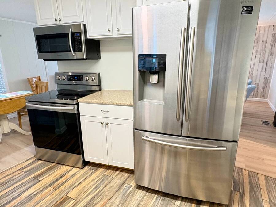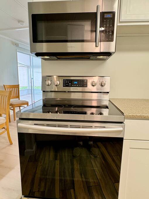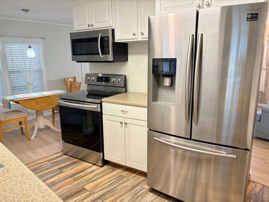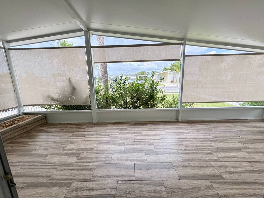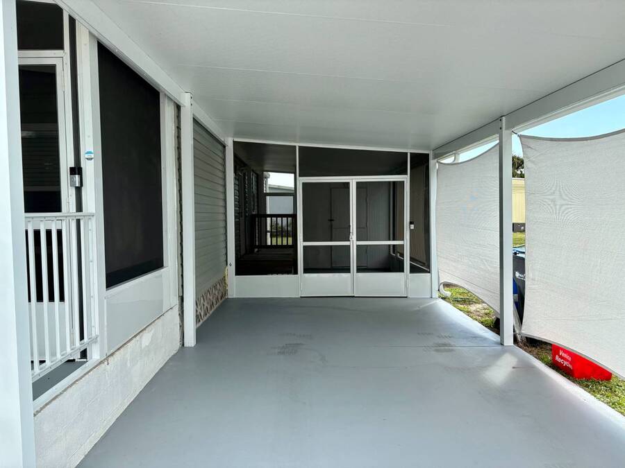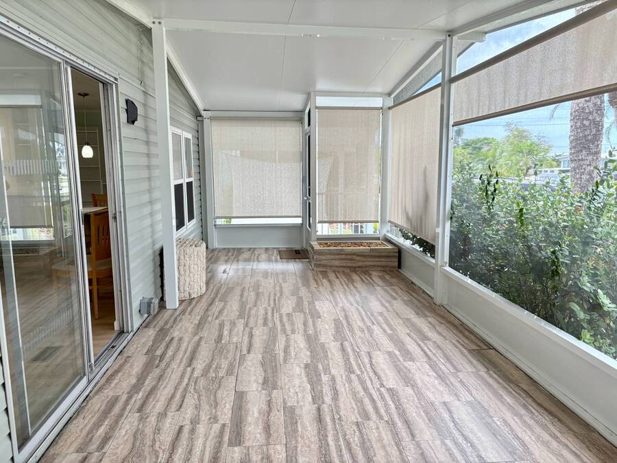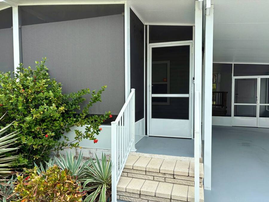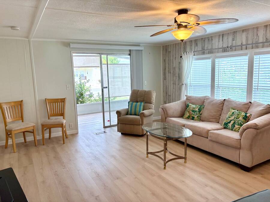 Welcome to 928 Lucaya, a fantastic new listing in the heart of the sought-after 55+ Resort Community of Bay Indies. This beautifully renovated 2-bedroom, 2-bath home measuring 24' x 40' is a true gem where every detail has been thoughtfully upgraded to offer comfort, style, and peace of mind. Perfectly positioned in the center of the park, it provides effortless access to all the amenities Bay Indies has to offer, making daily life both convenient and enjoyable. Just one mile from historic downtown Venice, you'll find yourself moments away from charming shops, delectable dining, pristine beaches, scenic golf courses, and endless opportunities for boating and fishing. Lucaya is a unique and welcoming street-it's the only one in Bay Indies that permits motorcycles and scooters, creating a sense of inclusivity and freedom that sets it apart. From the moment you arrive, the home's curb appeal is undeniable. Majestic palms frame a meticulously maintained lawn, while a freshly painted driveway leads to a new carport and a 2023 TPO roof. Updated double-pane windows enhance both the home's energy efficiency and its aesthetic charm. A reverse osmosis water softener system adds a luxurious touch, and water-resistant, 80% UV-filtering shades in the front lanai and side screen room ensure year-round comfort. The porch and carport roof are insulated, and the A/C and hot water heater, both replaced in 2019, provide reliable climate control and peace of mind. Step inside to discover a spotless, move-in-ready interior that comes partially furnished, making your transition seamless. Each room is adorned with a distinctive wall décor that adds warmth and personality throughout. The screen room off the carport features double doors, making it ideal for golf cart storage while also serving as a breezy retreat to enjoy Florida's outdoor charm. Just beyond, the insulated shed houses a stacked washer and dryer along with the hot water heater, and offers ample space for seasonal storage. The semi-open floor plan begins with a galley-style kitchen outfitted with stainless steel appliances, granite countertops, and abundant cabinetry. Between two pantries-some with pullout shelves-are storage bins that make organization a breeze. The dining area is cleverly designed with a flip-up table that seats four, complete with built-in shelves and hidden storage, maximizing both space and functionality. The expansive living room invites relaxation with a cozy sofa, recliner, and two occasional chairs, all anchored by a stylish wallpapered accent wall that adds a touch of coastal flair and creates the perfect setting for TV watching. Through the front entrance and off the living space, the lanai offers a tranquil space for unwinding or people-watching, bathed in natural light and gentle breezes. Down the hallway, a closet provides extra storage and leads to the guest bedroom, which comfortably accommodates any bed size and includes a closet with built-in drawers. The guest bath features a tub/shower combination, a spacious vanity, and a linen closet for added convenience. The master suite is a true sanctuary, highlighted by a large headboard with built-in shelves and nightstands that frame a king or queen bed. The newly redesigned ensuite bath is a private retreat, featuring a step-in shower with a glass door, a commode tucked behind a pocket door, and a vanity set against charming wallpaper. A dresser nestled in an alcove adds a touch of elegance, while two spacious closets ensure you'll never run out of storage. All listing information given to us is considered appropriate and reliable but should be independently verified through personal inspection by appropriate professionals. Home must be maintained to the Community Prospectus. The lot rent is determined by the Community office and covers all amenities offered including property taxes and lawn maintenance.
