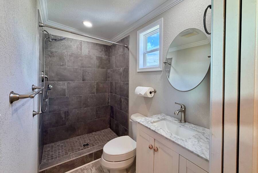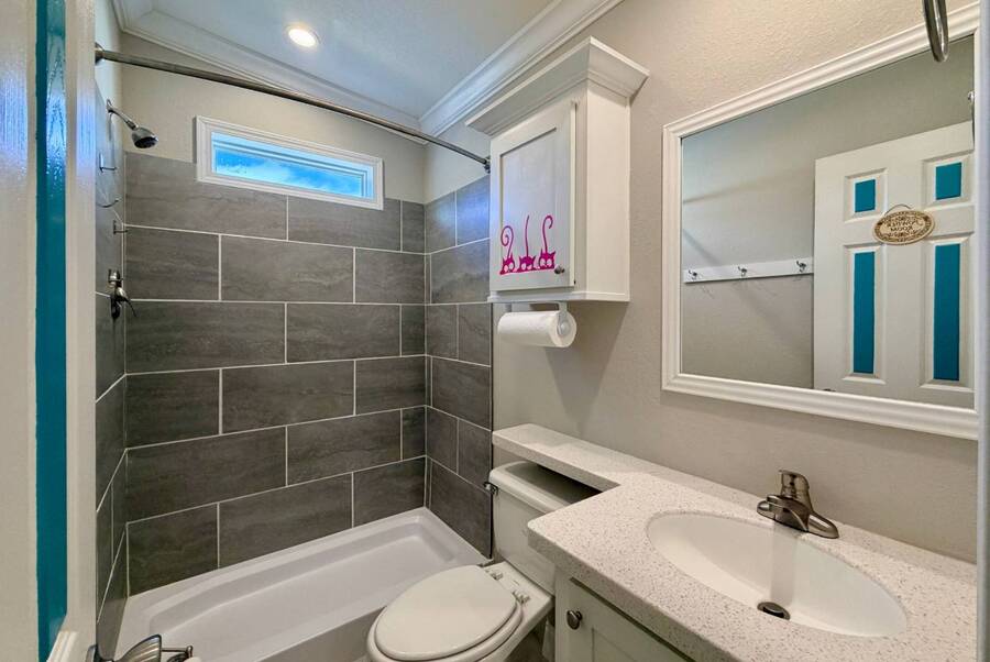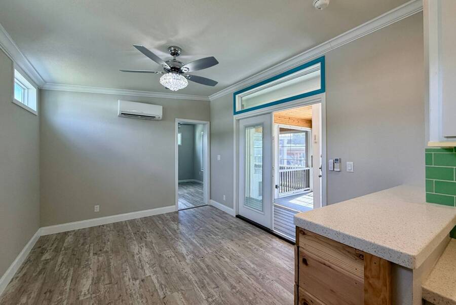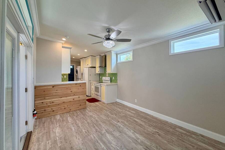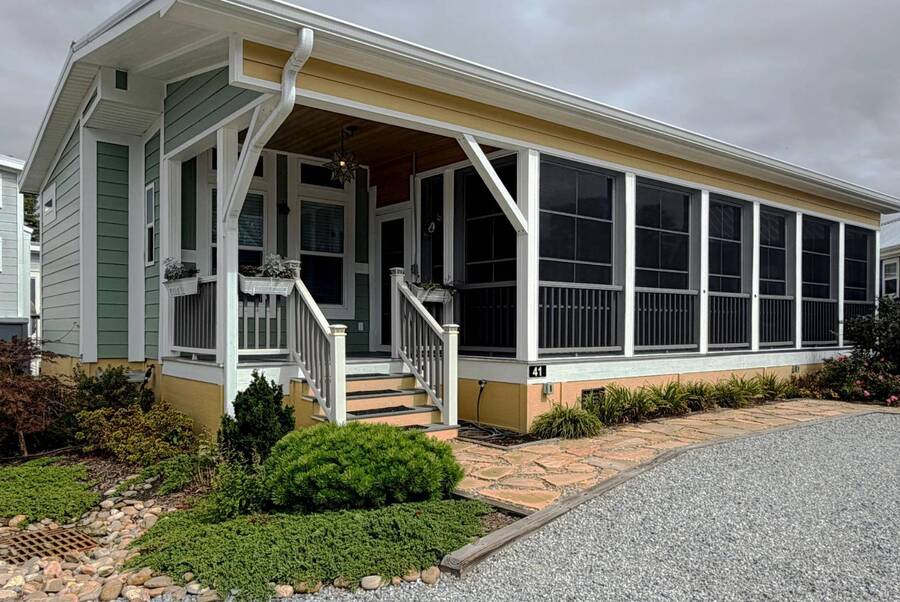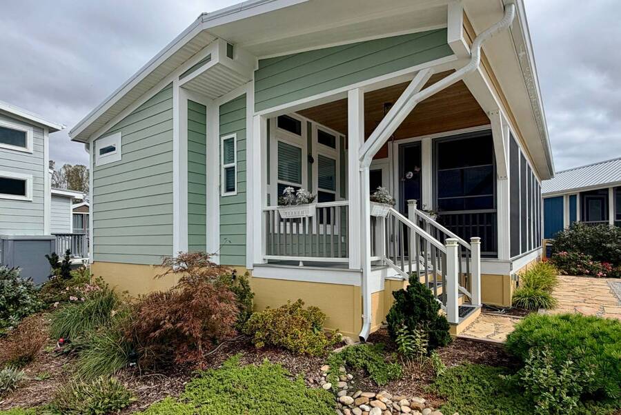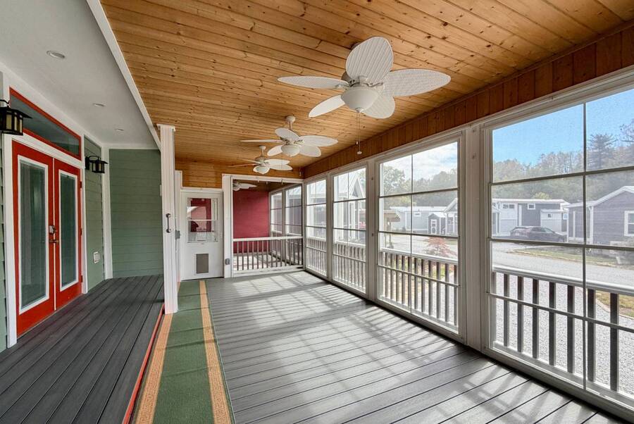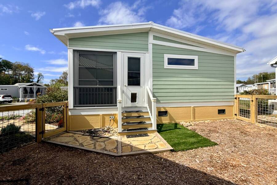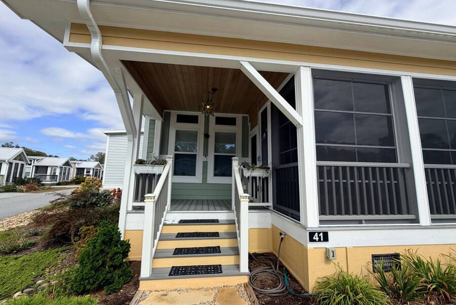 Discover the perfect blend of comfort and style at 41 Strolling Easy Lane, a beautifully designed 2-bedroom, 2-bath tiny home featuring an enclosed four-season room-ideal for morning coffee or evening relaxation. Step inside to an open floor plan with a cozy living area centered around a modern fireplace, perfect for year-round enjoyment. The kitchen shines with a large island, farmhouse sink, full-size appliances, and a garbage disposal, making it great for cooking, entertaining, or casual dining. Thoughtful details maximize functionality while maintaining charm. Outside, a full-size carport and versatile outdoor spaces enhance the appeal. Whether you seek a peaceful retreat or a full-time residence, 41 Strolling Easy Lane delivers comfort and character in every detail.