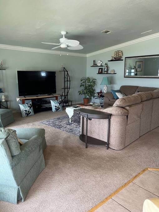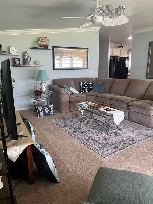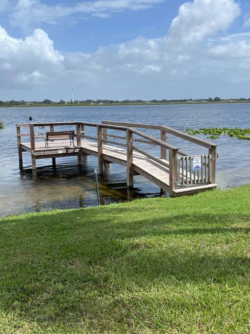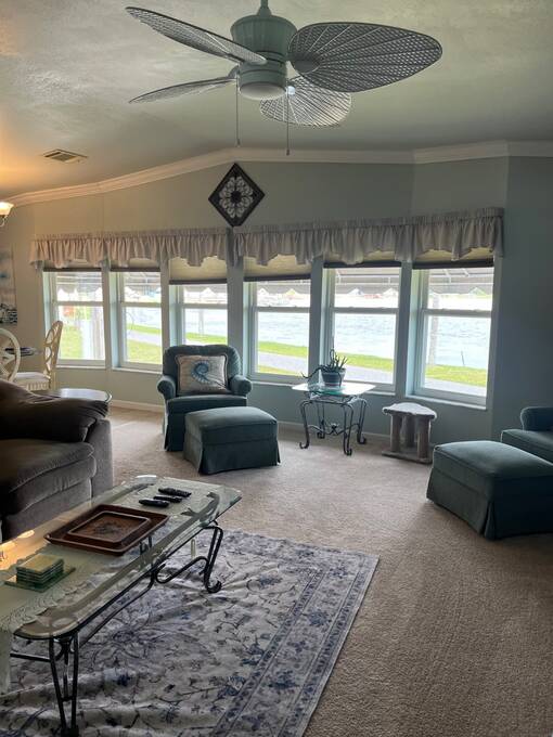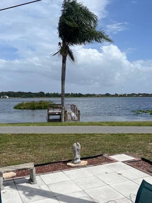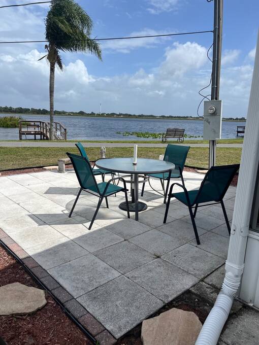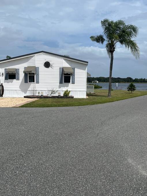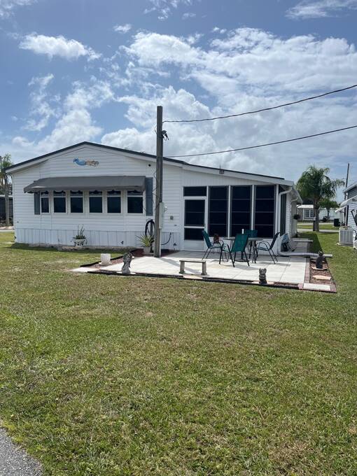 SELLERS OFFERING $5,000 TOWARD FIRST YEAR'S LOT RENT OR TO HELP WITH CLOSING COSTS. Welcome home to your new waterfront 2 Bedroom, 2 bath, separate den/bonus room home. Located in the active 55+ Orange Manor East Community. Spend quality time with friends and family in your new living room/kitchen open floor plan. Kitchen offers all modern appliances and you can enjoy a view of the beautiful lake while preparing your meals. The master bedroom has an oversized walk-in closet that joins a large master bath with private vanity area. Guest room has ample room with another large closet. Yes, there is an inside laundry room. Expand your living and entertaining space to the outside enclosed room (additional space), where you can sip your morning coffee while enjoying the sunrise over the lake, watch shuttle launches and enjoy catching that big bass on your own private dock. Orange Manor East is an active WATERFRONT community with a clubhouse, use of west side community pool, shuffleboard & bocce ball, and many social events to keep you active year-round! Conveniently located to both west coast and east coast beaches. Schedule your private showing TODAY! Sellers willing to negotiate furniture outside of closing.