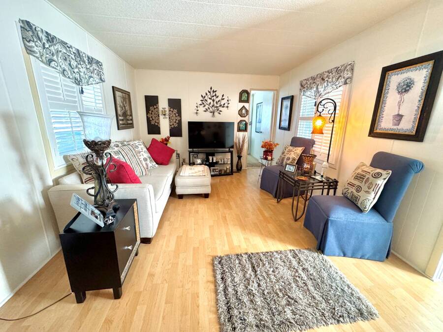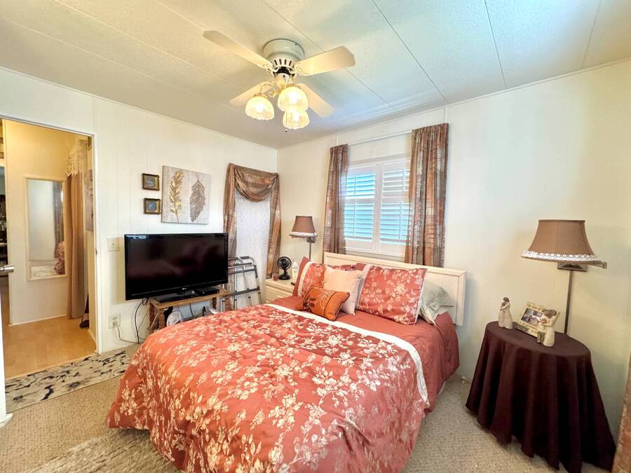 This beautifully maintained 2 bedroom, 2 bathroom home. The washer and dryer stay, along with all the essential appliances including the refrigerator, oven, and microwave. A handy storage shed provides extra space for your tools, hobbies, or seasonal items. Perfect for full-time living or a low-maintenance getaway, this home is clean, comfortable, and ready for you today! ~~~~ This community is less than 5 miles to the Worlds Most Famous Beach, Daytona International Speedway, and Daytona Beach International Airport. Grocery, pharmacy and convenience stores are starting from 1-2 miles away.Colonial Colony South 55+ community hosts social gatherings once a month. Colonial Colony South offers 2 swimming pools and a new FITNESS CENTER. Also, recreational facilities which include BOCCE ball, SHUFFLEBOARD, HORSESHOES, and a PICKLEBALL court. The community building features a dining area, 2 BILLIARD tables, and a CARD room, LIBRARY. Garbage and trash removal, lawn mowing, lawn pest control services, and cable TV service. All of which are included with the lot rent. This community requires a credit score of 675 and background check. Lot Rent is $863 per month. Don't miss out on this home, schedule a showing today! MOTORCYCLE FRIENDLY - Pet policy: 2 pets up to 25lbs (upon approval) *Listing data & Land lease/Lot rent is deemed reliable but is NOT guaranteed accurate.*