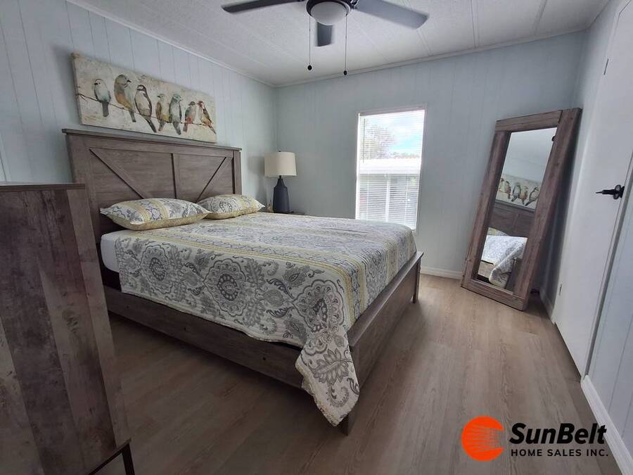 Turn-Key 1982 BRIG Home | 2 Bed / 2 Bath | 1,152 Sq. Ft. | Fully Furnished Welcome to this beautifully maintained turn-key 1982 BRIG home located in the highly desirable Rolling Greens Village 55+ resort community in Ocala, Florida, just minutes from Silver Springs State Park. This fully furnished home is truly move-in ready-all you need to bring are your personal belongings. The home features a beautifully remodeled kitchen with butcher block countertops, double sink, and newer appliances, including a dishwasher, microwave, and refrigerator (approximately 3 years old), with the stove about 5 years old. Major updates include new plumbing, new electrical, and new flooring throughout, along with updated bathrooms for comfort and peace of mind. Enjoy indoor-outdoor living with a 12x19 screened room, perfect for morning coffee or evening beverages, featuring French doors that open into a bright, spacious open-concept living and dining area. The home offers larger bedrooms, providing extra comfort and space. Step outside to the 10x12 winter/summer lanai, ideal for entertaining friends or relaxing with loved ones. A separate 4x7 laundry room keeps everything neat and functional, while the shed offers additional storage and space for your golf cart. A 10x11 driveway adds convenience, and a 48-volt golf cart is included in the sale. Rolling Greens Village Amenities Include: Executive golf course Multiple swimming pools and spa Clubhouse with planned activities and social events Fitness center Tennis courts Pickleball courts Bocce ball Shuffleboard Billiards & card rooms Library Ceramics & woodworking shops Horseshoe pits Walking and biking friendly community This is Florida resort-style living-active, social, and completely move-in ready.