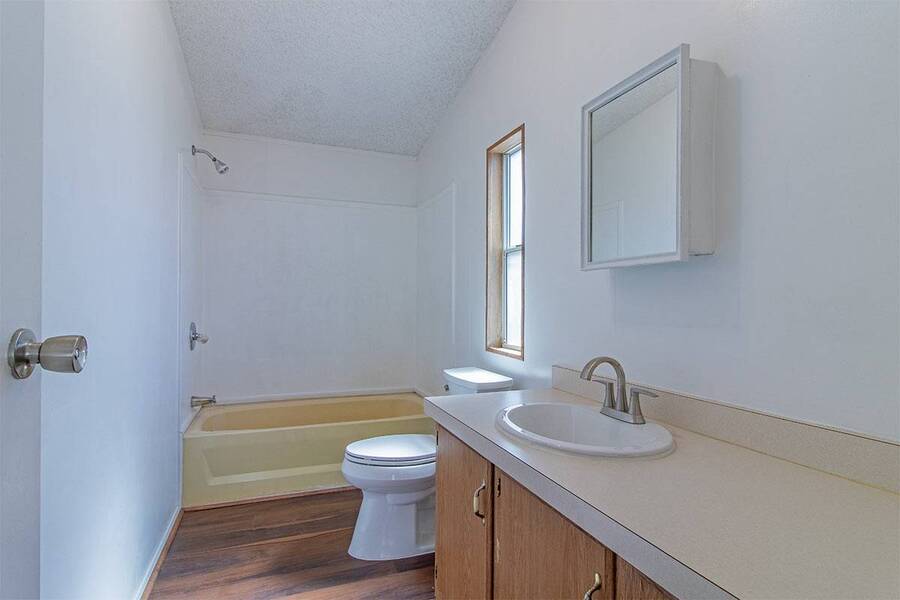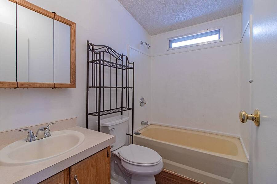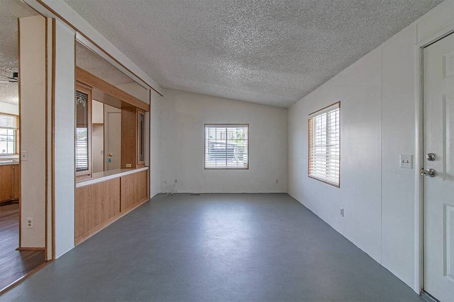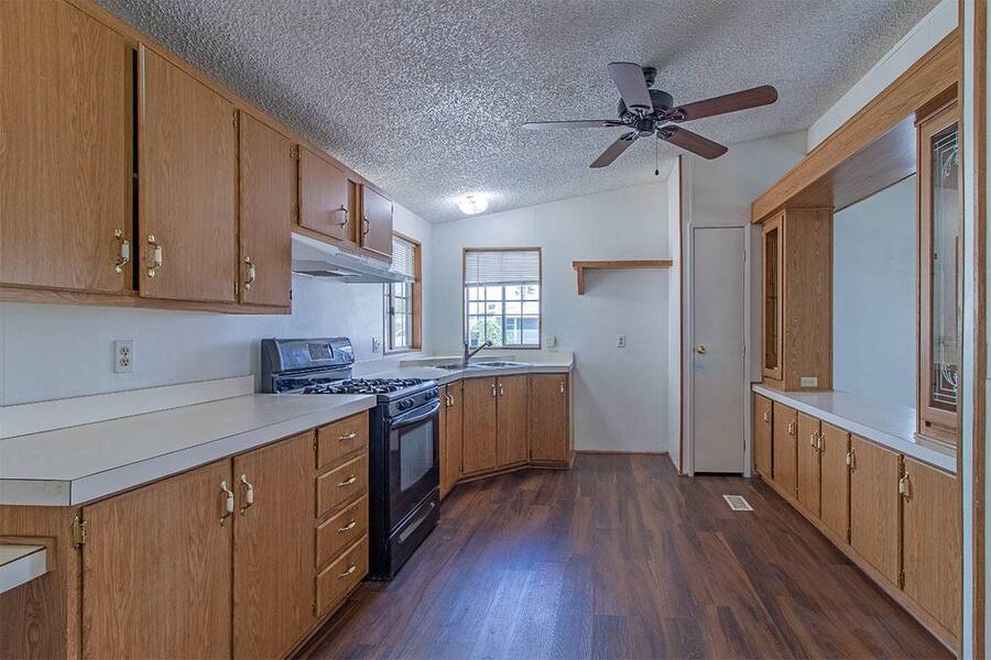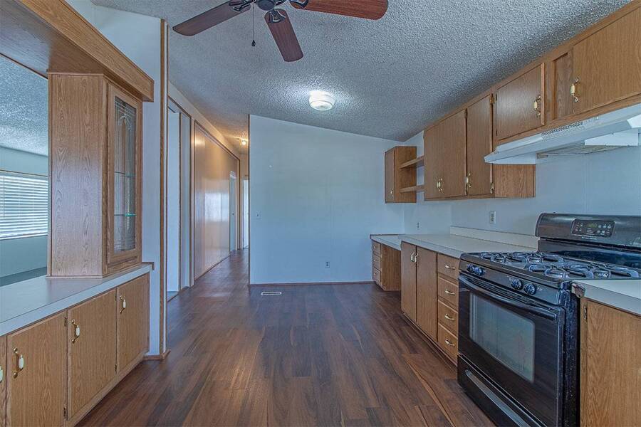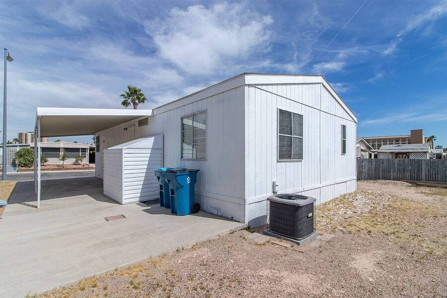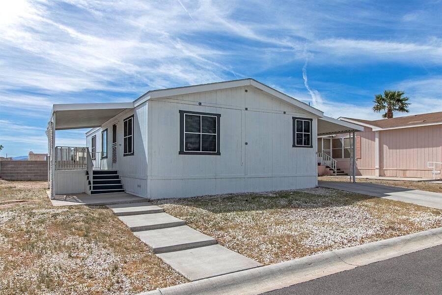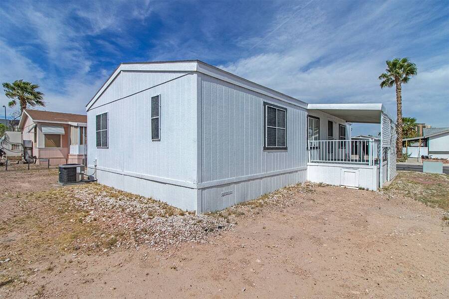 Move-In Ready 2-Bedroom 2-Bath Mobile Home For Sale in an All-Ages Land Lease Manufactured Home Community near the Fabulous Las Vegas Strip. Welcome home to this inviting 24x44, 1056 sq. ft. 2-bedroom, 2-bathroom plus den manufactured home nestled in the desirable Paradise Trails all-ages gated mobile home community. Perfectly designed for comfort and functionality, this move-in ready home offers everything a young family could want - from open living spaces to modern convenience and a great neighborhood atmosphere. Step inside to find a bright front living room with vaulted ceilings that create a spacious, airy feel. The kitchen and living area are separated by a beautiful built-in pass-through hutch, offering extra storage and a touch of character. The eat-in kitchen features ample cabinet and counter space, a pantry, and plenty of room for cooking and family gatherings. Outside, there is onsite covered parking for 2 vehicles under the attached carport, a storage shed at the end of the driveway, and low-maintenance landscaping for easy upkeep. Relax or entertain on your semi-private covered front deck, perfect for morning coffee or evening conversations. The shingle roof adds peace of mind and lasting durability. Paradise Trails is a gated, family-oriented community offering great amenities like a clubhouse and swimming pool - ideal for meeting neighbors and enjoying sunny Las Vegas days. The neighborhood is conveniently located near parks, shopping, restaurants, and entertainment, with quick access to public transportation for commuting around the Las Vegas Valley. If you've been searching for affordable mobile homes for sale in Las Vegas, NV, this home checks all the boxes - affordable, ready for immediate occupancy, located just off the Las Vegas Strip in one of the city's most convenient locations. Don't wait - schedule your private showing today!