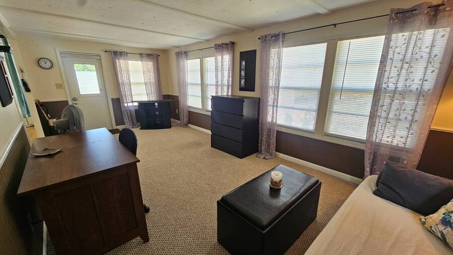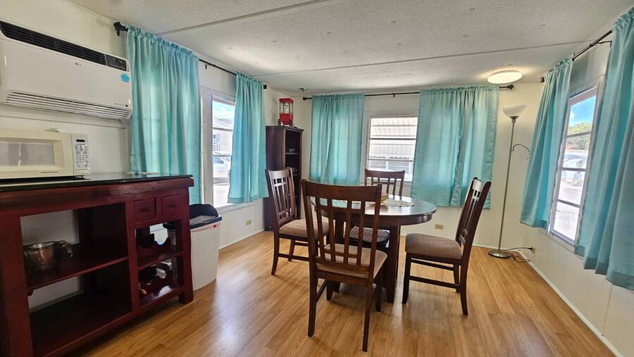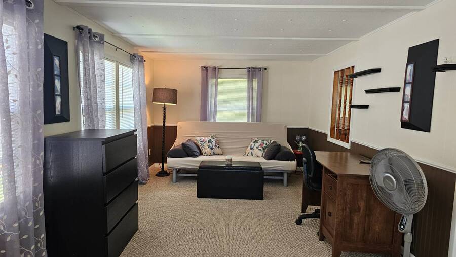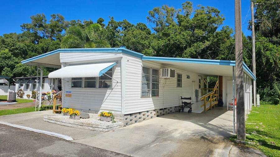 Situated in beautiful Clearwater, FL, Holiday Ranch is just 10 miles from the Coast! Enjoy the sunny Atlantic beaches or the warm Gulf of Mexico. With its on-site clubhouse, shuffleboard courts, and swimming pool you may never want to leave this beautiful age qualified 55+ manufactured home community. Holiday Ranch boasts a location near a wealth of shopping and dining opportunities all within 5 miles. Holiday Ranch also has easy access to public transportation, on-site laundry facilities, and on-site management. The Tampa/Clearwater/St. Petersburg metro area is a bustling area, and Holiday Ranch offers you an escape right in the middle of it. Lot Rent $940 includes water, sewer, garbage, lawn maintenance and full use of the amenities. This fantastic 1 bedroom plus bonus home is fully furnished and turn key! Enter the home from your cute covered porch into your open concept kitchen, dining, living and Bonus Room. The kitchen features newer modern cabinets and counters, stove/oven combo, refrigerator and microwave. The dining Area is perfect for a table that seats 2-4 people and guess what? There is one already there for you! The Bonus Room is just off the kitchen and set up as additional living space. Currently, there is a futon providing a "guest area". Just down the hall you will find the bathroom. The bathroom is nicely updated with a step in shower, large vanity and additional linen storage. A few more steps down the hall is the spacious bedroom. The bedroom is fully furnished and offers two large closets spanning the entire wall. Outside of the home you will find a large covered carport with room for 2-3 cars. At the end there is a shed with washer and dryer. If you love spending time outdoors you will love this back yard! It offers privacy, peace and quite! Do not miss out on this great home! Call Chris TODAY to see this home or make an offer! All listing information is deemed reliable but not guaranteed and should be independently verified through personal inspection by appropriate professionals. All Florida Mobile Home Sales Inc. cannot guarantee or warrant the accuracy of this information or condition of this property. The buyer assumes full responsibility for obtaining all current rates of lot rent, fees, and pass-on costs. Additionally, the buyer is responsible for obtaining all rules, regulations, pet policies, etc., associated with the community, park, or home from the community/park manager. All Florida Mobile Home Sales Inc is not responsible for quoting of said fees or policies.