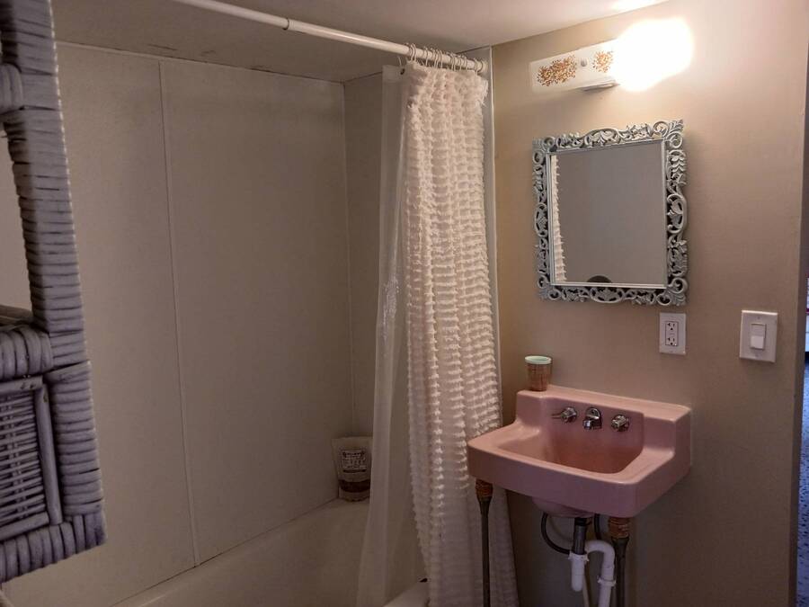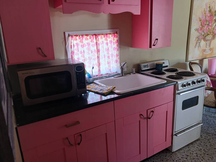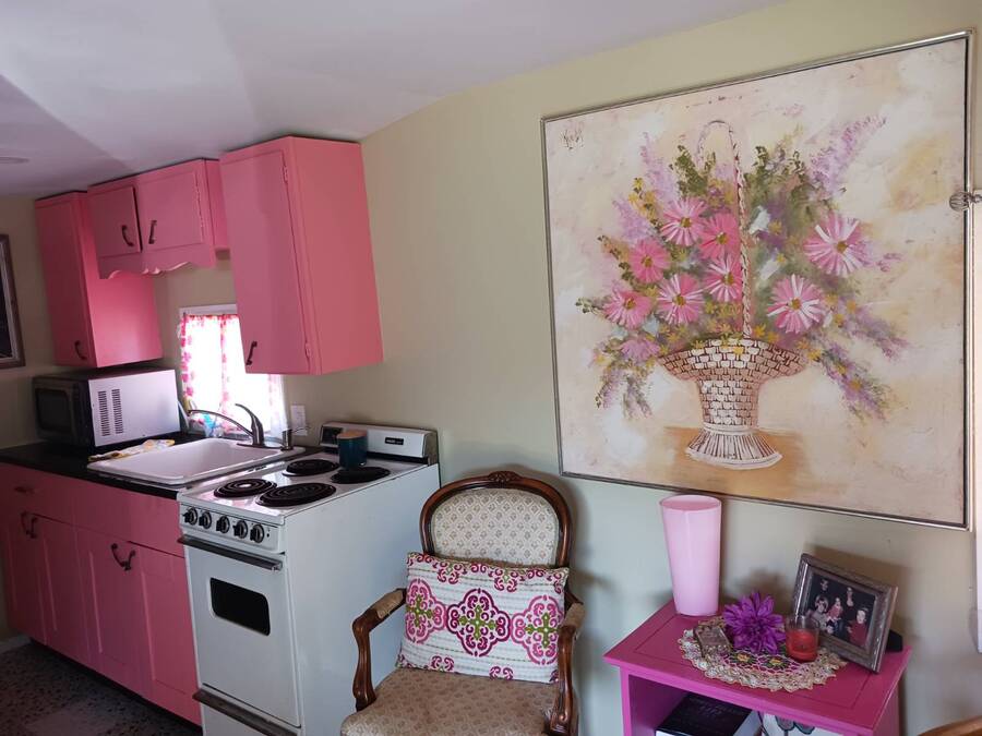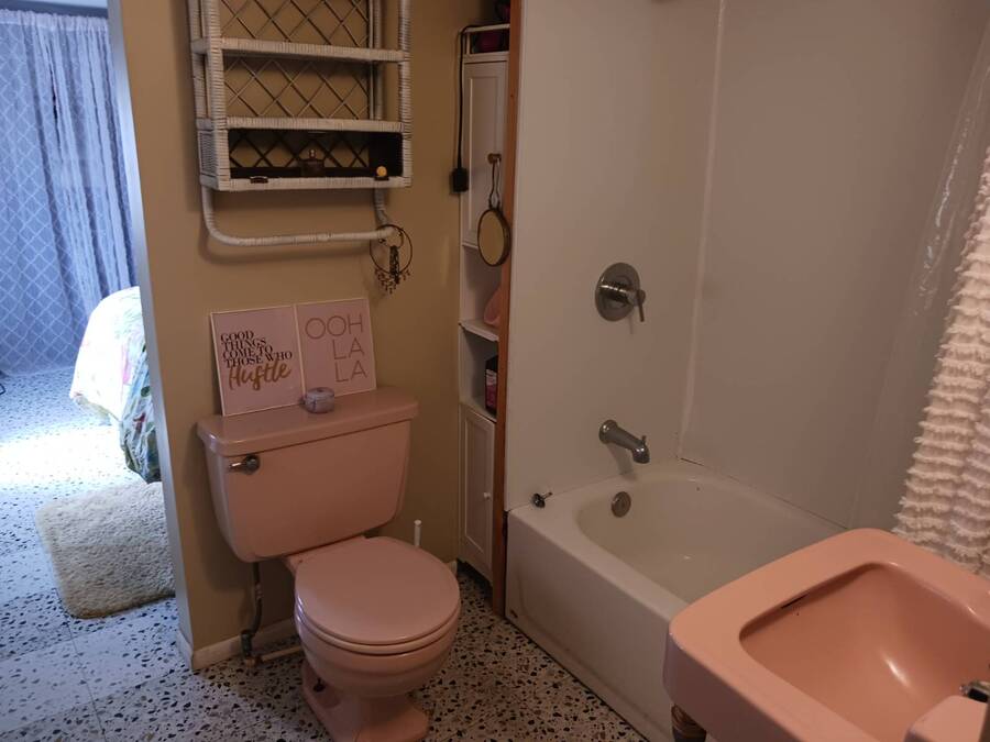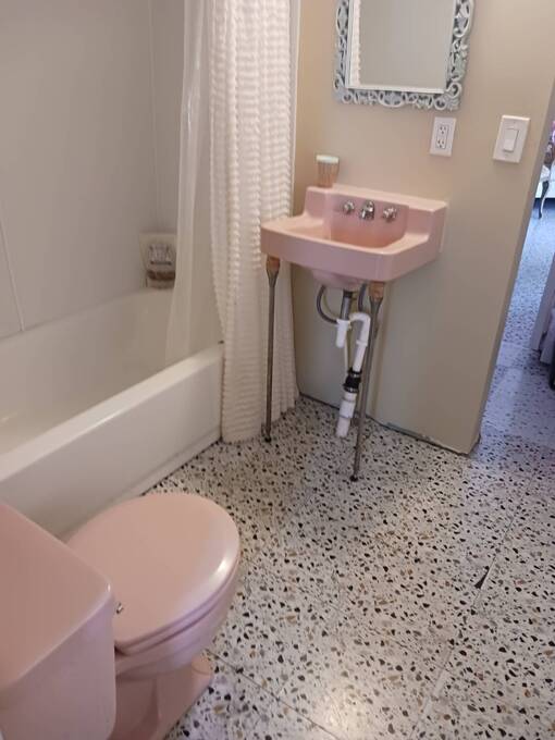 Welcome to this 1957 Era mobile home that was completely redone in the style of the that time. The new subfloors are soild & have new 1950's style Terrazzo vinyl decorative flooring. The bathroom is completely new! New bath tub & accented with a vintage pink sink!! This is an absolutely adorable retro mobile home. Little Pinky, has one bedroom, one bath, a nicely updated kitchen, cozy living room, and the covered carport / patio extends the living space. 55+ community, lot rent is $550, close to shopping & beaches , zone X- non Flood. Great if you want a 2nd home in Florida that's affordable, or year round affordable living. Must see this lil gem in person to appreciate. Call today!