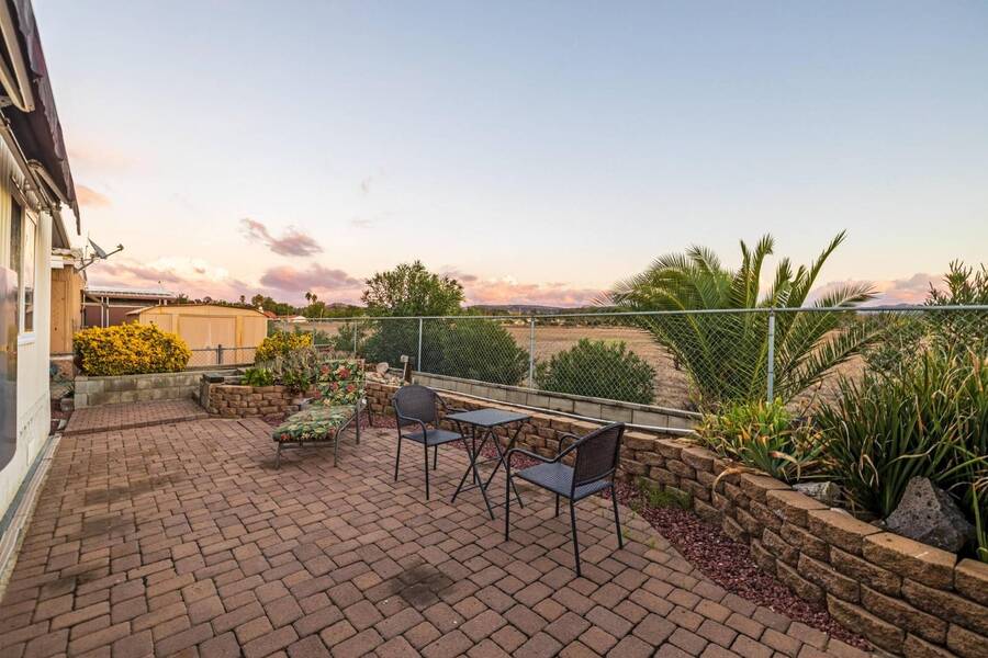 PRICE INCREASE TO REFLECT THE FOLLOWING ITEMS BEING TAKEN CARE - BRAND NEW ROOF with warranty, solar warranty transferred, new carpet in living room / both bedrooms, paint living room/ceiling and master bedrooms, replace filter for heating system, AC/Furnace/ and vents serviced, water heater - sediment trap installed, repair/replace water heater flue in water heater closet, repair breaker and outside branch circuit conductors, install GFCI in kitchen and both bathrooms, install all needed smoke alarms and carbon monoxide detector, pressure wash exterior of home and clean up the yard. (front/side/back) VIEW UPON VIEWS UPON VIEWS! Welcome to Ramona Terrace Community Estates, a highly desirable 55/50+ senior mobile home park nestled within the heart of beautiful small town Ramona. Welcome home to this charming and energy-efficient 2-bedroom, 2 full-bath Manufactured Home offering 1,152 sq ft of comfortable living with a detached CA enclosed room. Enjoy added privacy with no rear neighbors and relax in your private backyard complete with stylish pavers-perfect for outdoor entertaining, bbq, and a killer 4th of July firework show! The extended driveway provides extra space for leg room and parking, while the covered, enclosed California room off the front porch offers versatile space for storage, a home office, or an extra lounging area. Inside, you'll find some modern updates throughout and the convenience of a keyless keypad entry on both doors. All appliances will be included! Don't miss this rare opportunity for affordable, private living with sustainable solar power! Park amenities include ~ Large clubhouse with full range kitchen, heated pool, jacuzzi, 2 saunas, card/activity room, library, showers, laundry facility, car wash, dog park, golf carts allowed, motorcycles allowed, weekly/monthly/yearly activities! Space rent is $1,350 per month. Monthly Park utilities are $87.61 to include maintenance, paramedic, cable, and sewer. Park requirements to be approved for residency - No evictions, credit score minimum of 600, 2.5x monthly rent (can be combined income). Two pet's max (30 lbs. weight limit). Contact the front office to get pre-approved and submit your offer! (AAH1444) At In The Park Manufactured Home Sales, we know what it's like to live in a manufactured home - Our owners, staff, and agents are part of these communities too! We're here to guide you through every step of the process. From start to finish, we're here to make your home buying journey smooth, simple, and stress-free. Call today for more details and to schedule a tour! Each person applying for residency in the community must complete an application and meet the residency requirements. Call me for all information. All measurements are approximate, and lot lease amounts are estimated and subject to change. We can help with the financing process to help make your dream home a reality. Se Habla Español - Chúng tôi nói ting Vit - We're here to help in English, Spanish, or Vietnamese!