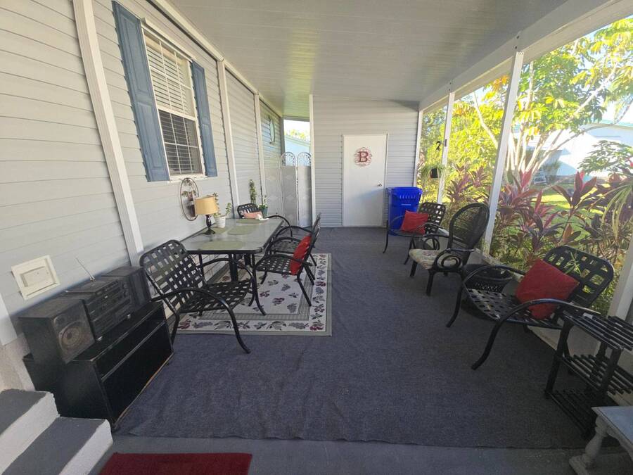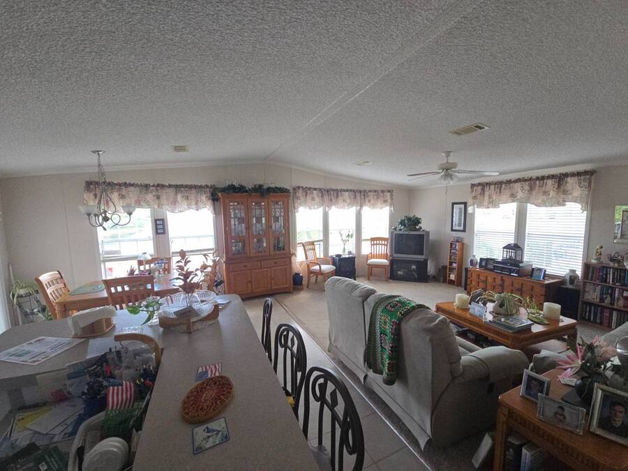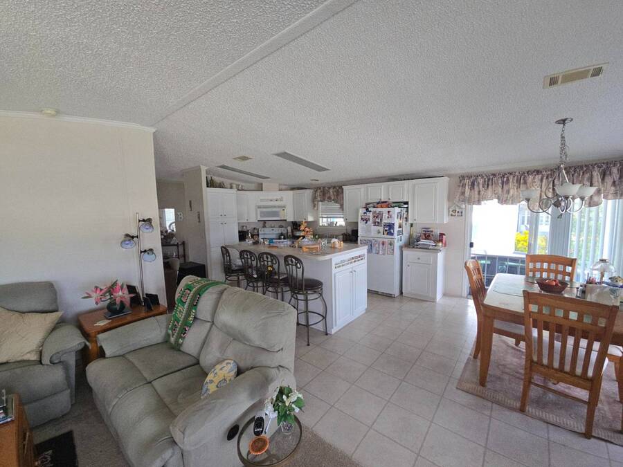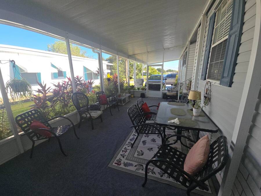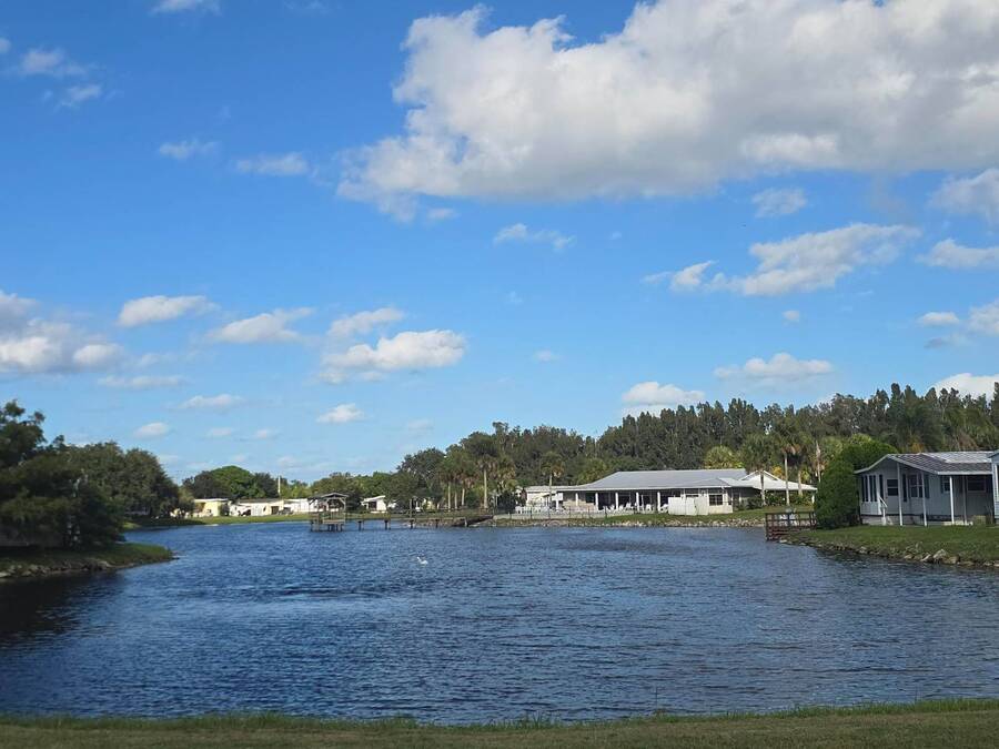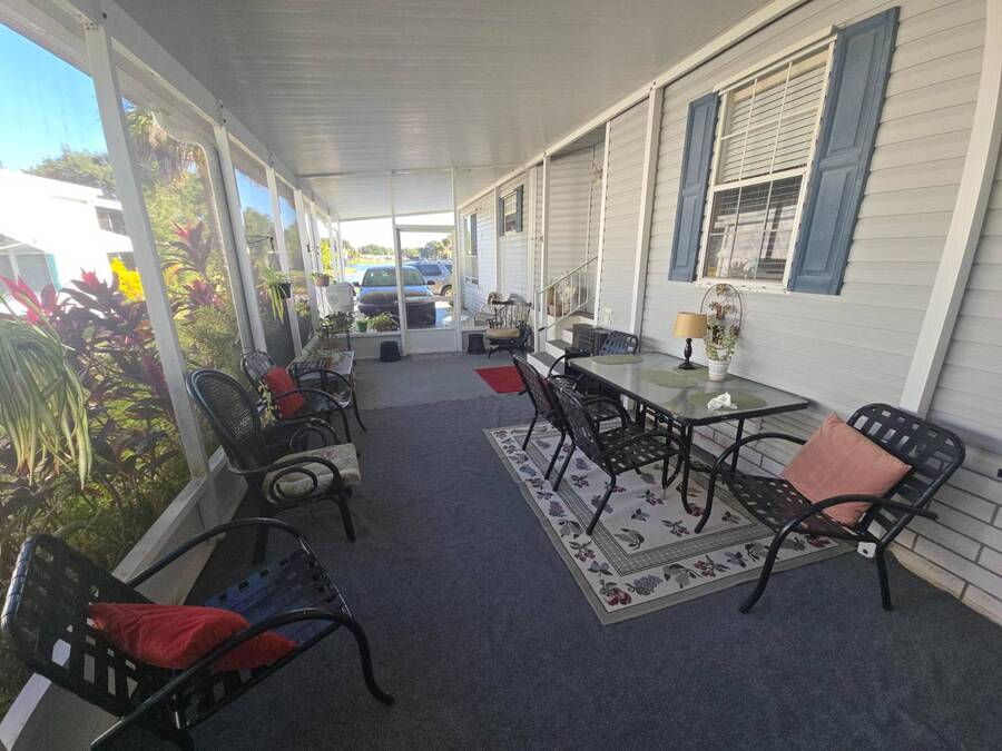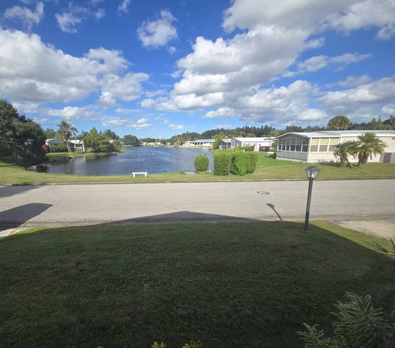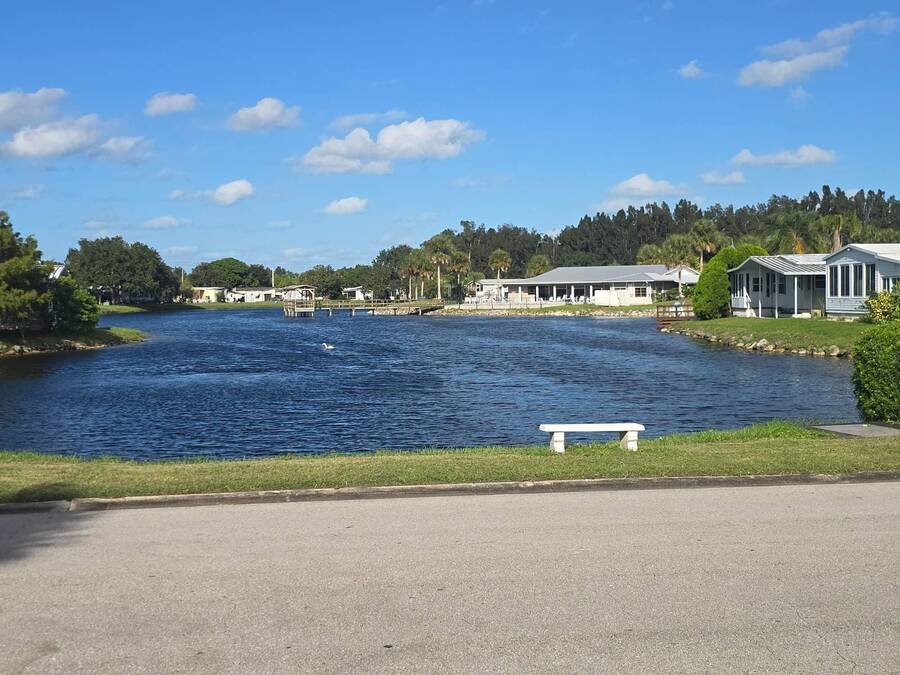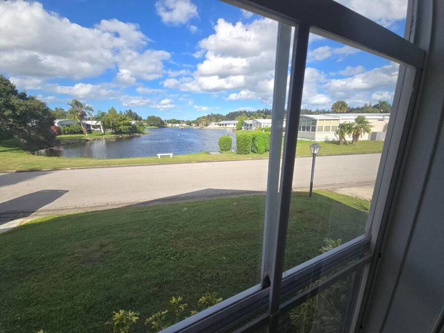 Waterfront Views | 55+ Community | No Waterfront Lot Rent! Enjoy beautiful waterfront views without the high lot rent in this fully furnished 3-bedroom, 2-bath home located in a peaceful 55+ community. This spacious, turn-key home is move-in ready and offers comfort, convenience, and style. Inside, you'll find a large island kitchen open to the dining area and huge living room, both with relaxing water views. The home features wide handicap-accessible doors and hallways, a convenient interior laundry room with washer & dryer, and plenty of storage space. Relax year-round in the enormous Florida room/screened porch, perfect for entertaining or quiet mornings overlooking the water. Outside, enjoy peace of mind with hurricane shutters, a newer roof, and a storage shed for tools or beach gear. Community Amenities: 10 Miles to Coastal US10 Miles to Coastal US, Banquet Room, Billiards, Clubhouse Community Activities, Craft Room, Fishing, Fitness Center, Horseshoes, Laundry Facilities Library, On Site Management, Pets Allowed, Picnic Area, Residential Business Center, RV Storage, Sauna, Shuffleboard, Social Club, Swimming Pools, Tennis Courts, Waterfront Sites, Wellness Room, Whirlpool/Spa/Hot Experience easy Florida living at its best - schedule your private showing today!