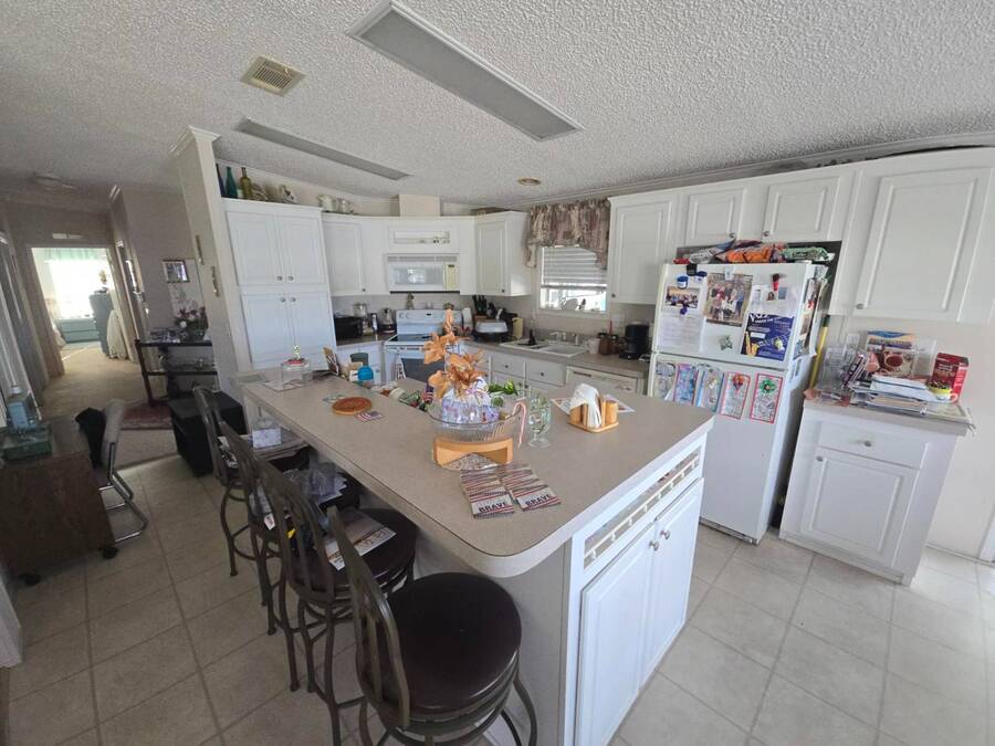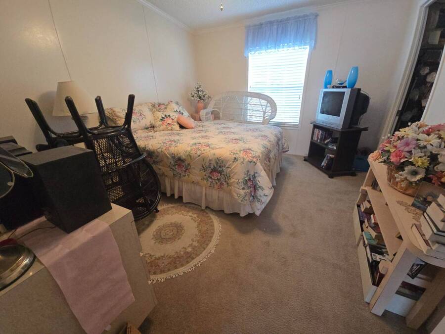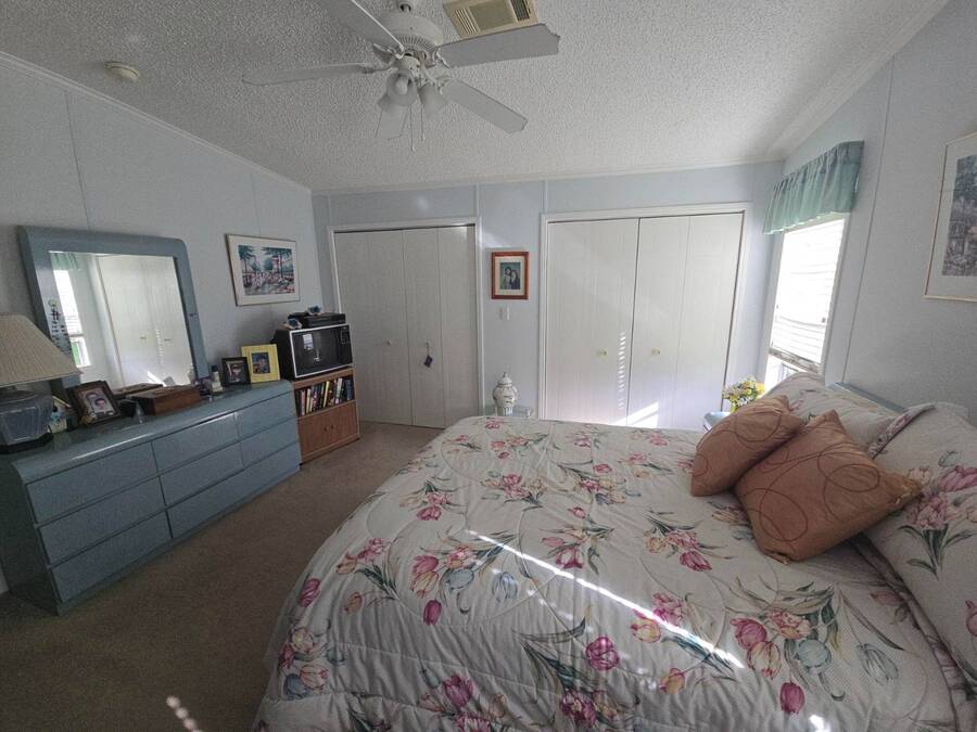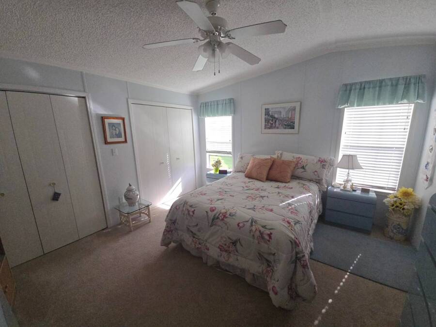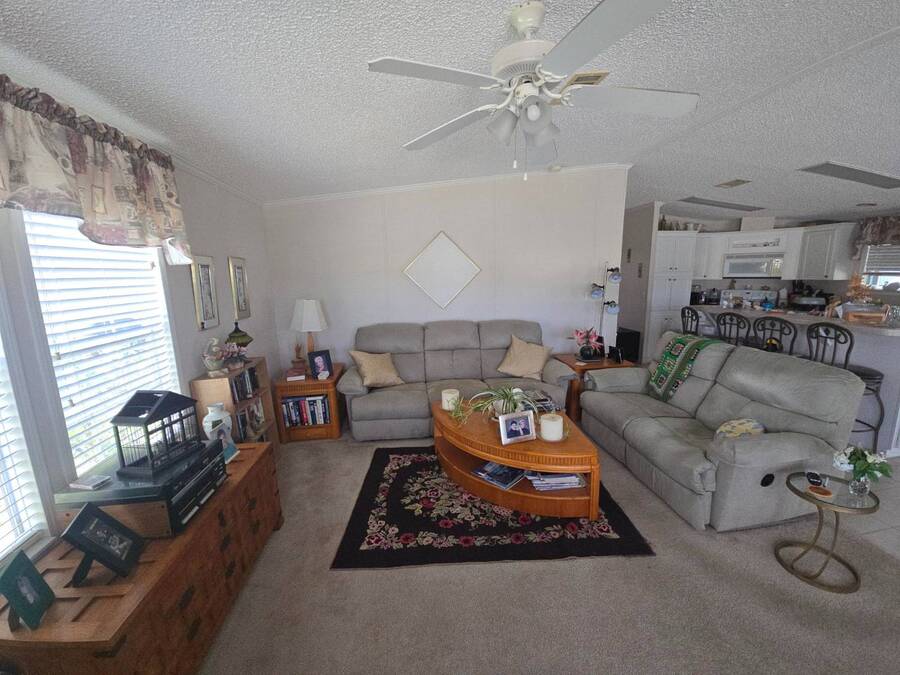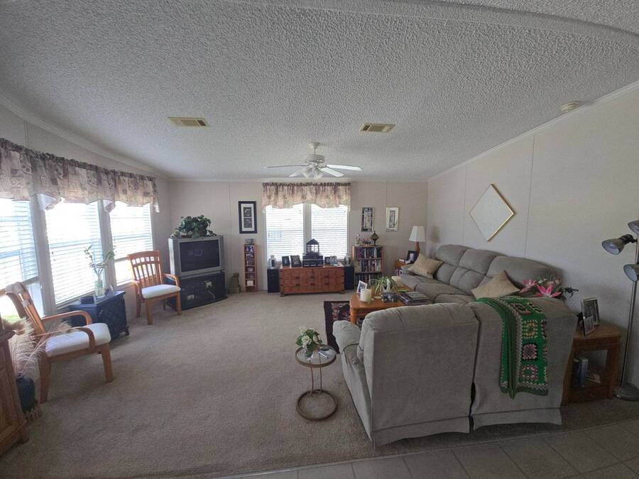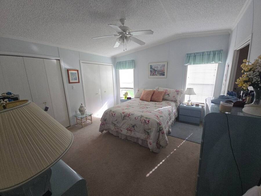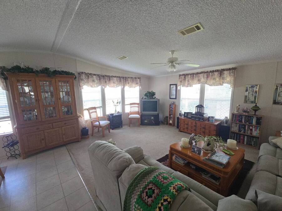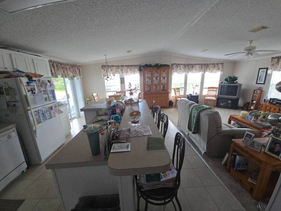 Waterfront Views | 55+ Community | No Waterfront Lot Rent! Enjoy beautiful waterfront views without the high lot rent in this fully furnished 3-bedroom, 2-bath home located in a peaceful 55+ community. This spacious, turn-key home is move-in ready and offers comfort, convenience, and style. Inside, you'll find a large island kitchen open to the dining area and huge living room, both with relaxing water views. The home features wide handicap-accessible doors and hallways, a convenient interior laundry room with washer & dryer, and plenty of storage space. Relax year-round in the enormous Florida room/screened porch, perfect for entertaining or quiet mornings overlooking the water. Outside, enjoy peace of mind with hurricane shutters, a newer roof, and a storage shed for tools or beach gear. Community Amenities: 10 Miles to Coastal US10 Miles to Coastal US, Banquet Room, Billiards, Clubhouse Community Activities, Craft Room, Fishing, Fitness Center, Horseshoes, Laundry Facilities Library, On Site Management, Pets Allowed, Picnic Area, Residential Business Center, RV Storage, Sauna, Shuffleboard, Social Club, Swimming Pools, Tennis Courts, Waterfront Sites, Wellness Room, Whirlpool/Spa/Hot Experience easy Florida living at its best - schedule your private showing today!