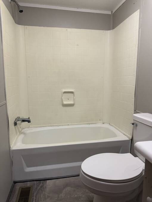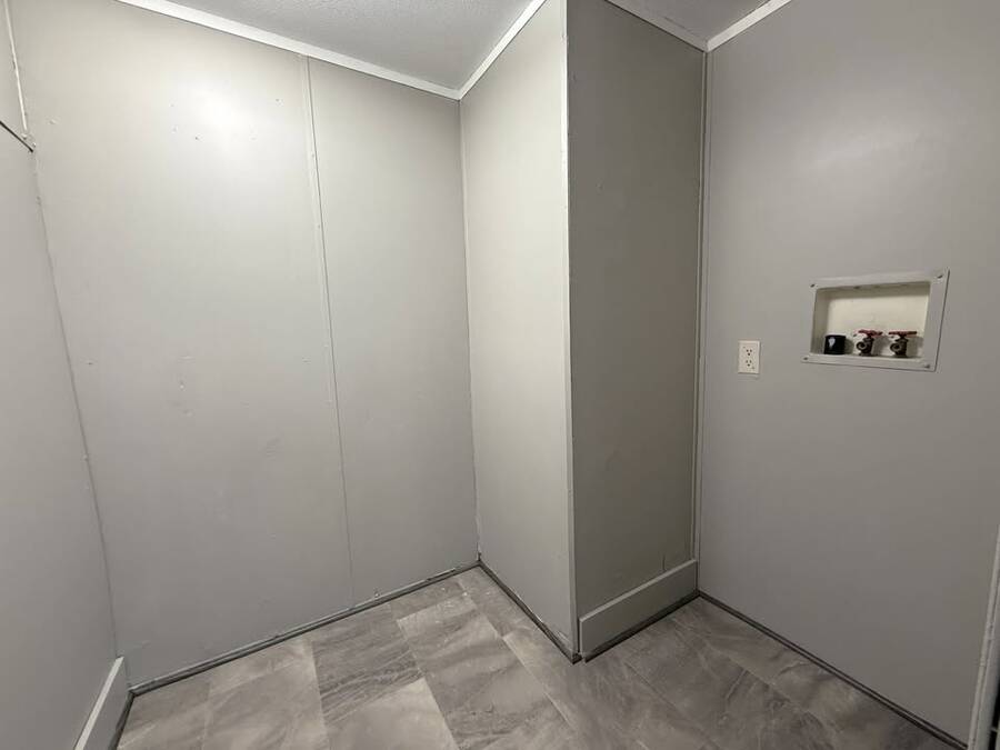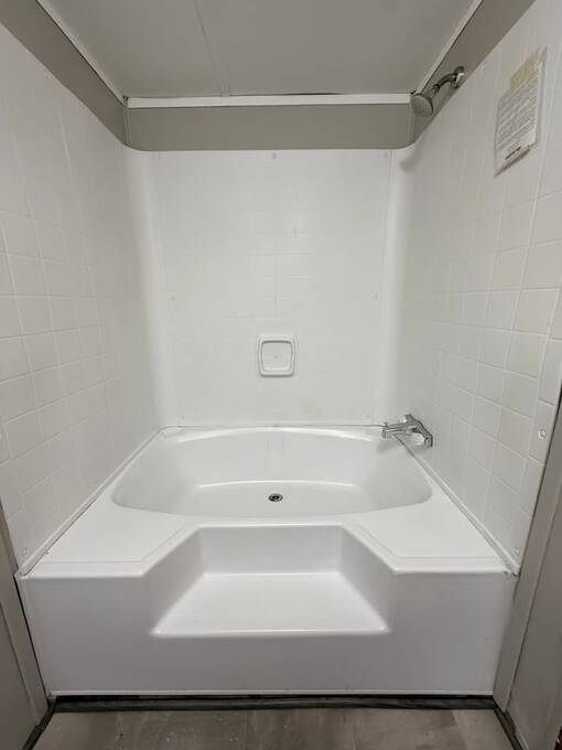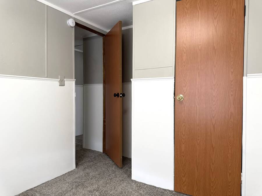 The living area and kitchen have an open floorplan, and the laundry area is just off the kitchen. It has a door so it can be closed off and not seen. At the far end of the home is your main bedroom and bathroom. The bathroom has a large, new tub. The other bedrooms and bathroom are located on the opposite end of the home. Everyone can have their needed privacy!