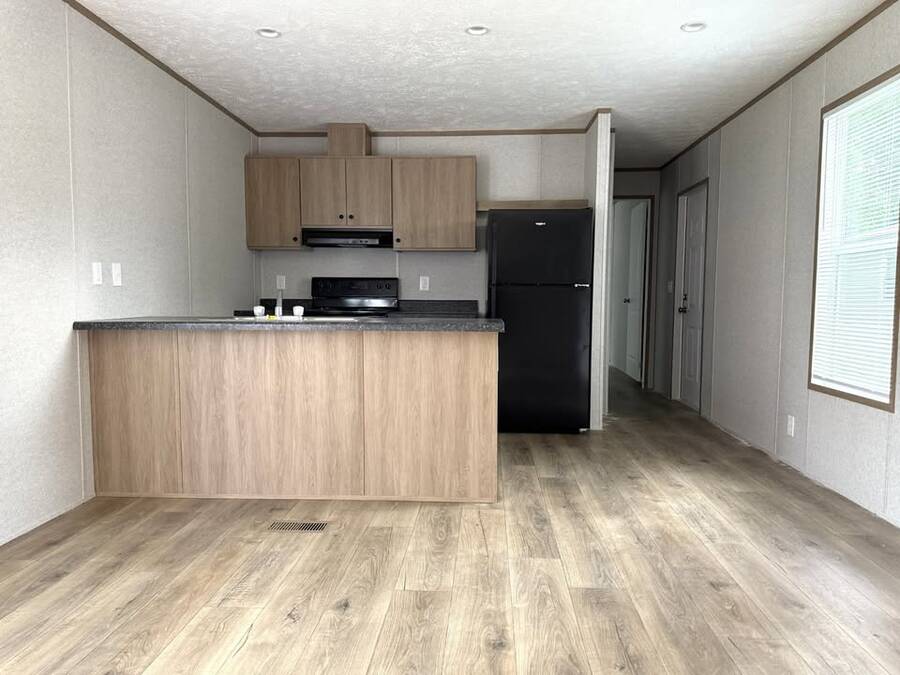 Home is a 2026 Champion 14x60. All matching black appliances are new and included. No carpet for easy cleaning. Interior is neutral to go with most any decor. Both bathrooms have a tub/shower. Bedrooms are on either end of the home.