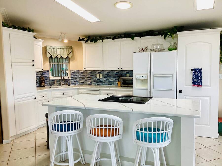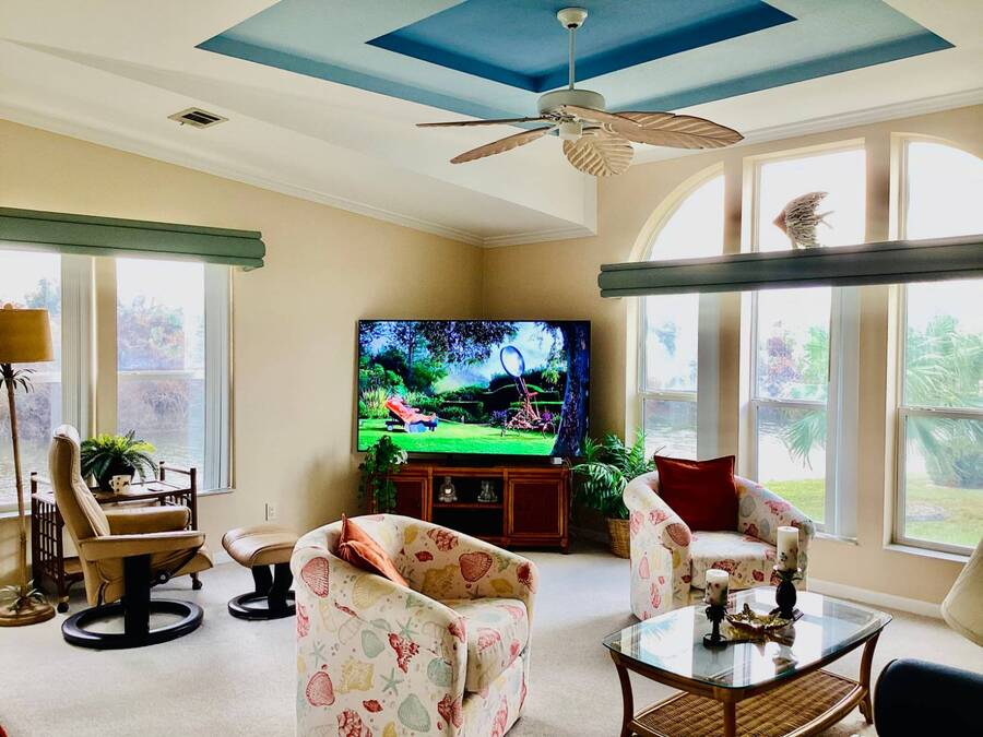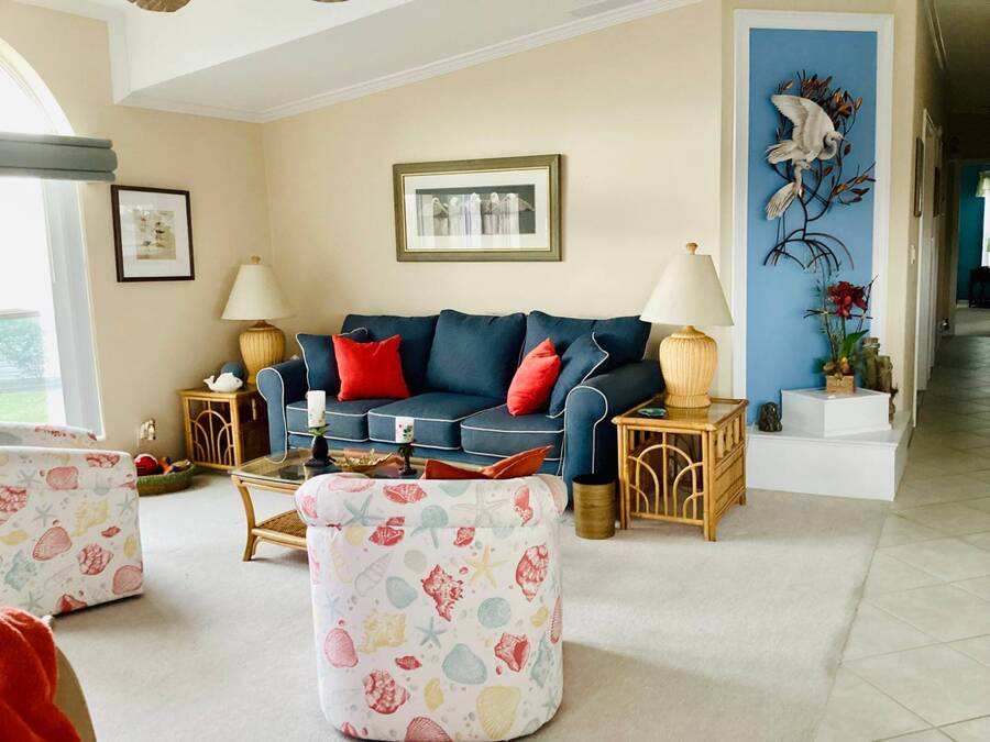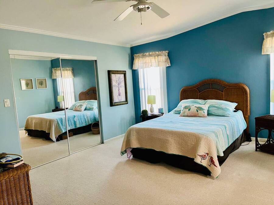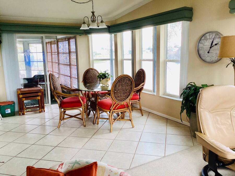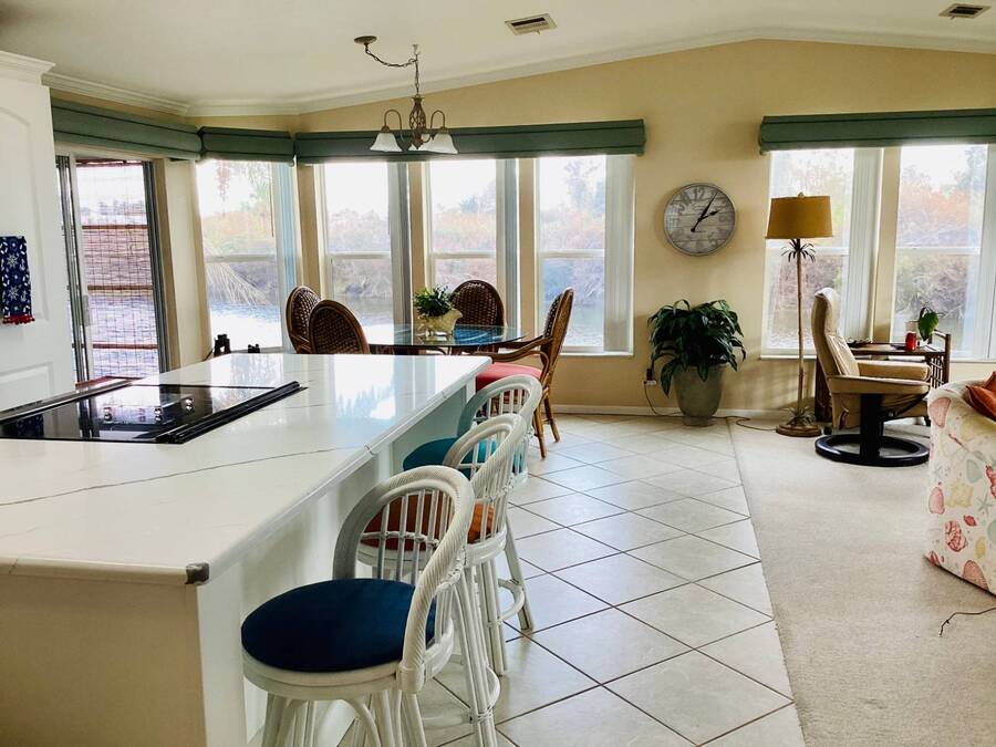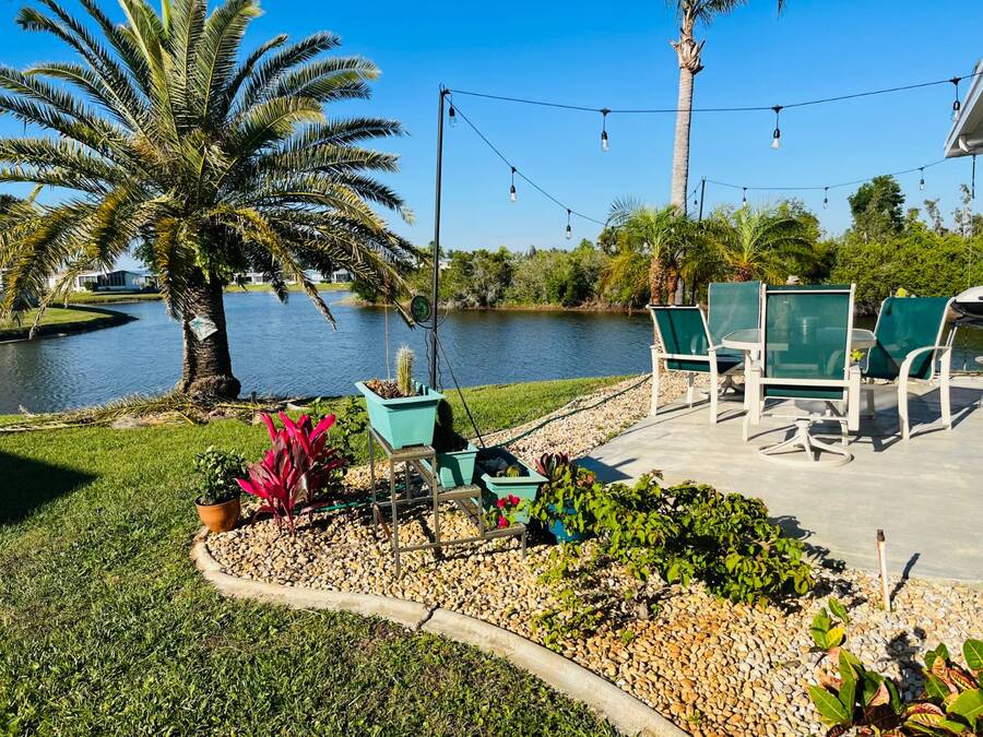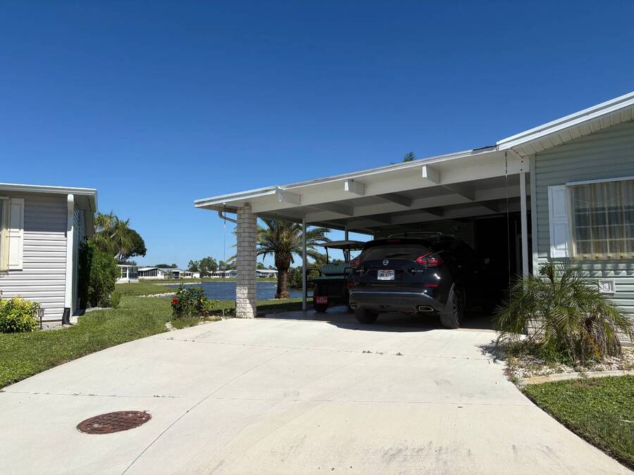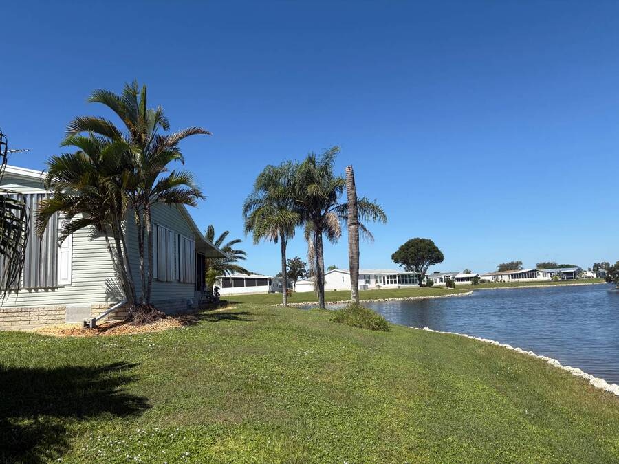 Huge Reduction!!!! Turn-Key 3-Bedroom Home in Gated Florida 55+ Community - Water Views on 3 Sides! Just bring your clothes and start living the Florida dream! This turn-key, fully furnished 3-bedroom, 2-bath home is located in a secure gated community with an abundance of resort-style amenities. Perfectly situated on a peninsula-style lot, you'll enjoy water views on three sides, providing peace, privacy, and postcard-worthy scenery. ⸻ Property Features: • Open Concept Living with spacious living and dining area under a stylish tray ceiling • Gourmet Kitchen: • Large center island with built-in cooktop • Marble countertops throughout • Deep sink with newer touch-activated faucet • Microwave drawer and osmosis water filtration system • Two built-in pantries for exceptional storage • 3 Generously Sized Bedrooms: • Primary suite with a walk-in closet,dresser, built-in storage, and queen bed with remote-controlled comfort settings • Third bedroom features elegant double-door entry-perfect for a guest room or office • Lanai with its own wall AC unit and a convertible sleeper couch-ideal for visitors • Newer central AC unit for year-round comfort • Laundry room includes: • A mini office or recipe nook • Extra overhead storage for household organization • Four solar tube lights throughout the home bring in extra natural Florida sunshine • Six ceiling fans, including one in the large double-door shed, which also has its own dehumidifier-ideal for hobby space or extra storage and also an AC unit. ⸻ Peace of Mind Features: • Fully secured with tie-downs around the entire home • Gutters and storm shutters for added protection • Optional golf cart available (negotiable) • Move-in ready-all furnishings and essentials included! ⸻ Community Amenities: Enjoy life in a vibrant, active neighborhood with access to: • Clubhouse & community events • Swimming pools & spa • Fitness center • Tennis courts • Mini golf course • Gated entry and security ⸻ This is more than a home-it's a lifestyle upgrade. Whether you're searching for a seasonal escape or a full-time Florida residence, this gem checks every box. Schedule your private tour today and get ready to live the easy life! All listing information is deemed reliable but not guaranteed and should be independently verified through personal inspection by appropriate professional. Listing company cannot guarantee or warrant the accuracy of this information or condition of the property. The buyer assumes full responsibility for obtaining all current rates of lot rent, fees, and pass-on costs. Additionally, the buyer is responsible for obtaining all rules, regulations, pet policies, etc., associated with the community, Park or home from the park manager. This property is being sold "As Is". "Guiding you Home."
