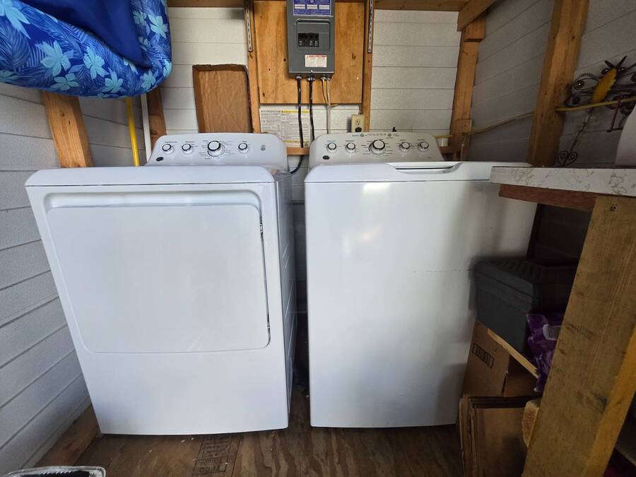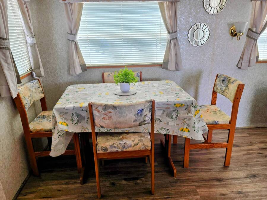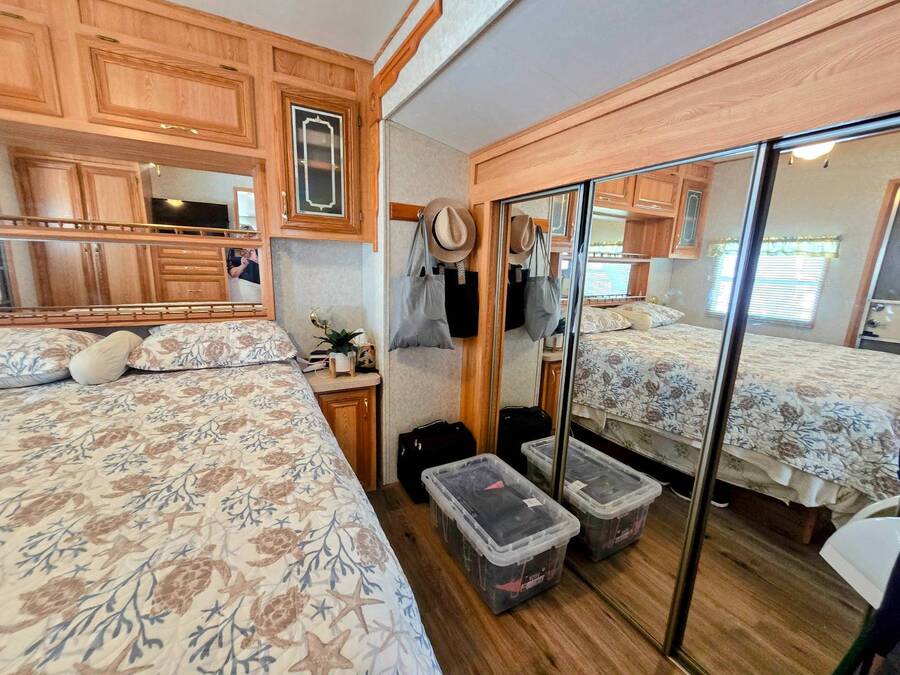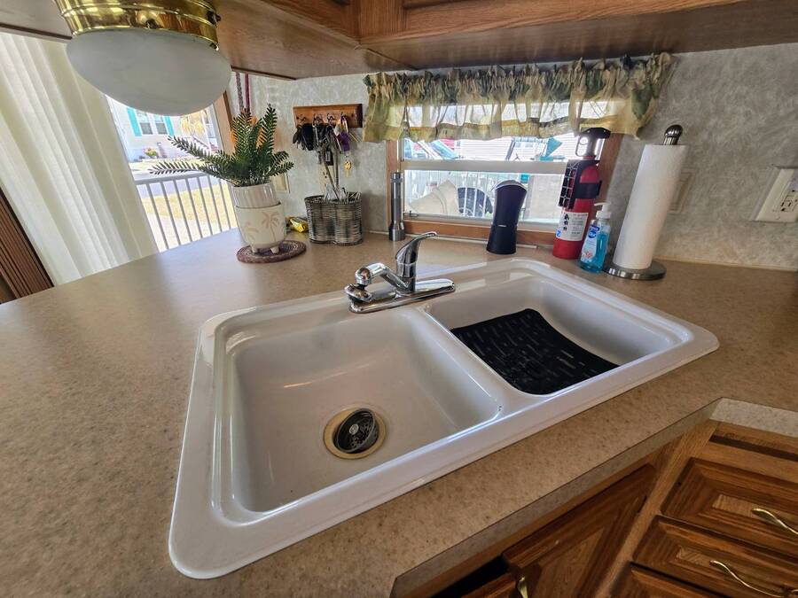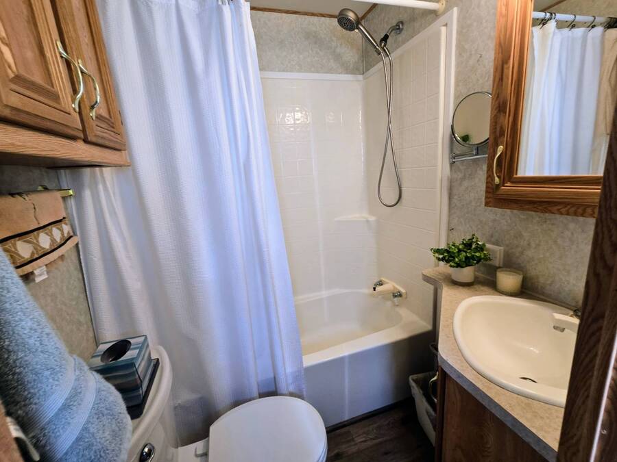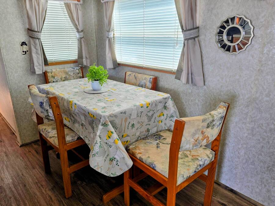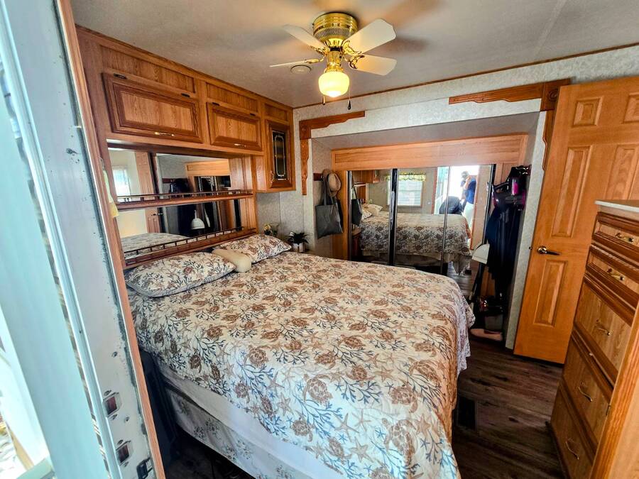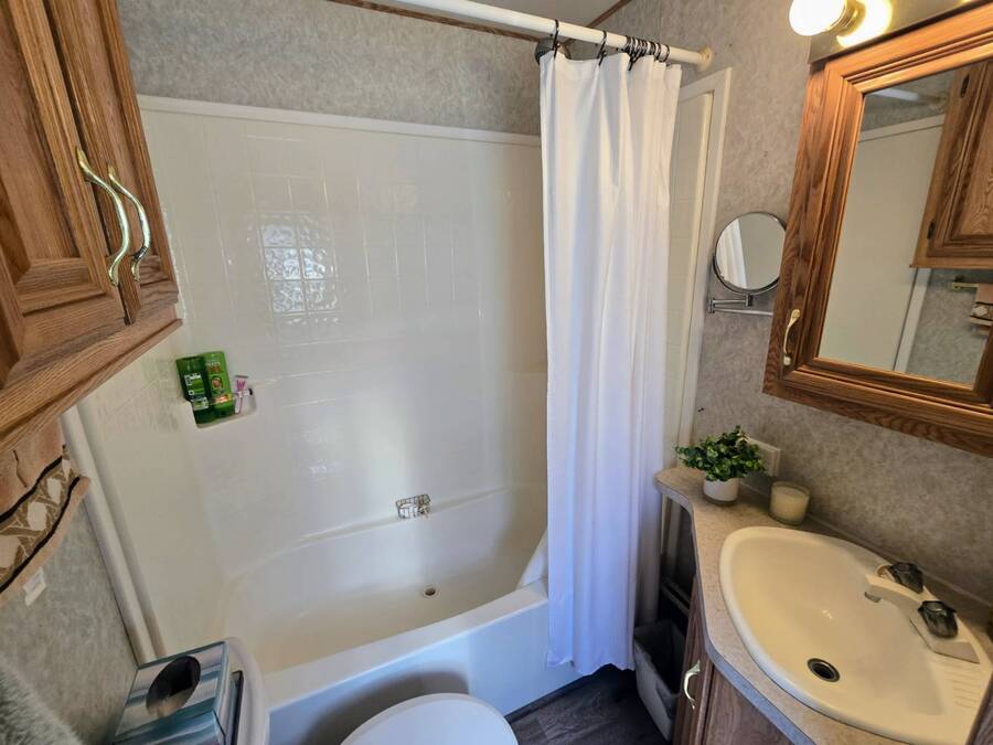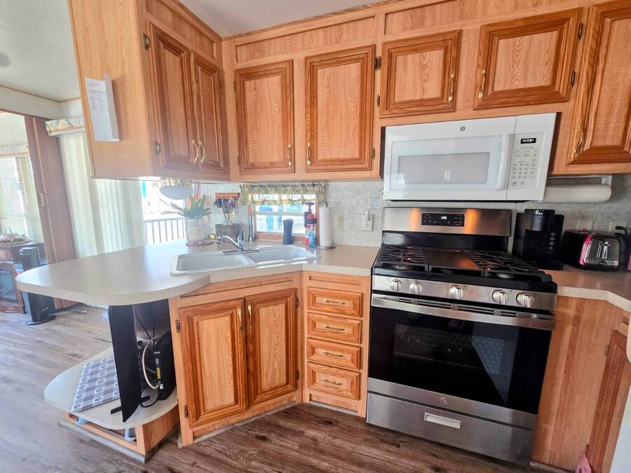 What a great Breckenridge Model with newer membrane roof and heat pump. Spend a little or a lot of time here with flex lot plans in Recreation Plantation. The covered deck is a stand out and a great gathering place for new and old friends! Add an on-site washer dryer set up in the outbuilding and you have your own mini paradise. Ample parking in front on on the side of this Unit. This one has a private bedroom at the back of the Unit and then a bonus room at the front of the Unit that could b a craft area, a guest quarters or even an office area and it has a hide a bed loveseat. The Kitchen has the natural wood look and an expandable dining area that's just right for quick meals or intimate meals with guests. The outdoor covered porch is the perfect meeting place for all! Park resident approval is a must. Look at this fun spot because it's not a 55+ only community. Happy life starts right here! Golf carts, bicycles, and a pet friendly community is the tasty icing on this piece of Paradise. 2 huge pools, 2 hots tubs, 3 club houses, 14 Pickleball courts, tennis, bocce, sand volley ball, billiards, card games with friends, weekend dances and sooooo much more. A fun community for walks, talks and pet friendly.