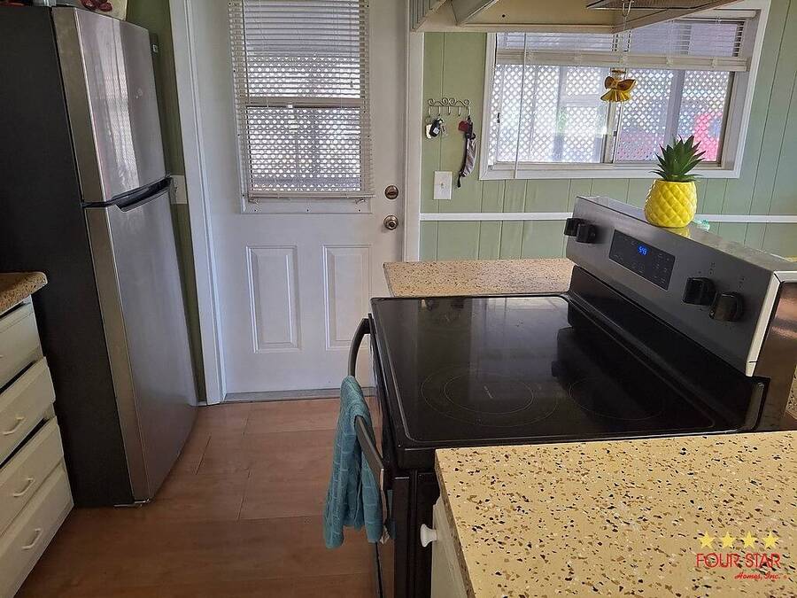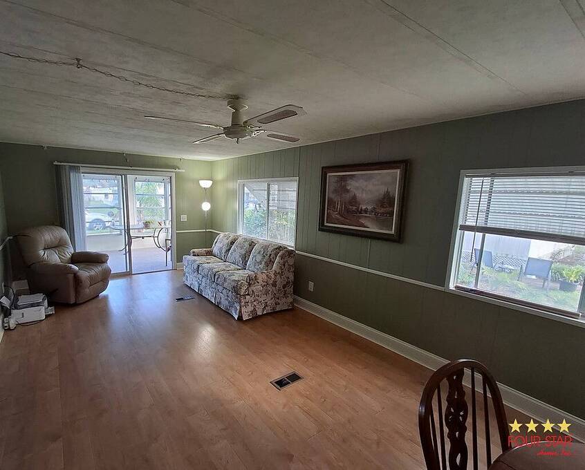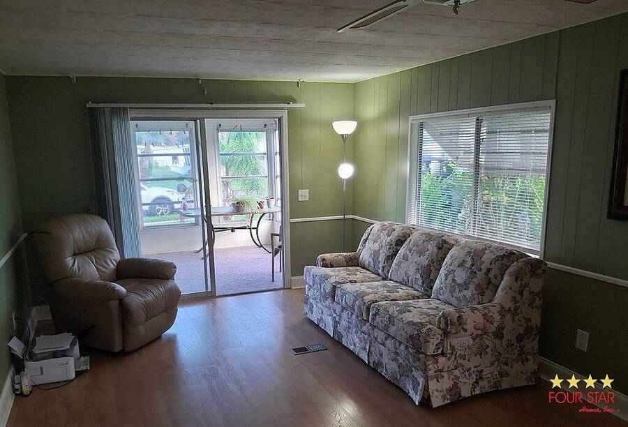Start with the covered carport, then move into the screened in porch - which would make a great bonus room. Then walk into the kitchen with the large unique island in the middle, where you will find lots of storage everywhere! Directly off the kitchen is a dining room, or small sitting area, plus a large living room-dining area. Two bedrooms and two bathrooms with plenty of room and lastly enjoy the bright and sunny Florida room in the front with windows on three sides with new screens. The park offers a large heated swimming pool, hot tub, bbq area, fire pit, clubhouse with pool table, poker nights, gym and bingo!