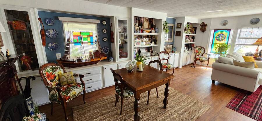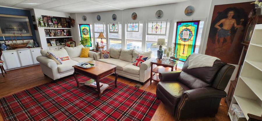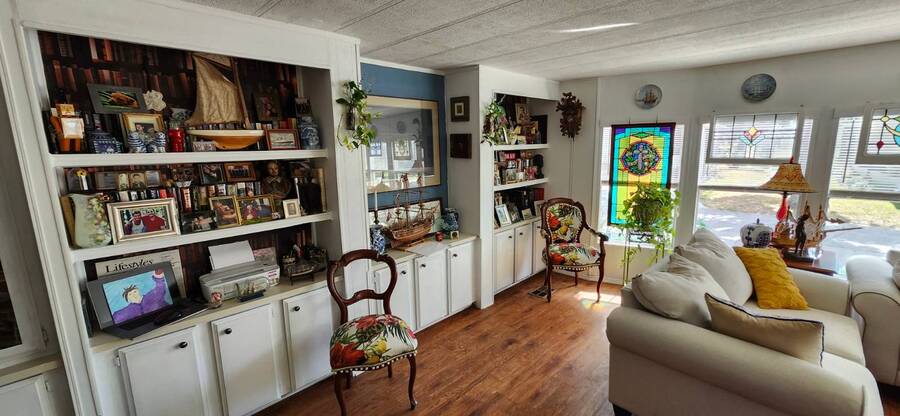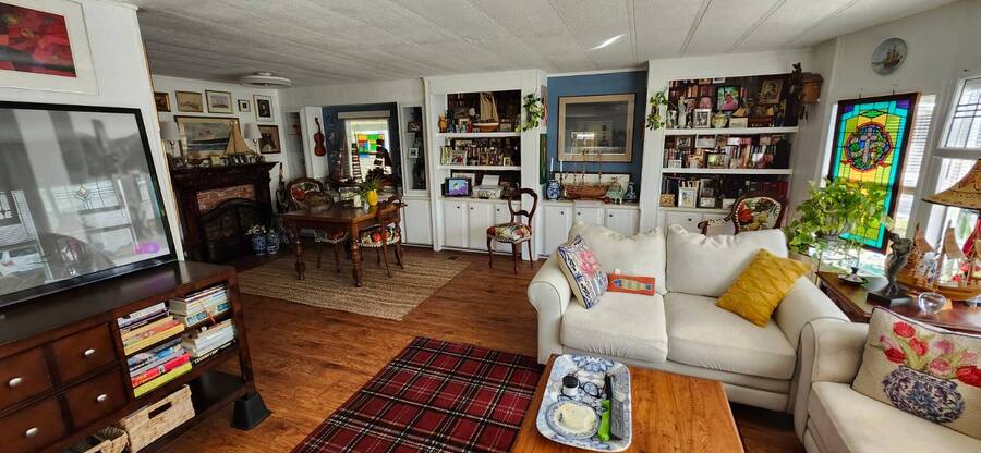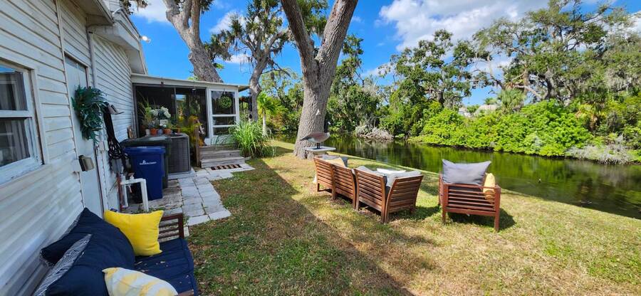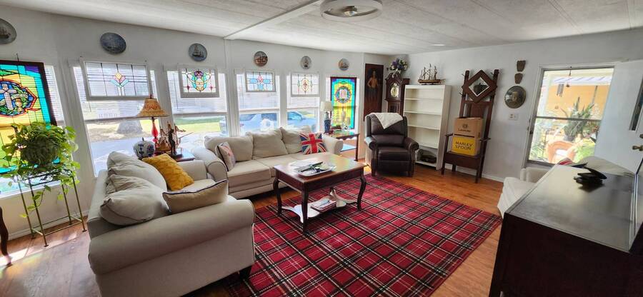 Welcome home to this captivating, elegant, and spacious sanctuary tucked in the highly esteemed 55+ community of The Winds of St. Armands in beautiful Sarasota, Florida. Situated on the tranquil pond, where you can delight in scenic views of nature and watch the mesmerizing ripples of the sparkling water right in your own backyard. Shade trees create a perfect retreat and intimate moments for morning and afternoon leisure time by the pond, while moonlit evenings beckon you to gaze at the stars on warm tropical nights. This truly is a paradise to behold! Step inside this 2-bedroom, 2-bath home that resonates warmth and character throughout. The open floor plan creates grandeur in the heart of the home with rich luxury vinyl plank flooring that runs throughout. Partially furnished, this home offers an abundance of built-in cabinetry and shelving to display your treasured photos and items. An inviting living room is adorned with windows for Florida's gorgeous natural light and sunshine. Any chef will delight in the huge, open kitchen with lovely modern cabinets, a center island, and essential appliances. Extra space with a sitting area and wet bar adjoins the kitchen, while opening to the large Lanai through a set of sliding glass doors. Relax in the charming lanai with a cup of morning coffee or spend leisure time with a good book and soft music. An additional set of sliding doors steps up into the expansive master bedroom from the lanai, where peaceful nights by the water bring restful sleep. Rejuvenate in your stylish ensuite with a large vanity, a double sink, and a large walk-in shower. Plenty of space for your wardrobe in the walk-in closet. The guest bedroom offers privacy for guests that adjoins the main bathroom. Indoor laundry offers convenience for all your daily chores, and ample room for extra gear is available in the large storage shed. This home has it all! Whether you are looking for a primary residence or a seasonal retreat, look no further. Welcome to the Winds of St. Armands, where your dream lifestyle awaits in stunning Sarasota, Florida! Nestled just minutes from the vibrant downtown area and a mere 10 miles from pristine beaches (SIESTA KEY & LIDO BEACHES) and fabulous UTC shopping, this community offers an enchanting blend of relaxation and recreation. Enjoy sun-soaked afternoons by the large heated pool or unwinding in the soothing whirlpool spa after an invigorating workout at our state-of-the-art fitness center. With a spacious clubhouse buzzing with social activities and shuffleboard courts, and pickleball courts ready for spirited competition, you'll find endless opportunities to connect with neighbors while embracing an active lifestyle. Plus, we know your furry friends are part of the family-at The Winds, you can bring along up to two pets (each weighing up to 25 lbs) so they can enjoy this paradise too! Out of town? No worries at all! We make it easy by offering remote paperwork options so that you're never far from making your move into this breathtaking haven. Lot rent is just $1226 monthly, including trash pickup and lawn service - the perfect package for carefree living! All listing information is deemed reliable but not guaranteed and should be independently verified through personal inspection by appropriate professionals. Our company does not and cannot guarantee or warrant the accuracy of this information or the condition of this property. Measurements are approximate. The buyer assumes full responsibility for obtaining all current rates of lot rent, fees, and pass-on costs. Additionally, the buyer is responsible for obtaining all rules, regulations, pet policies, etc., associated with the community, park, or home. Call today!