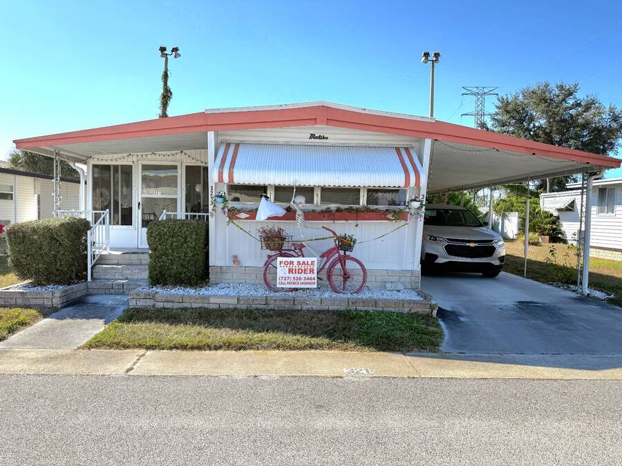 Big fenced in back yard. Located in the hard-to-find PET SECTION. Large EXPANDO 1 or 2 bedroom home with one full bathroom and an expanded Florida room. This home features a replaced metal roof with a Membrane roof-over NEW Central heat and A/C system that is 3 yrs young. The finished Florida room can substitute for a 2nd bedroom or an office and has A/C. Many new windows and upgrades. Bay Ranch is a premier 5 star 55+ " PET FREINDLY" community. The residents of Bay Ranch enjoy access to a range of amenities including a large swimming pool, shuffleboard, and many more amenities and activities. In addition you have a "hard to find" RV/Camper/boat/jet ski storage area. Bay Ranch offers social gatherings and recreational activities, just minutes to the Beach, Shopping, the VA hospital, the gulf beaches, Tampa, St. Petersburg, Clearwater and more, along with maintenance-free living, this community provides an enriching and fulfilling place to call home. ............TEXT OR CALL THE LISTING AGENT to view and/or make an offer.........