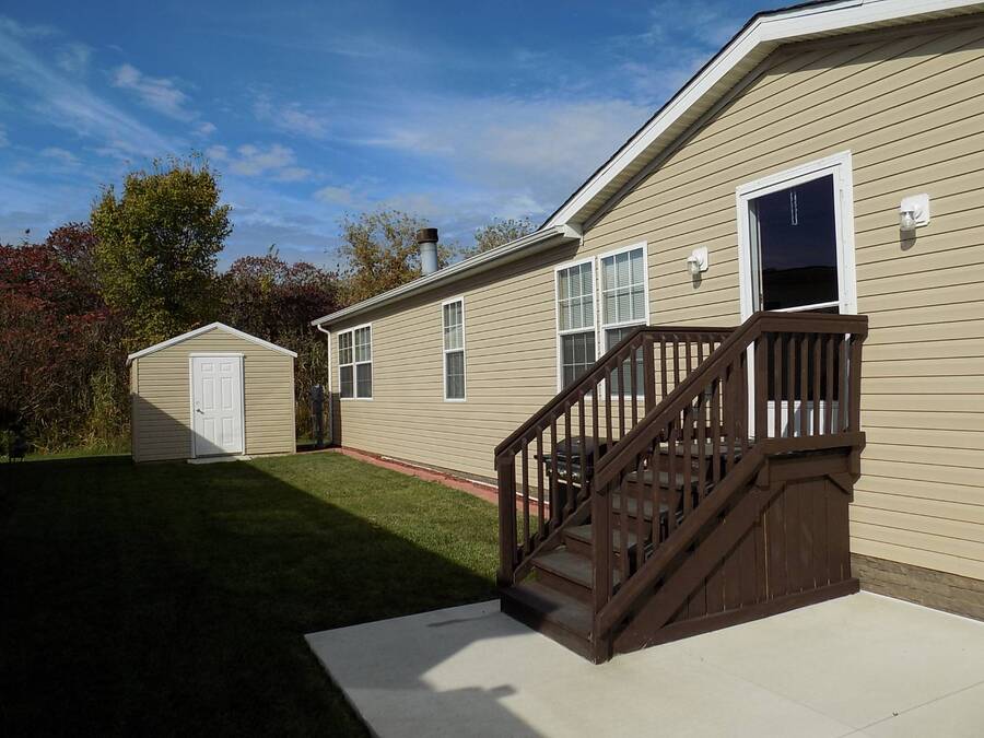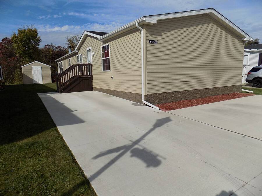 REDUCED TO $69,900 IN POPULAR ORCHARDS "ACTIVE ADULT" GATED COMMUNITY - SPACIOUS 1800+ FT 3 BEDROOM 2 BATH WITH 2 LIVING ROOMS - PRIME LOT BACKS TO NATURE / 5 CAR DRIVEWAY - MANY UPDATES!! This home and location is very attractive!! At the back of the community, there will be very little traffic, and a lot of enjoyment!! When you first pull up you will see an immaculately cared for home, and a huge amount of parking area. The neighbors on both sides have their homes beautifully maintained as well! There is a 10x10 storage shed at the top of the driveway. Beyond you will see lush vegetation, with no one behind you but a nature area. There is a door wall off the back of the home to enter this peaceful area. Inside, you enter a large living area, and as you walk to the rear another kitchen/family room/ dining room area. This area is very spacious, with windows and the door wall to take in the beauty behind you. There is also a utility area right off the kitchen. All appliances stay and were new in 2022. Also new in 2022 was the roof, paint, carpet, water heater, and central air. There is also a woodburning fireplace for those cold, winter months. The walls have been additionally insulated with retro-foam, this insures the lowest of utility bills. The primary bedroom has an adjoining bathroom area. The other 2 bedrooms and bath are towards the front of the home. This home is extremely attractive, well laid out, and on a great lot in a very popular 55+ community. You will be impressed!!