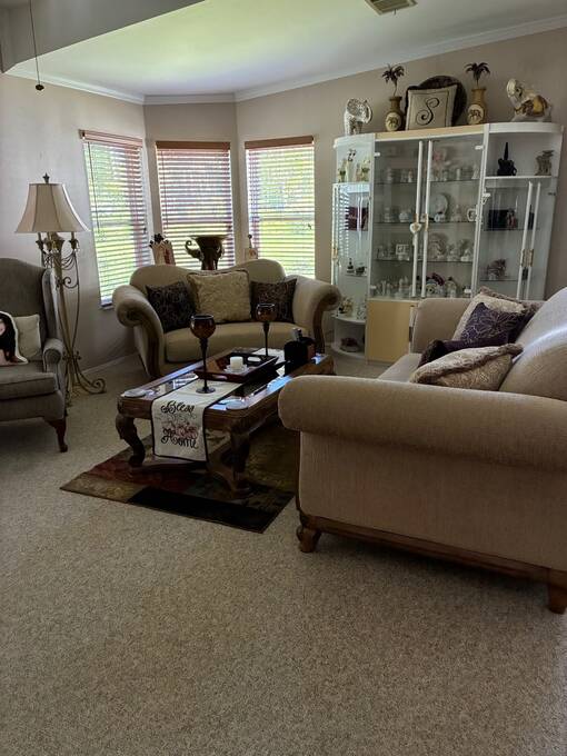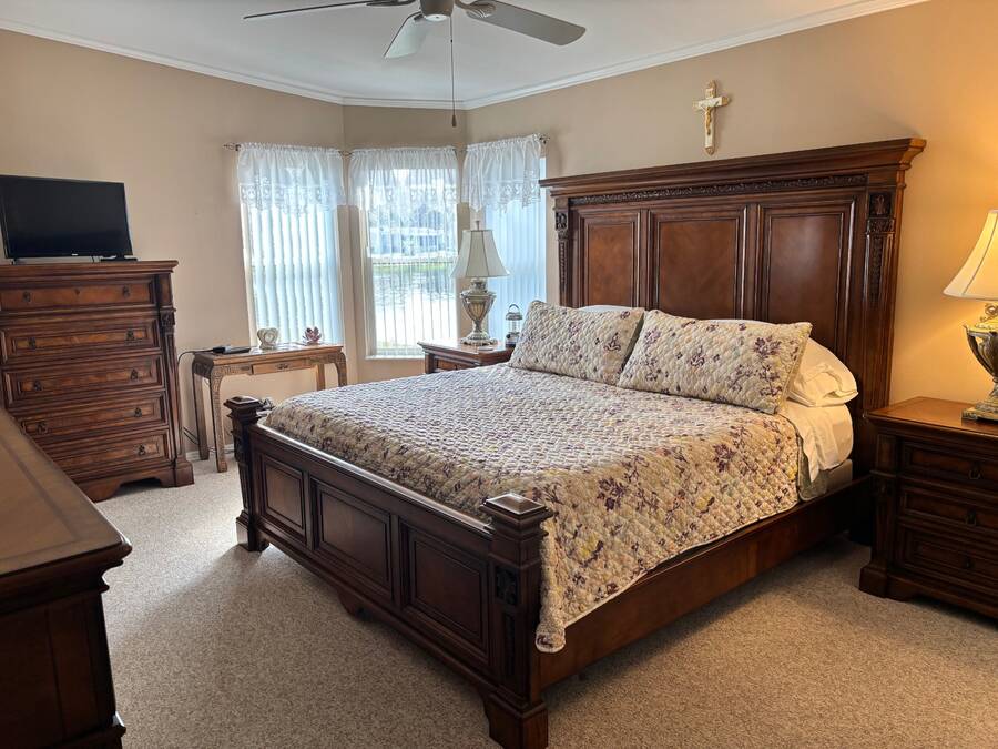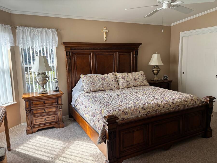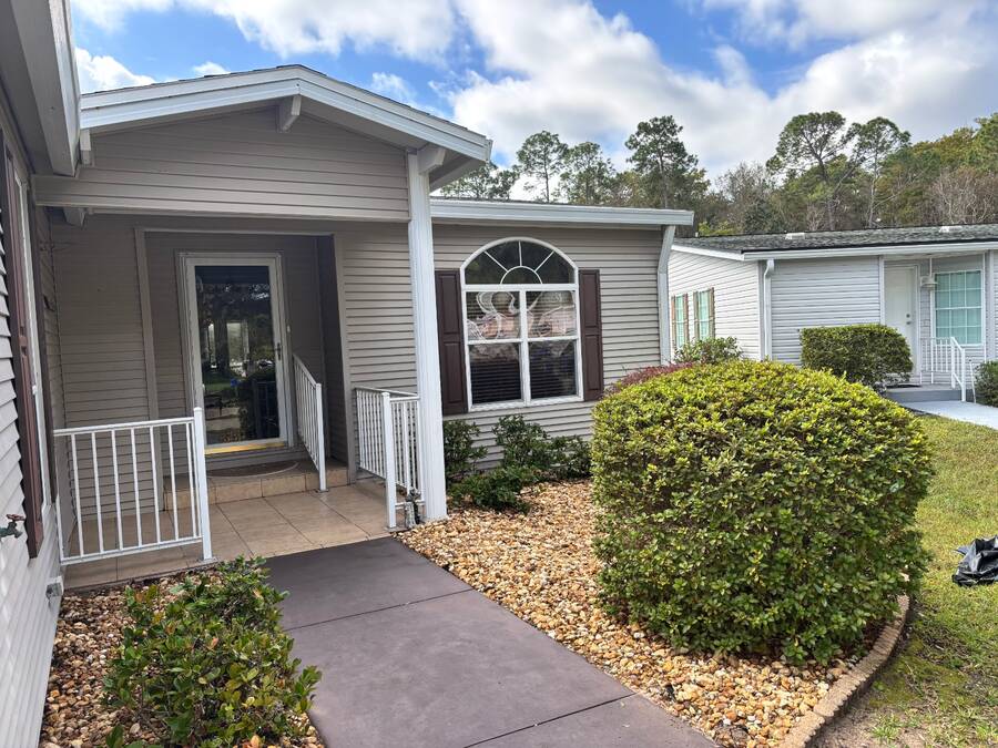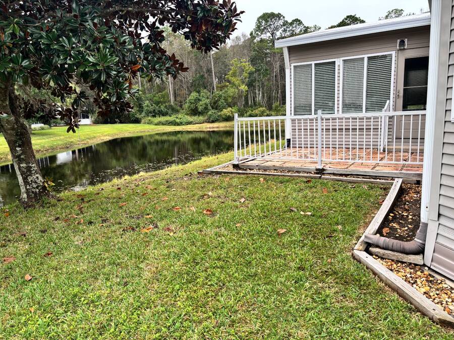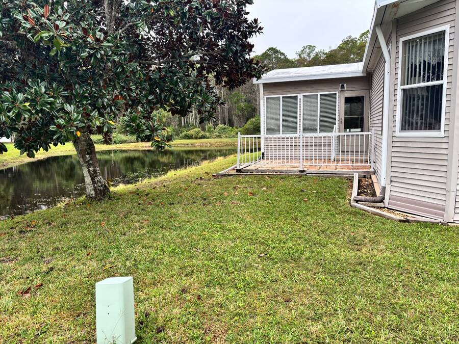 One of the most sought-after models in the age qualified, land-lease community of Coquina Crossing is now available! This 2004 Palm Harbor home is a one-owner beauty situated on a peaceful cul-de-sac lot with a scenic water view. Featuring numerous recent updates, including a new roof (2025), new air conditioning system (2024) and new hot water heater (2020), this home offers exceptional value and peace of mind. Enjoy luxury wood laminate flooring in the front den/bedroom area while the main living areas have carpet and ceramic tile for easy maintenance and style along with ceramic tile in the kitchen, bathrooms and laundry room. The Florida room, complete with its own air conditioning, provides the perfect spot to relax and take in the tranquil water views year-round. This stunning home offers a flexible three-bedroom layout, with one room off the foyer that can easily serve as a den or home office. The second guest bedroom and guest bath are located on the front of the home, providing privacy for family and friends when they visit, while the master suite is positioned in the rear of the home with windows overlooking the water and a beautifully appointed ensuite bathroom. The great room and formal dining area provide an open, inviting space perfect for entertaining. The eat-in kitchen is a chef's dream, featuring abundant cabinetry, new kitchen sink, an oversized pantry, and a sit-down bar-ideal for casual dining or morning coffee. The oversized laundry area provides convenience and functionality, featuring extra storage space and easy access directly into the two-car garage-perfect for bringing in groceries or managing daily chores with ease. Coquina Crossing is a premier age-qualified, land-lease community offering the perfect blend of relaxation and resort-style living. This gated community features beautifully maintained grounds with tree-lined streets, scenic ponds, and sidewalks throughout. Residents enjoy access to Club Coquina, where there's always something to do-from pickleball, tennis, and bocce ball to arts and crafts, billiards, and cards. The indoor/outdoor pool, ballroom, library, and outdoor kitchen area provide endless opportunities for recreation and social connection. Conveniently located near I-95, shopping, hospitals, restaurants, and historic downtown St. Augustine, Coquina Crossing offers the best of Florida living in a welcoming, active-lifestyle community. All listing information is deemed reliable but not guaranteed and should be verified through personal inspection by appropriate professionals of Buyer's choice. Resale Home Solutions, LLC cannot guarantee or warrant the accuracy of any information, measurements, or condition of any home, as information was provided by the Seller. Measurements are approximate and should be verified by the Buyer. The buyer is responsible for obtaining all rules and regulations, prospectus, pet policies, and any other information regarding the community from the community management office, as we are not responsible for their fee and policies.