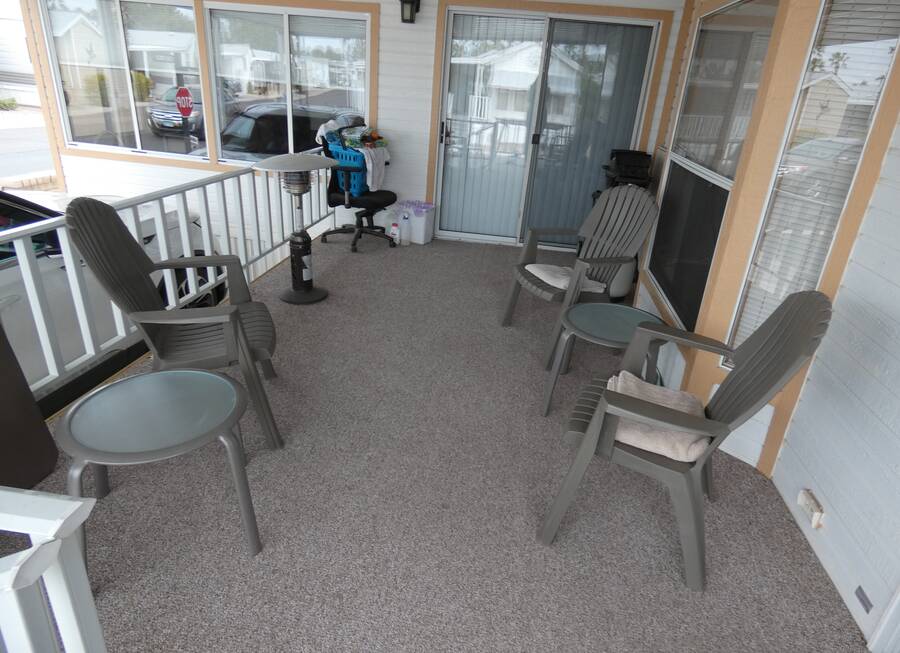 This 1 Bedroom - 1 Bath Park Model Home nestled in the vibrant 55+ Active Adult Community Palm Creek Resort & Residences, is a must see. Perfectly situated on a large corner lot at 874 Mica Lane this home offers ample space and comfort. With the large room addition, for the living room, it provides extra space for relaxation and entertainment. The kitchen has been beautifully updated with solid surface counters and there is newer flooring throughout the home. Step outside to a generously sized front deck, perfect for morning coffee or evening gatherings. The home is being sold fully furnished ensuring a seamless move-in experience. A storage shed with washer and dryer provides added convenience and extra space for your belongings. Come see this lovely park model home and enjoy the best of active adult living!