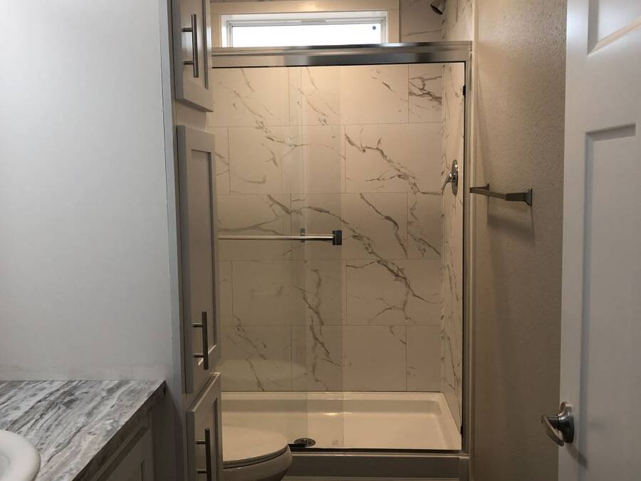 Step inside to find an open-concept floor plan, hardwood floors, beautiful cabinets, and natural light. The kitchen boasts of rich colors and style like quartz countertops, stainless steel appliances, and an island bar, perfect for both everyday living and entertaining. The spacious master bedroom offers a peaceful retreat, complete with en-suite walk-in shower, and closet space. Additional bedrooms provide versatility for guests, or a home office, all with big windows, and ceiling fan light. Outside you will enjoy low-maintenance landscaping, and room to grill, ideal for entertaining or unwinding.