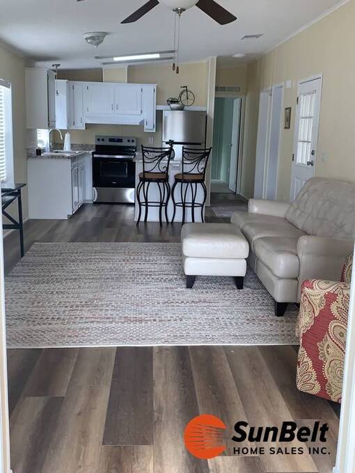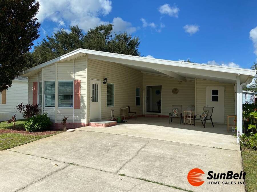Now priced at $64,800, the seller is motivated and encourages interested buyers to reach out, tour the home, and present a reasonable offer. This inviting 2-bedroom, 2-bath home in Meadowlea Village offers comfortable living with thoughtful updates throughout. The newly renovated kitchen and refreshed bathrooms give the home a clean, modern feel, while the spacious dining area at the front overlooks a quiet pond and fountain. A pleasant view with visiting birds and a touch of nature. Lot rent isn't just rent-it includes basic cable, water, sewer, trash, and lawn care, saving you serious money each month. This truly is a lock-and-leave community where you can enjoy the Florida lifestyle without the hassle of constant upkeep. Inside, you'll find bright, open living spaces, skylights in the kitchen and guest bath, and a primary suite with his-and-hers closets. The laundry room is under central air for convenience, and the large shed under the carport is set up as a workshop with a built-in bench. Perfect for projects or extra storage. Meadowlea Village is a friendly 55+ community with a pool, clubhouse, shuffleboard, cornhole, and regular neighborhood activities. This move-in-ready home combines comfort, updates, and a peaceful setting. All just minutes from shopping, dining, and historic downtown DeLand.