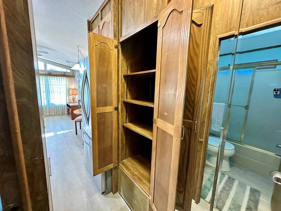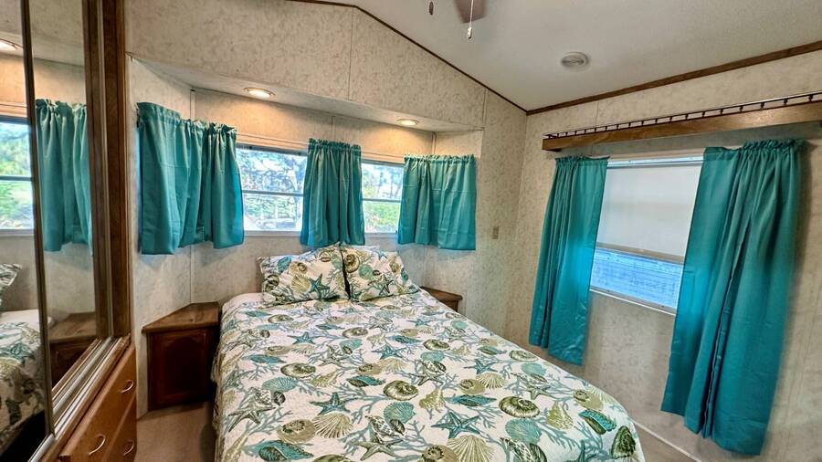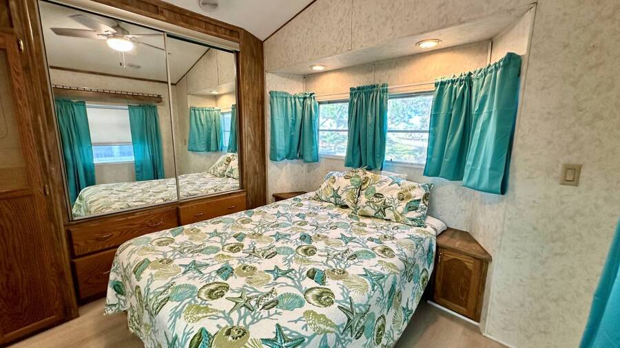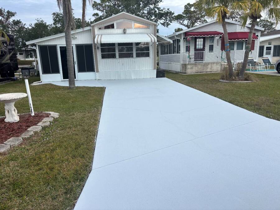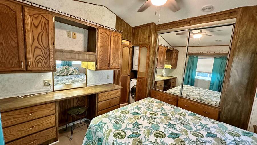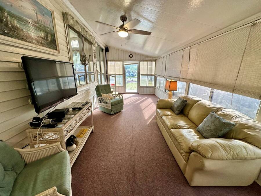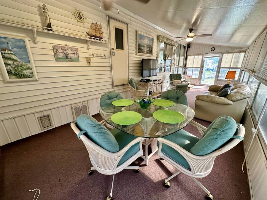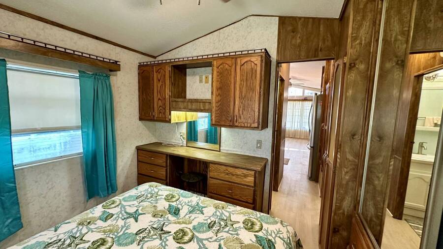 Waterfront Living with Modern Comforts... This charming home offers both style and functionality, featuring new vinyl plank flooring, a stainless steel dishwasher, and a built-in microwave. The kitchen boasts classic oak cabinetry, a convenient pantry, and a water filtration system. The spacious living room with cathedral ceilings includes a cozy corner bar, four new Hunter ceiling fans, and a comfortable La-Z-Boy sofa with an air bed - perfect for guests. The primary bedroom includes a built-in desk and a stackable washer and dryer for added convenience. Step outside to the concrete patio and seating area, ideal for relaxing or entertaining. Enjoy peace of mind with a new shingled roof (installed in 2022) complete with a transferable warranty, plus skylights that brighten the kitchen and bathroom. Best of all, this property includes access to a dock and the Intracoastal Waterway leading out to beautiful Dona Bay - perfect for boating or simply soaking up the coastal lifestyle. King's Gate Park is an adult community for persons 55 or older and is a Florida Condo Association. The Park is located 3 miles from the Gulf Beaches, golf courses, hospital, restaurants and cultural activities in nearby Venice and Sarasota. Amenities include pool, tennis, pickleball and shuffleboard courts to name a few and activities almost every day.