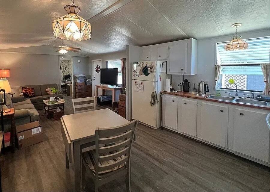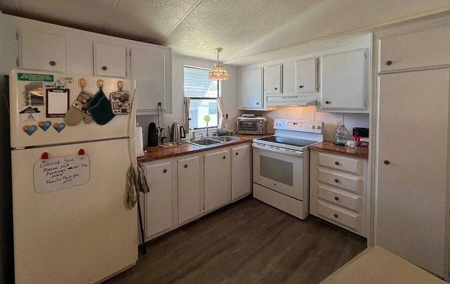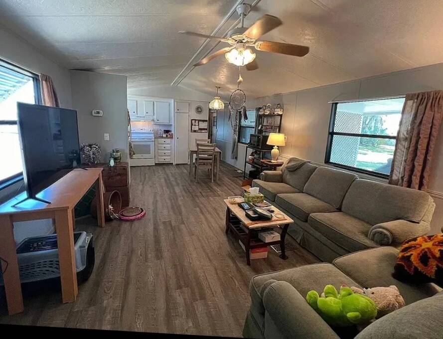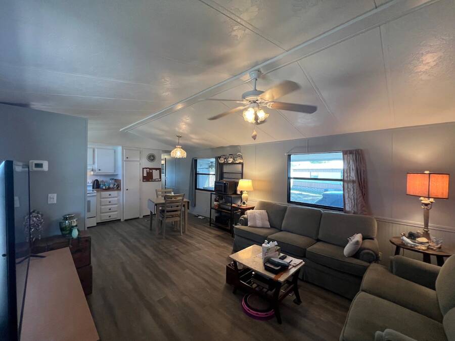 Seller will consider all offers. Welcome to this well-kept 2-bedroom, 1.5-bathroom home, designed with a thoughtful split plan layout for added privacy. Step inside to discover a fresh and inviting space, featuring updated waterproof vinyl plank flooring throughout. Freshly painted interior that exudes a modern, move-in ready appeal. The kitchen is equipped with a new flat-top stove, perfect for culinary enthusiasts. For those who prefer a different cooking setup, the propane gas line remains intact for potential future use. Relax and unwind in the cozy, enclosed screen porch, designed with lattice for added privacy. Ideal for enjoying your morning coffee or evening relaxation. Located in a welcoming community with lake access, this property offers the perfect blend of comfort and convenience.