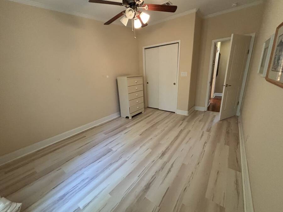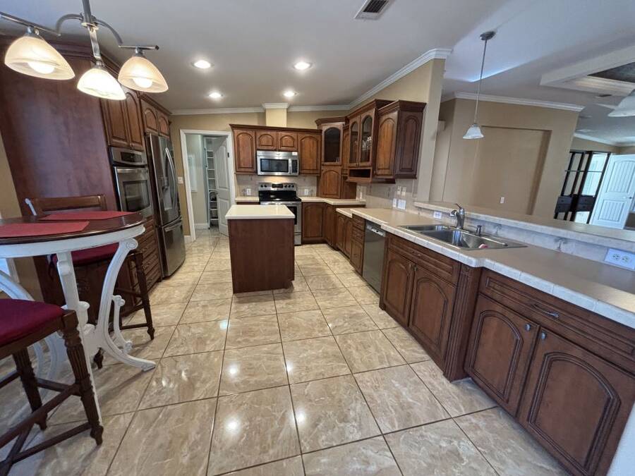 Step inside to find an open-concept floor plan, hardwood floors, high ceilings, and natural light. The kitchen boasts stainless steel appliances, custom cabinetry, Island, and recessed lights, perfect for both everyday living and entertaining. The spacious primary suite offers a peaceful retreat, complete with en-suite features like dual vanities, walk-in shower, dual walk-in closets, and access to the office . Additional bedroom provides space for guests. Outside you will enjoy, a private backyard oasis, glass lanai, large back porch and low-maintenance landscaping, ideal for entertaining or unwinding.