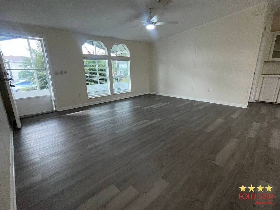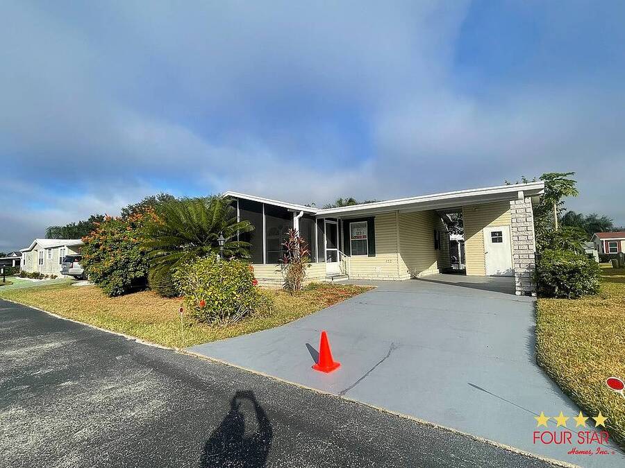 Welcome to Windmill Village, a desirable 55 plus community where comfort meets convenience, including a clubhouse with a full-size kitchen, gym, swimming pool, pickleball, shuffleboard courts, pool tables, TVs throughout the clubhouse, library, and a full calendar of resident activities. All of this is just minutes from Disney, shopping, restaurants, Walmart, Publix, Lowes, and more! This beautifully remodeled 3-bedroom, 2-bathroom manufactured home is truly move-in ready and offers everything you need to enjoy Florida living at its finest. This home has been thoughtfully renovated with new flooring throughout, fresh interior paint including ceilings, and new blinds in every room. Enjoy comfort and style with five brand-new ceiling fans with remotes, along with new faucets in the master bath, guest bath, and kitchen, plus a new kitchen sink. The bathrooms feature updates including a new shower head and handler, ensuring a fresh, modern feel. The spacious master bedroom includes a large walk-in closet and even provides an extra area perfect for a home office or sitting space. Practical updates include new doors in the laundry area, new locks on both front and back doors, and a new outside screen door. The home also boasts fresh paint on the porch and driveway, giving it a clean and welcoming curb appeal. This home truly offers comfort, style, and peace of mind and all in a vibrant community with plenty of amenities to enjoy the outdoors from your screened-in porch, an ideal spot to unwind with your morning coffee or watch a Florida sunset. Do not miss this opportunity to own a beautifully remodeled home in a vibrant 55 plus community. Call today to schedule your private showing!