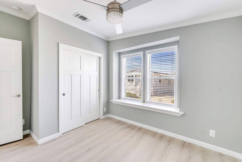 The Lantana, a premier coastal cottage, designed by an award-winning team features a color-coordinated exterior with detailed board and batten, stone skirting, and custom lighting. A front porch and beautiful landscaping add charming curb appeal. Inside, the modern kitchen with stainless steel appliances leads into thoughtfully designed spaces, including a main bedroom with an en suite bathroom.