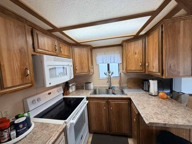 Recent updates include all-new PEX plumbing, a new hot water heater, luxury vinyl plank flooring throughout, and new sliding patio doors with built-in blinds, adding both modern functionality and aesthetic appeal. The kitchen has been upgraded with a new glass-top stove, refrigerator, sink, and faucet—perfect for everyday living.