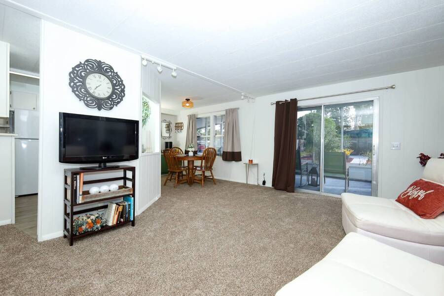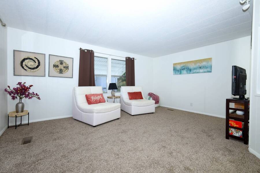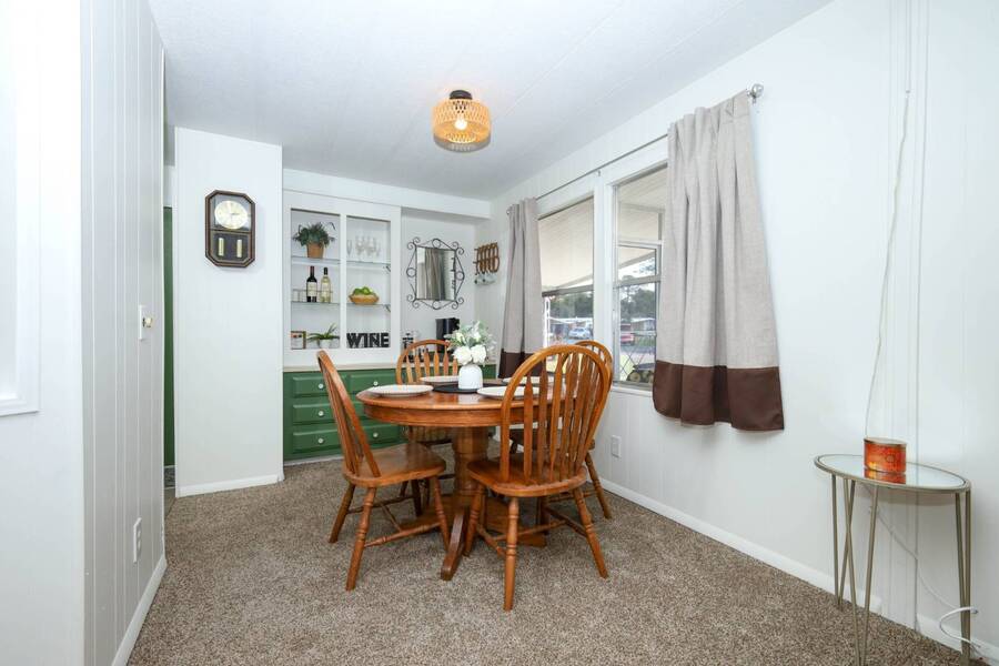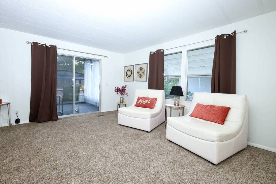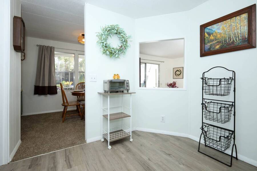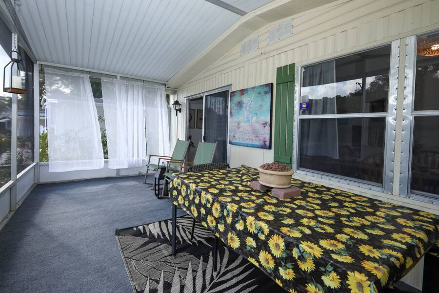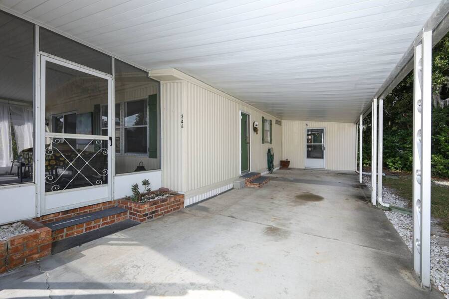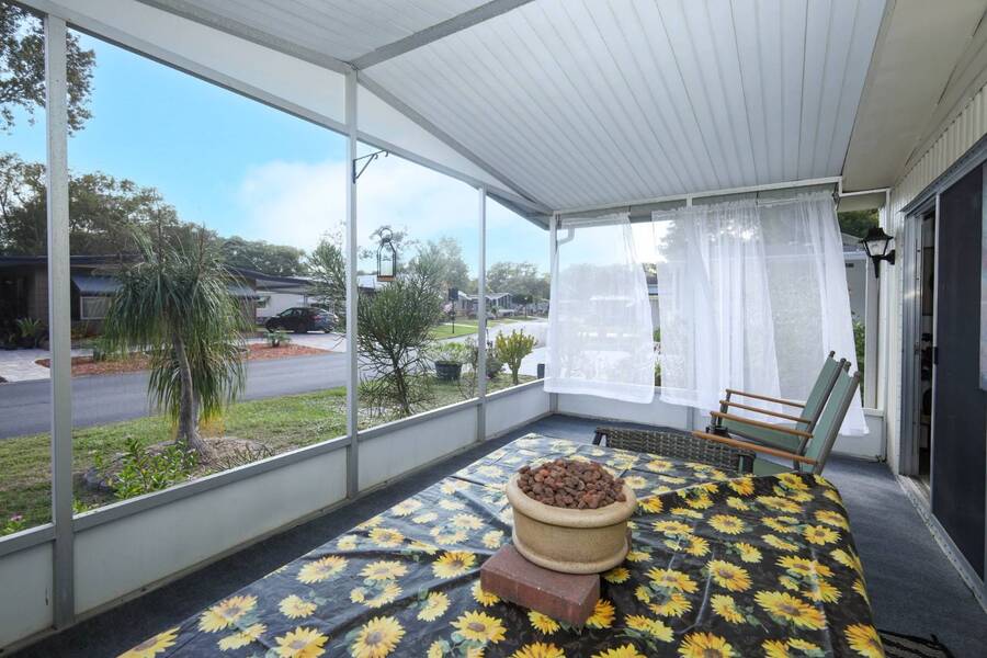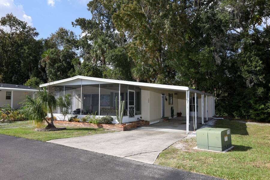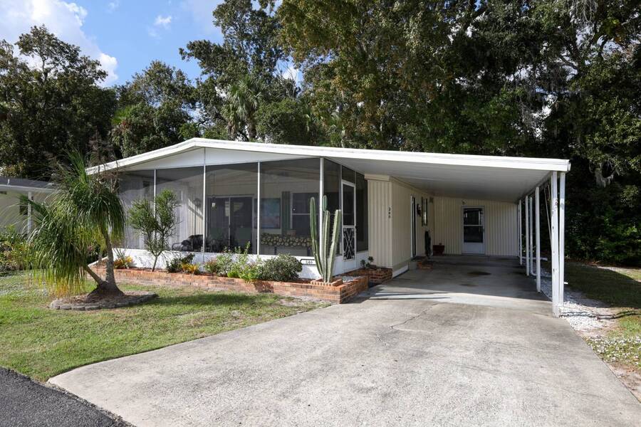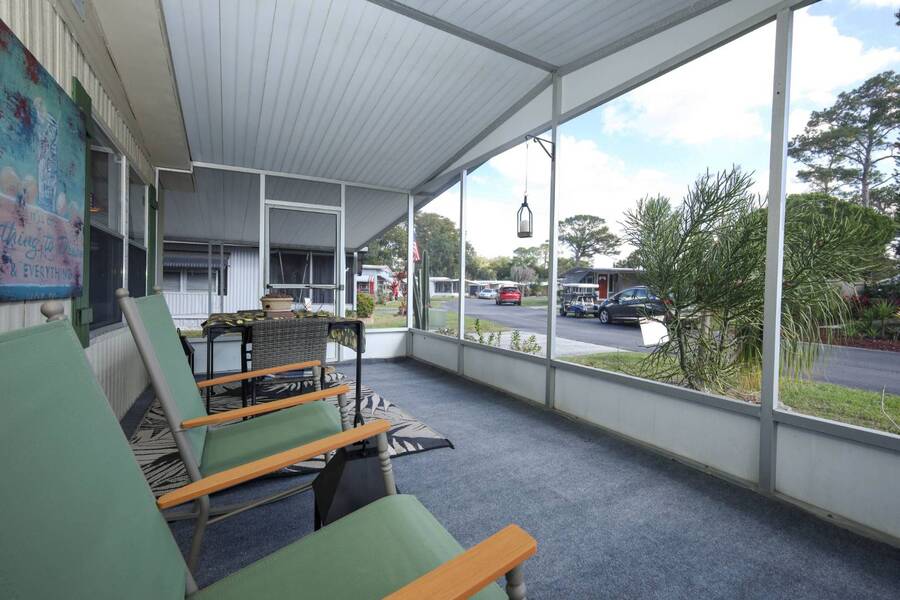Beautiful well-kept home-Peaceful backyard, screened in porch, carport with storage shed & laundry facilities. Freshly painted inside. Location: Major Roads nearby about 45 minutes to Beaches & Parks. There are lots of amenities including 2 pools, (1 heated), Pickel ball, Putt Putt, Doggy Park and more. Plenty of activities for all. Base rent is 1075. ( average rent is $1200 which includes a spectrum package, plus community fees. Owner motivated.