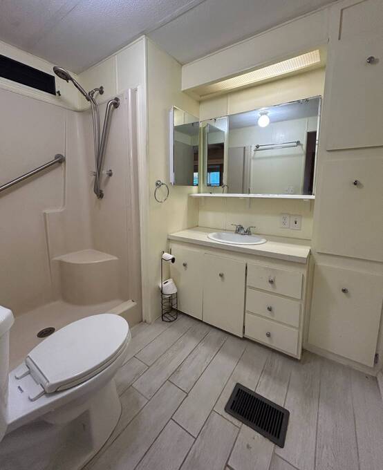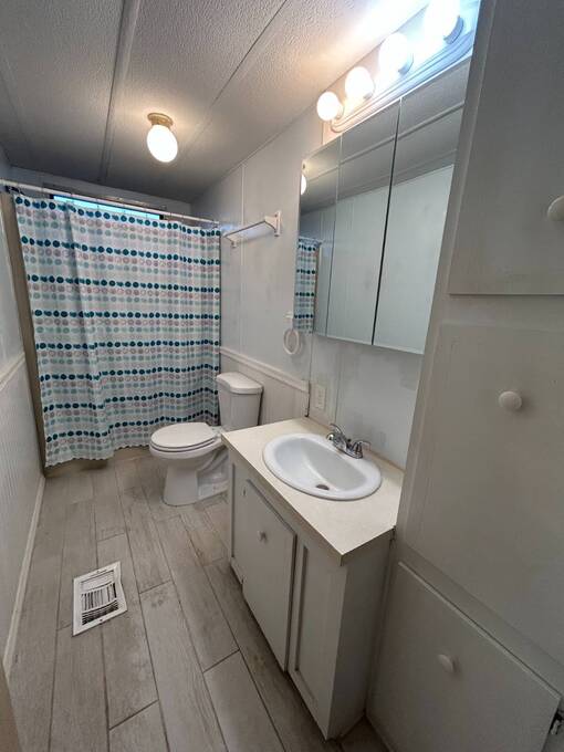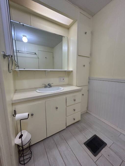 This spacious 2 bedroom, 2 bathroom home features vaulted ceilings and beautiful bay windows that fill the living room and primary bedroom with natural light. Recent updates include new carpet, new vinyl plank flooring, and a new refrigerator. The home offers a built-in china buffet, a convenient wet bar, and an inside laundry room with a utility sink. The primary suite includes a large walk-in closet, while the exterior features a durable metal roof, gutters, and a sprinkler system. Enjoy relaxing in the large screened-in porch or take advantage of the two attached storage rooms (11x13 and 11x8). A ramp provides easy handicap access, making this home both comfortable and practical. Located in Eastern Shores Village, one of the area's most desirable 55+ communities, the low lot rent covers water, sewer, trash, and resort-style amenities: heated pool, clubhouse, billiards, shuffleboard etc... This home is priced to move fast-thousands below comparable listings! Just minutes to the beach, the Intracoastal, shopping, and dining. Don't miss out on this incredible deal-schedule your private showing today before it's gone!