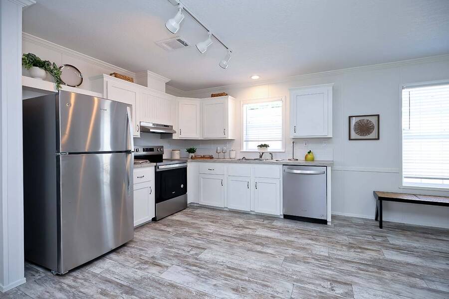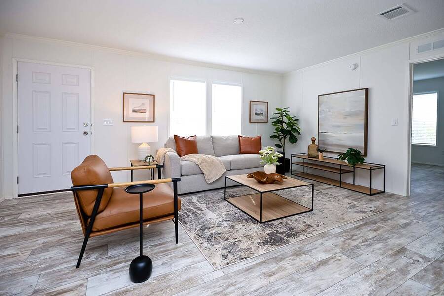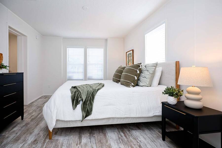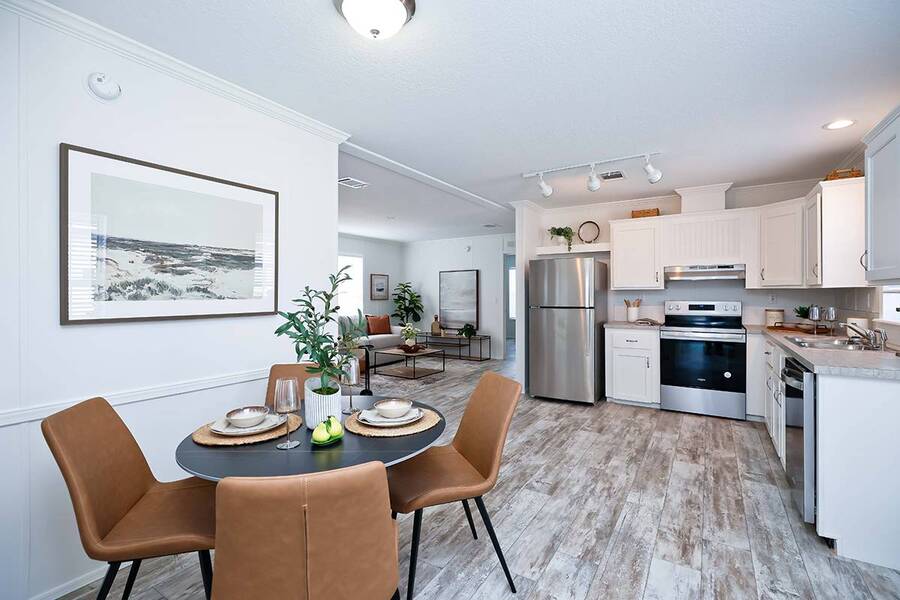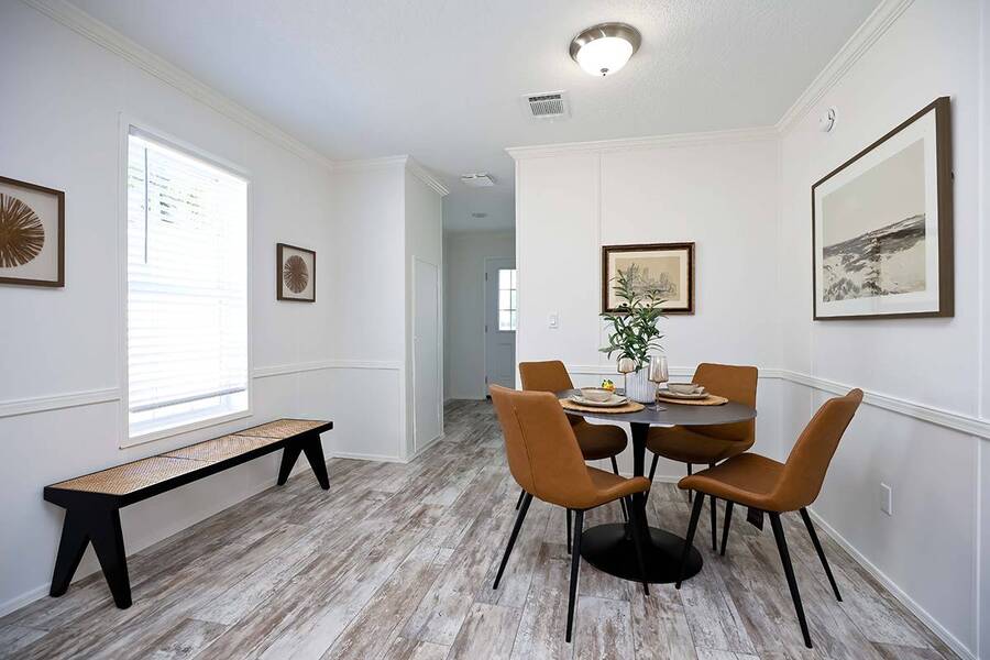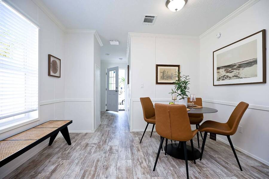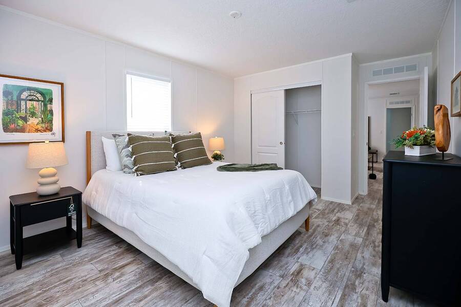 Golden Gardenia Grove is a brand-new 3 bedroom, 2 bath residence offering bright open-concept living spaces and a versatile bonus room. The home's crisp exterior and covered carport make a welcoming first impression, with side-by-side parking-a rare and highly desirable feature that means you'll never have to juggle cars. The covered entry off the carport opens directly into the kitchen for convenient grocery unloading, while a second entrance through the living room provides a more traditional welcome. Inside, the look is light, airy, and relaxed (think casual coastal Florida charm). Vinyl plank flooring in beach-washed tones gives the entire space a breezy, laid-back vibe. The kitchen features brand-new stainless-steel appliances-including refrigerator, smooth-top range, and dishwasher-all under warranty and paired with clean white cabinetry and generous counter space. A new stacked front-load washer and dryer, also under warranty, are included in the price. The spacious primary suite includes its own bath with walk-in shower, while two additional bedrooms, a second full bath, and a flexible bonus room offer plenty of room for family, guests, or a home office. This home is entirely new and comes with a full one year builder warranty for peace of mind. Finally, like all homes in this desirable lakeside community, you will appreciate central air and heat, your own outdoor storage shed, and access to the community's extensive recreational amenities including fitness, tennis, basketball, clubhouse, sauna, heated pool complex, beach volleyball, lake recreation and more. Tours available 7 days a week from 10am - 5pm by appointment.