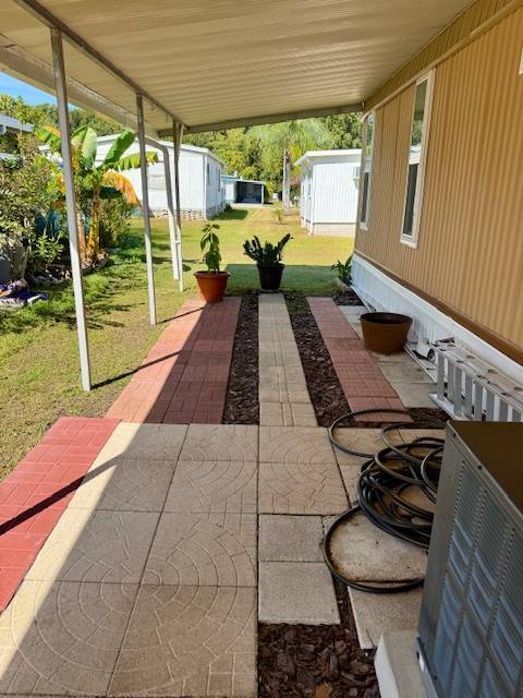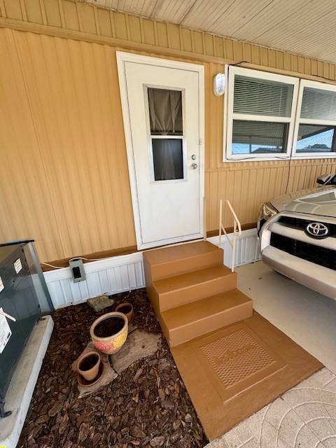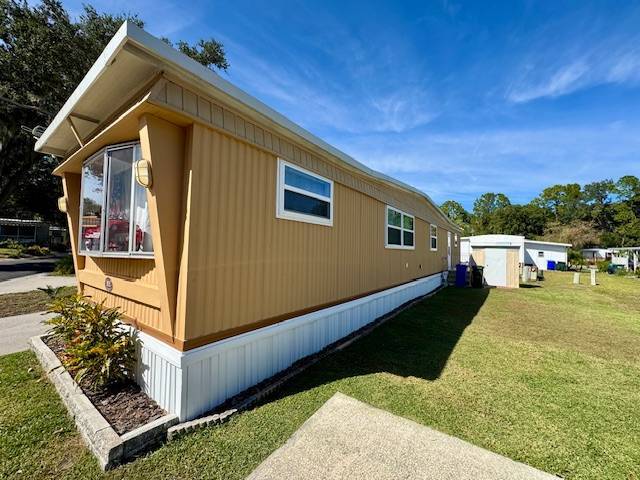 MAKE AN OFFER - CASH ONLY!!! This stunning home was completely remodeled in 2023, offering a fresh, modern feel throughout. The kitchen features elegant white shaker cabinets paired with sleek Corian countertops, while the primary bathroom showcases a beautifully updated shower enclosure and rich granite countertops. Enjoy peace of mind with hurricane-impact windows (all except the front bow window) and a reinforced carport designed for extra protection. The interior boasts luxury vinyl plank flooring, new insulation, and fresh paint from top to bottom. A brand-new A/C unit with a 10-year parts warranty ensures year-round comfort. With two spacious driveways, there's room for up to four cars-one under the covered carport, which also offers a cozy sitting area to enjoy the evening breeze. The second driveway provides flexibility for an additional enclosure or carport if desired. This home comes partially furnished, including a comfortable sofa, full-size bed, and window draperies. The washer and dryer-just two years old-are conveniently located in the primary bathroom, adding a unique touch of convenience. Lot rent is $639 per month. Fountainview Estates is a pet-friendly 55+ community allowing two pets at 25lb max. Enjoy bass fishing, water skiing, and viewing beautiful sunsets from the clubhouse/dock. Utilities not included in lot rent. Owners pay electric, water, cable, and $25/year HOA. Heated Pool, Shuffleboard, Clubhouse with a kitchen, pool table, fireplace, library, puzzle box, and bingo. Great amenities with an affordable rent. The park is approximately one hour from beaches to the West, and Legoland and Disney World to the East. Fountainview Estates is situated near an abundance of shopping, restaurants, and medical services...most accessible by golf cart! Good news given today's gas prices. PARK APPROVAL IS REQUIRED with proof of income at least 3 times the monthly rent. MUST BE AT LEAST 55 years old to apply. Application fee is $50 cash per person (Canadian $85/ea.) Primary resident must be at least 55 y/o and 2nd must be at least 40 y/o. Must HAVE a credit history with no collections. Background checks. THIS IS A MOBILE HOME IN A PARK ON LEASED LAND, NOT REAL ESTATE. YOU MUST CONTACT THE MOBILE HOME LISTING AGENT FOR SHOWINGS. All listing information is deemed reliable but not guaranteed and should be independently verified through personal inspection by appropriate professionals. Our company does not and cannot guarantee or warrant the accuracy of this information or the condition of this property. Measurements are approximate. The buyer assumes full responsibility for obtaining all current rates of lot rent, fees, and pass-on costs. Additionally, the buyer is responsible for obtaining all rules, regulations, pet policies, etc., associated with the community, park, or home from the community/park manager. Our company is not responsible for quoting said fees or policies. Sales price doesn't include tax, dealer, or admin fee.