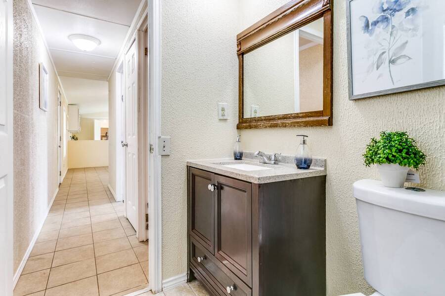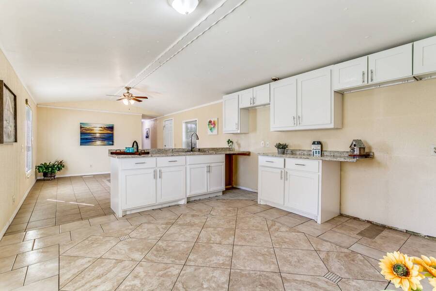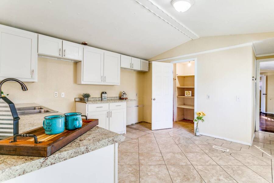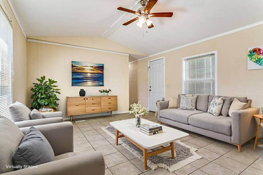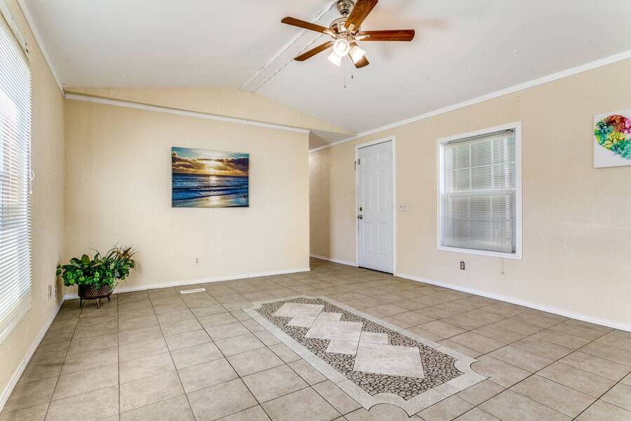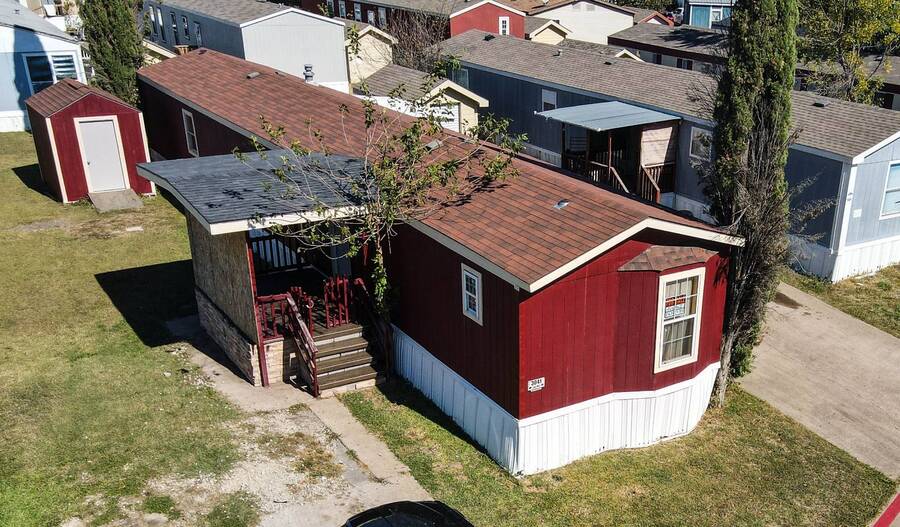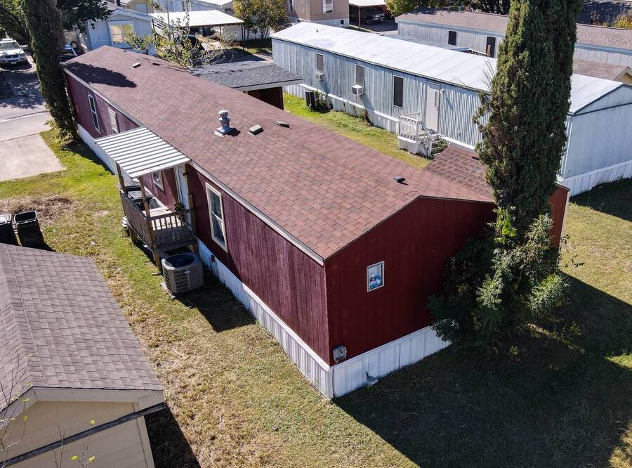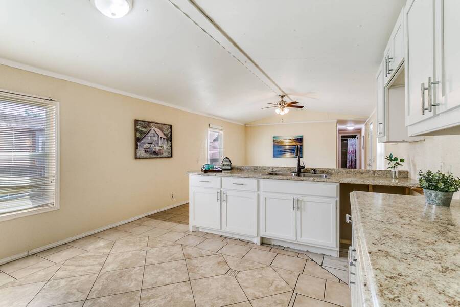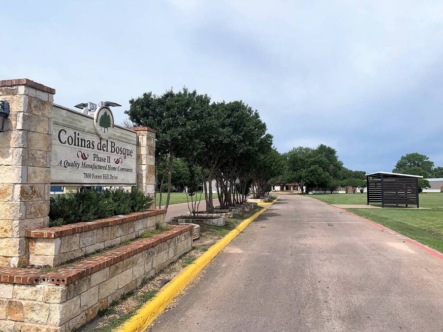 Open House, 3/7, between 1:00 - 3:00 p.m. Priced right (less than ~$1350/mo w loan), tucked into this quiet & peaceful community, Colinas South, located in the Forest Hill area of S Fort Worth, this home is a perfect starter or retiremen1t home. The home has 3-bed, 2-bath, w/large & accommodating kitchen, living room, separate laundry, primary bedrm w/ensuite bath, and two beds & bath. Energy-efficient upgrades include newer dual-pane windows (2023), and HVAC-heat pump/SEER 14.5/R410-A (2022) which adds to affordability, together with 4-yo roof. Freshly painted throughout, the home has sheetrock walls & ceilings, complemented by base and crown molding (in some rooms). The primary bedroom includes an ensuite bathroom (with shower & toilet) and a large walk-in closet with built-in shelving. The laundry area is combined with the kitchen pantry area and provides added convenience together with shelving. Vaulted ceilings provide an open feel to the home; plus all hard flooring (tile & laminate) throughout. Fantastically updated 2nd bathroom with modern tile, hardware, and fixtures. Enjoy the spacious kitchen, complete with formica countertops, plenty of cabinets with pulls, and separate pantry. Step outside to the large covered porch, perfect for relaxing or entertaining. The property includes an 8x12 storage shed with ramp, and assigned 2-car parking. Don't miss this fantastic opportunity to own this affordable home in Colinas South. Subdvn has community pool and playground. Priced to sell and as-is. For cash purchase, total estimated costs ~$1125 per month + utilities. For loan - less than ~$1450 per month (which includes $1090/mo lot lease)! Use of TDHCA contracts & disclosures (not TREC) - referral fee for TREC realtors - located in community that requires lot lease. Some photos are virtually staged.