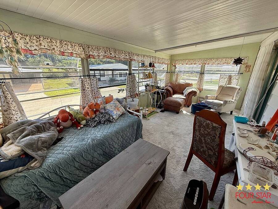 Motivated seller! Located in the desirable 55plus land lease community of Country Village, this 1983 Palm Harbor home presents an excellent opportunity for buyers seeking value and potential. Country Village continues to offer some of the lowest lot rents in the area, making it an attractive choice for those looking to enjoy the Florida lifestyle without breaking the budget. This two-bedroom, two-bath home is situated on a spacious corner lot with great elevation and features two separate driveways, providing plenty of room for parking. A bright and colorful interior gives the home a distinctive personality, offering a canvas for buyers with creative vision to bring their own style and updates. The Florida room extends the living space and can be enjoyed year-round, perfect for relaxing or entertaining guests. This home, with its solid Palm Harbor construction, appealing location, and the communitys affordable lot rent, offers a wonderful opportunity to create a personalized retreat in one of the areas most sought-after 55plus communities.