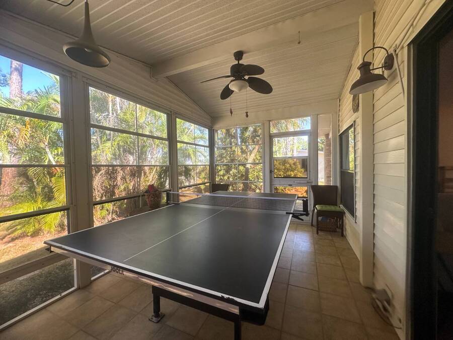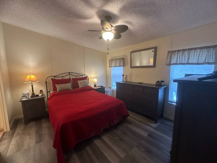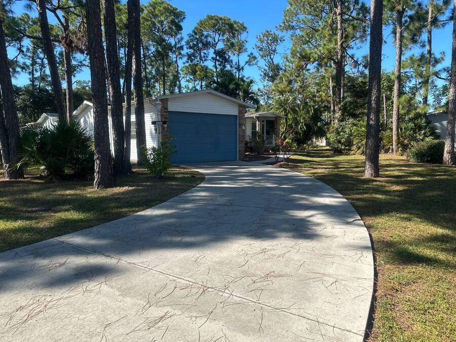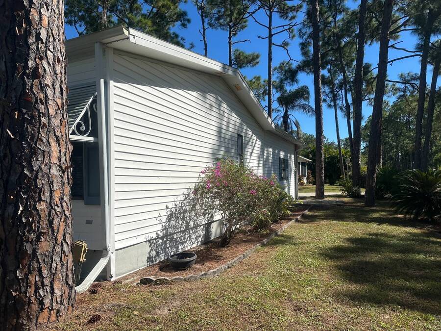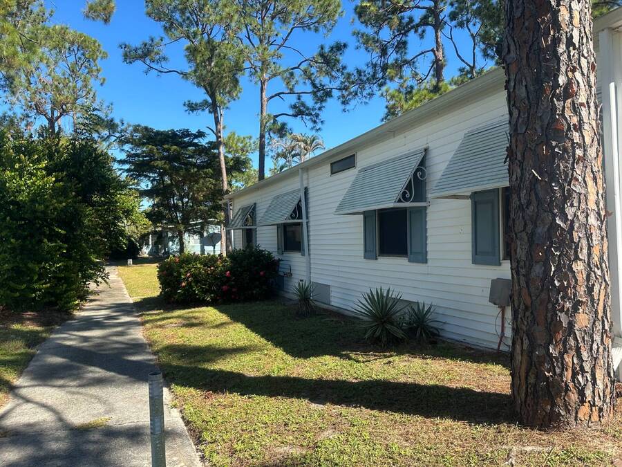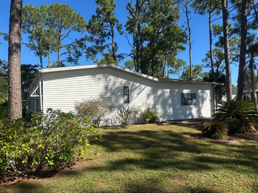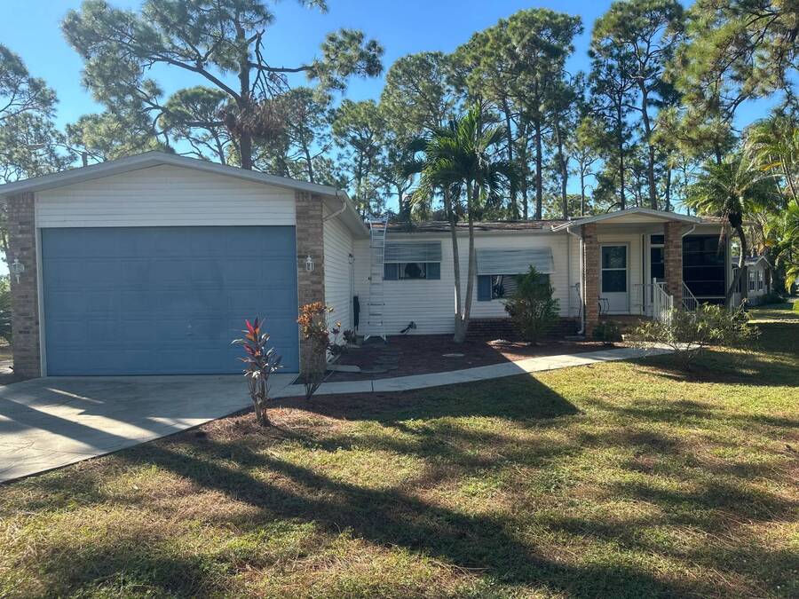 Tucked away and nestled among the trees, this well-kept manufactured home offers exceptional privacy and a serene setting. Inside, you'll find a comfortable layout featuring 2 bedrooms and 2 updated bathrooms, plus updated flooring throughout. The home is furnished for an easy move, and the vaulted, enclosed lanai serves as a perfect year-round retreat. Complete with a 1-1/2 car garage, this charming property on leased land is a peaceful haven away from the hustle and bustle.