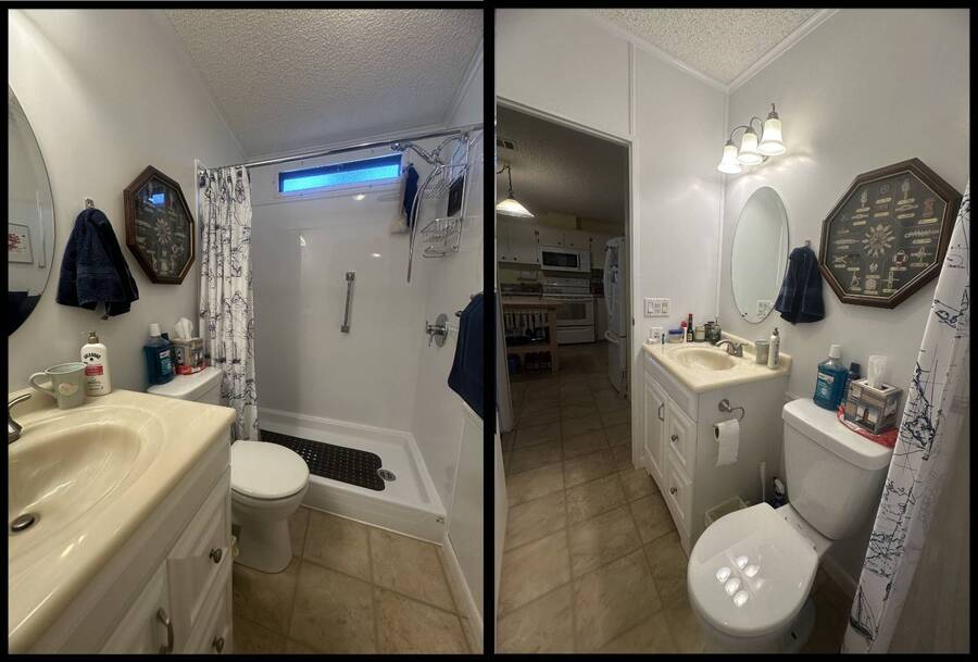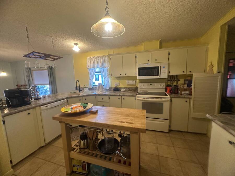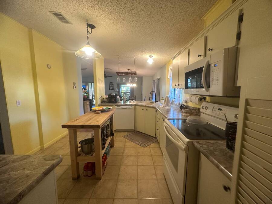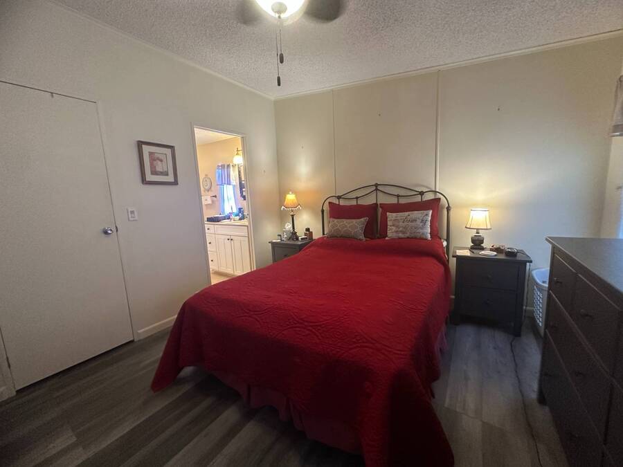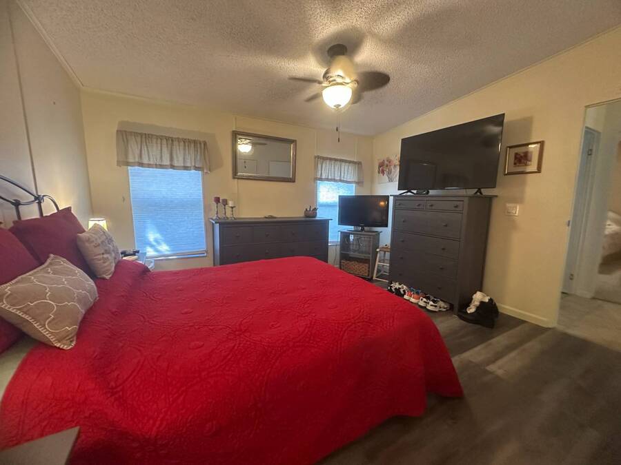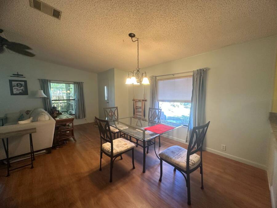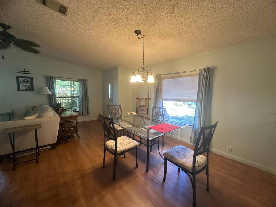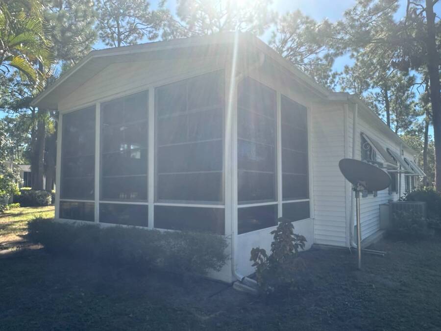 Tucked away and nestled among the trees, this well-kept manufactured home offers exceptional privacy and a serene setting. Inside, you'll find a comfortable layout featuring 2 bedrooms and 2 updated bathrooms, plus updated flooring throughout. The home is furnished for an easy move, and the vaulted, enclosed lanai serves as a perfect year-round retreat. Complete with a 1-1/2 car garage, this charming property on leased land is a peaceful haven away from the hustle and bustle.