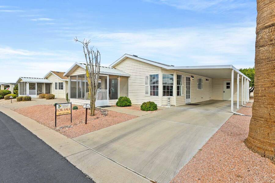 This home is clean as a whistle and move in ready. Enjoy lovely neutral palette with plenty of natural light coming in the well placed windows! This is a 2 bed 2 bath home with vinyl plank flooring throughout except for the new carpet in the bedrooms. There is great outdoor space with a lovely screened in AZ room up front and plenty or more private space in the back PLUS 2 amazing citrus trees to enjoy and share with friends!! Call today, this is a lovely home! New Disposal and R/O,Tasty Orange and Pink Grapefruit Trees,Freshly Painted! Experience Thesman Communities Lifestyle, we are an active 55 plus community where luxury meets affordability. For over 40 years we have set the standard with world class amenities and year-round activities. Our community is a 24-hour gated community, with a beautiful 30,000 square foot clubhouse including ballroom, fireside lounge, library with computers and individual rooms for cards, billiards, arts & crafts and fitness center. Enjoy outdoor amenities heated pool & spa with cabanas, BBQ area, putting green, pet park, sport courts for pickleball, tennis, bocce, shuffleboard and basketball. Our activities director assures a full calendar of social and recreation events. Our shuttle bus makes it easy and convenient to attend sporting and special events, plus local shopping. Whether you want to relax or stay active our vibrant communities offer everything you need to enjoy life to the fullest. Discover Thesman Communities and start living the Thesman Lifestyle today!