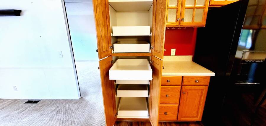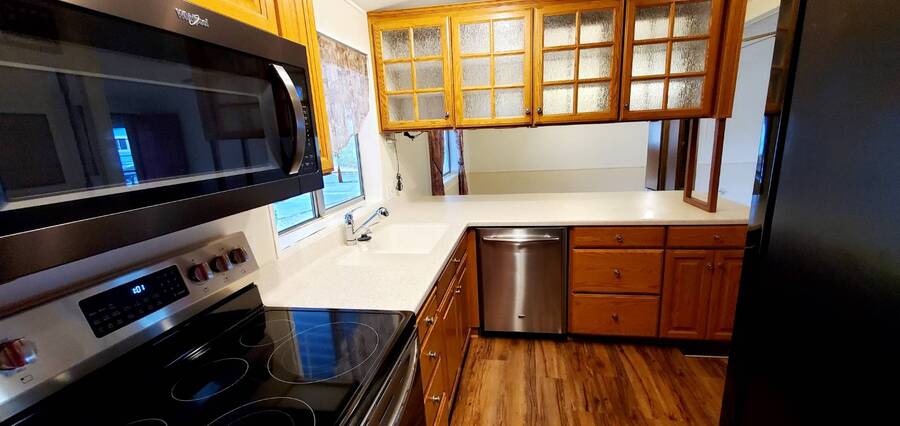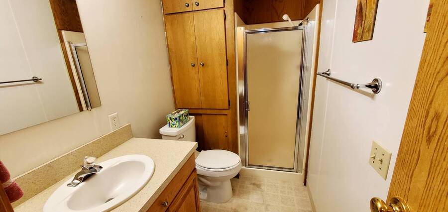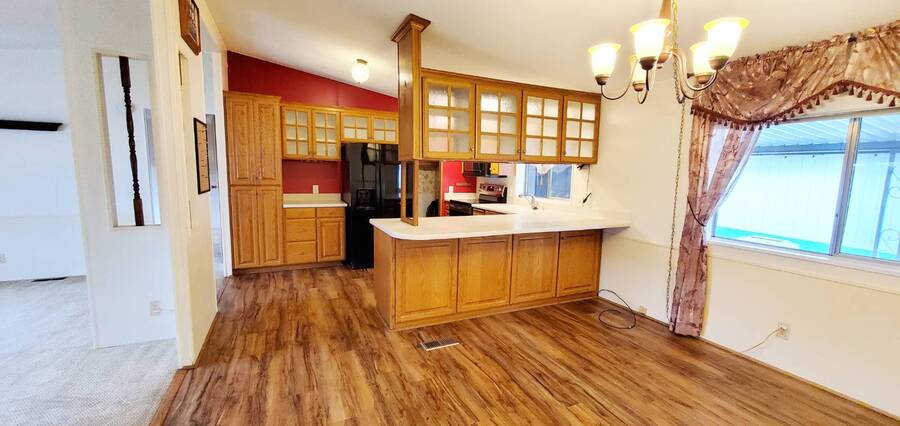 Welcome home to this beautiful 3 bedroom, 2 bath Fleetwood Berkshire. This is a manufactured home in a Senior 55+ Park and NO land is involved with the sale of this home. This wonderful home offers approximately 1296 SF of room and its features include large, open living area bathed in light, paddle fan and eating bar in the dining room, upgraded cabinets, counters, sink and appliances including built in Whirlpool microwave in the kitchen, pantry with pull out drawers and cabinets with pull out drawers, hardwood floors in the hall, dining room, kitchen and utility room, main bedroom features walk in closet and en-suite bath with deep tub and upgraded cabinets, vanity and toilet, guest bath features walk in shower, extra storage and upgraded cabinets, vanity and toilet. Living area measures approximately 13x22', dining room 13x13', kitchen 10x13', main bedroom 12x13' with 13x5' en-suite, 2nd bedroom 12.5x13.5' and 3rd bedroom 8x11'. Fully fenced back yard. Back deck offers ramp access to the back yard and patio area which features raised planter boxes, watering system, 3 storage buildings and large concrete and brick patio area perfect for entertaining, BBQ's or just relaxing. (More pictures coming soon of the back area) Front deck measures approximately 16x6', front awning 22x7', rear patio (brick & concrete) 16x18', ramp to back 12x8', rear awning 9x28', carport 11x35', storage building outside back door 4x13', 8x4' metal storage building (newer) and 8x10' storage building. Storm doors on front and back doors. Roof under 10 years old. Furnace under 10 years old. Carpet and hardwood flooring under 5 years. Heat pump for economical heating and cooling. Heat pump manufactured in July 2018. Pet policy: 2 pets to 20 lbs. Located in Terri Lynne a wonderful Senior (55+) Community close to bus, freeway, Max, shopping, restaurants and so much more! Base park rent on this unit is approximately $1,100.00.