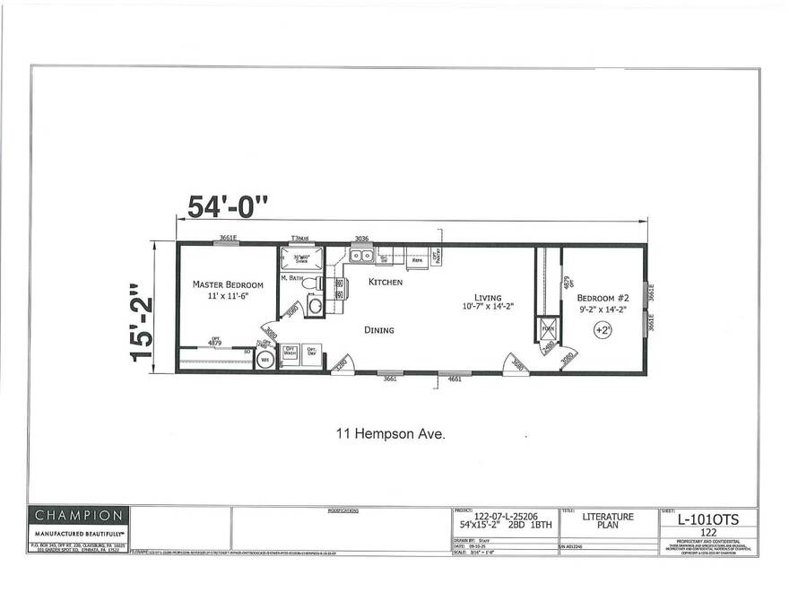 Location: 11 Hempson Ave in Egg Harbor Twp Manufactured Home Community Address: 11 Hempson Ave, Egg Harbor Twp., NJ 08234 Manufacturer: Redman Homes Champion Homes Type: New Construction Manufactured (HUD) Bedrooms: 2 Baths: 1 Price: $125,000 Size: 16 x 54 Nominal Square Footage: 864 Nominal Year: 2026 Availability: January 1, 2026 Parking: We have a one person - one vehicle restriction in the Lease, with a maximum of two vehicles, only if there are two drivers. The Lease sets a maximum of two vehicles for any one home. More than two vehicles are restricted by the Lease. HOME FEATURES: Siding: Vinyl (Olive) Shutters: Vinyl (Black) Walls: Vinyl over gypsum board (Weathered Reef) Cabinets: White Shaker Countertop: Laminate (Glacier Quartzite) Backsplash: Laminate (Glacier Quartzite) Appliances: 4 Stainless Steel Whirlpool Flooring: Vinyl (DF9662- European Oak-Nordic White) Roof: Shingles Additional Features: Insulation in walls, floor & ceiling Central Heating & Cooling System High Efficiency Gas Furnace: 60 BTU Perimeter located floor vents Whirlpool Stainless Steel Appliances: 30" Gas Range, Dishwasher, 18' cu ft Refrigerator & Microwave over Range, White Kitchen & Bathroom Cabinets with adjustable shelves Ceiling Fan in Living Room Laminate Countertops in Kitchen and Bathroom Programmable Thermostat 40 gal Electric Water Heater Low E Thermal Pane Windows 100 AMP Electric Panel LED Recessed Lighting throughout house Cable TV Jacks: Bedrooms & Living Room One Piece 2 seat Fiberglass Shower Stall with Glass Sliding Door 36 x 8 Transom Window in Bathroom Plumbed for your Washer and Gas Dryer White Cabinets over Laundry Area Custom Steps Concrete Foundation System Heat Tape & Insulation on water line Seamless Gutters & Downspouts Andersen Glass Storm Doors at Front & Rear Doors Full Vinyl Skirting with top & bottom trim Manufacturer's Limited Warranty - First Year Energy Star Certified Champion Year 2-7 LImited Extended Warranty