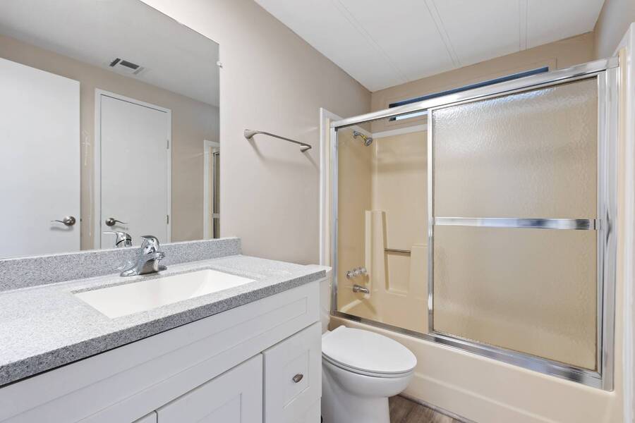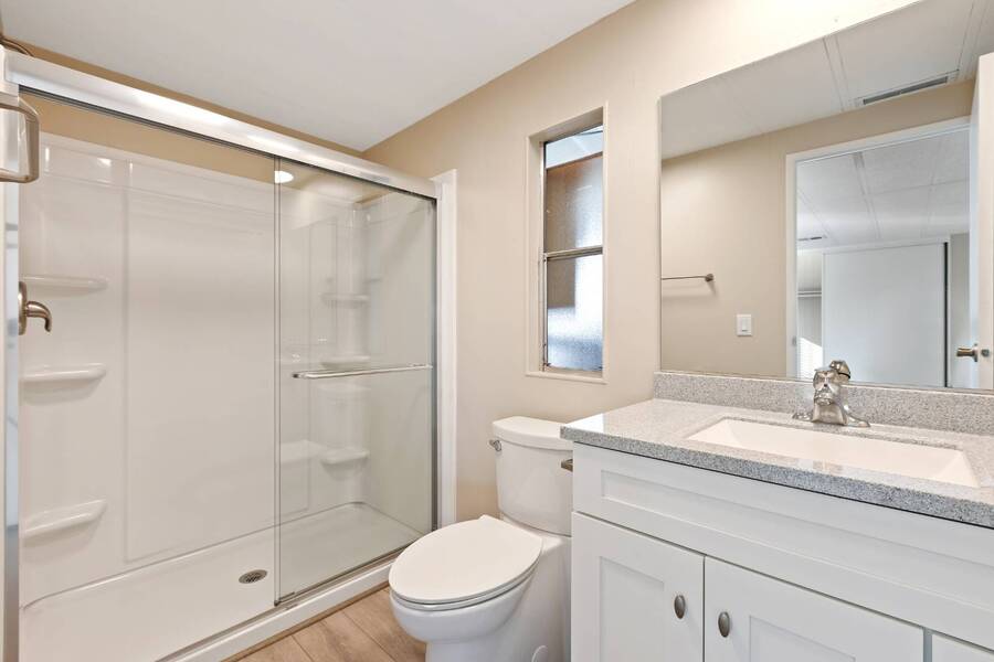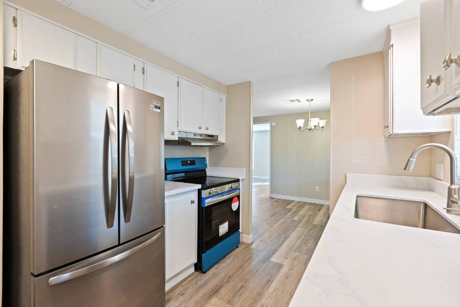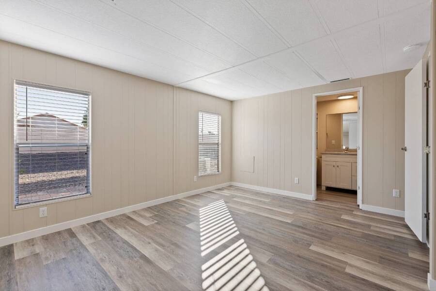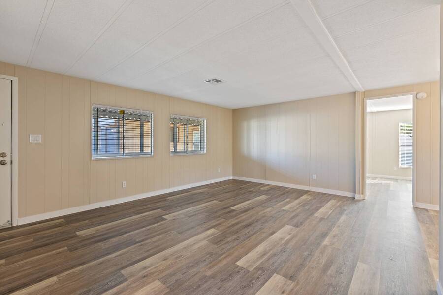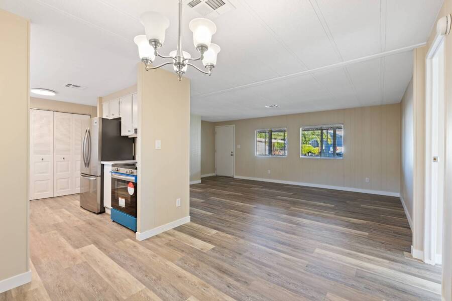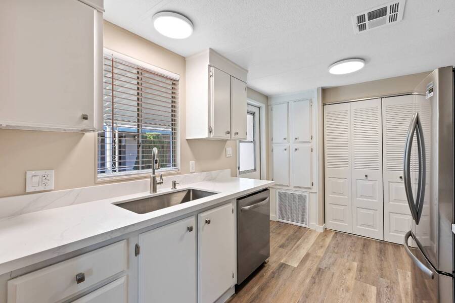 This sought after 3 bedroom 2 bath home has been recently remodeled with modern finishes throughout. The open floor plan, fresh neutral paint, and luxury vinyl plank flooring that gives the entire space a bright, welcoming feel. The newly remodeled kitchen features brand new stainless steel appliances and quartz countertops. The spacious dining and living areas flow beautifully. Enjoy two stylishly updated bathrooms with new vanities, lighting, and fixtures. The split floor plan offers privacy with the primary suite having it's own side of the home with an ensuite bath. Take pleasure in the all season Arizona room or relish in the private backyard. Stainless Steel Appliances-2025 | New Flooring and Baseboards-2025 |New Light Fixtures & Ceiling Fans-2025 |Remodeled Primary Bathroom-2025 Freshly Painted Interior-2025 |Freshly Painted Exterior & Trim-2025 | W/H -2025 | Roof- 2017 | A/C - 2016 Experience the Thesman Lifestyle, we are an active 55 plus land lease community where luxury meets affordability. For over 40 years we have set the standard with world class amenities and year-round activities. Our community features a gated community, with a beautiful clubhouse including ballroom, library with computers and individual rooms for cards, billiards, arts & crafts and fitness center. Enjoy outdoor amenities heated pool & spa, BBQ area, pet park, sport courts for shuffleboard. Our activities director assures a full calendar of social and recreation events. Our shuttle bus makes it easy and convenient to attend sporting and special events, plus local shopping. Whether you want to relax or stay active our vibrant communities offer everything you need to enjoy life to the fullest. Start living the Thesman Lifestyle today!