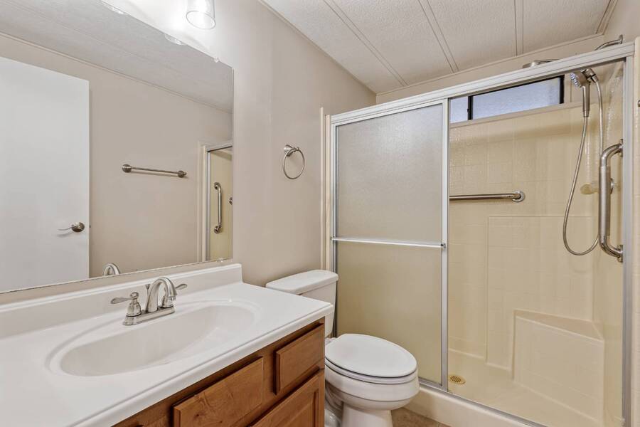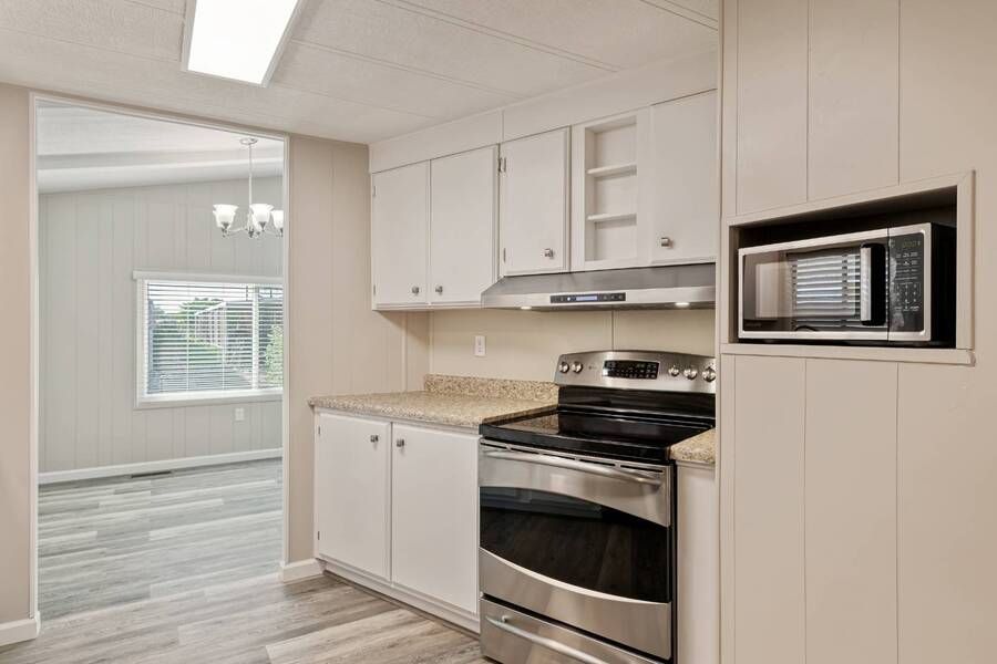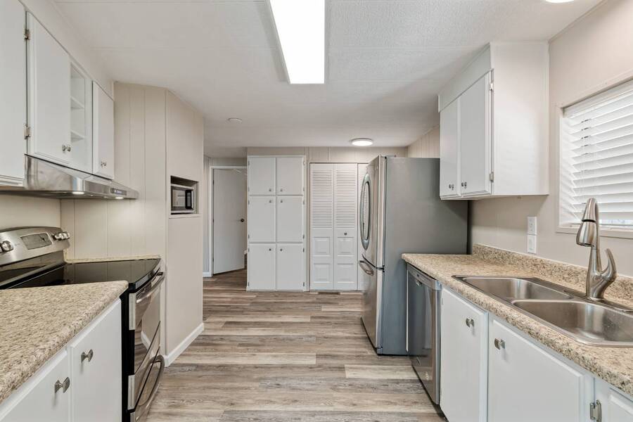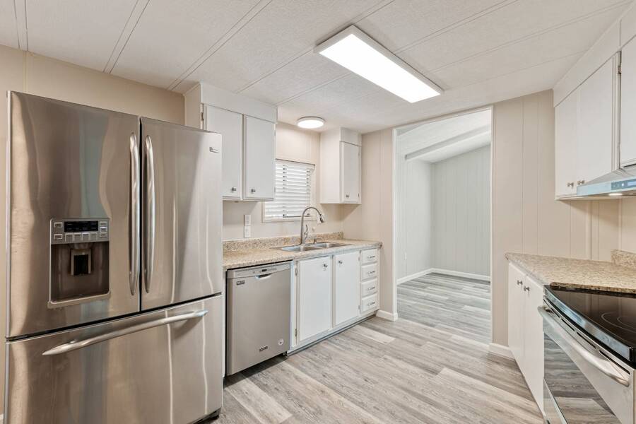Perfectly updated 2 bedroom 2 bath home offers modern upgrades and spacious living areas inside and out. Enjoy low maintenance living with a bright, open layout that make this home truly move in ready. The enclosed Arizona room adds valuable extra living space to enjoy year round sunshine. If you're looking for a seasonal getaway or your forever home, this beauty offers unbeatable value and comfort. Don't miss out! Fresh Interior Paint-2025 l Brand New Flooring & Baseboards -2025 l New Light Fixtures & Ceiling Fans-2025 l Roof & Carport Awnings - 2023 l A/C Installed - 2022 l Front Dual Pane Windows-2021 l Stainless Steel Appliances -2019 Experience the Thesman Lifestyle, we are an active 55 plus land lease community where luxury meets affordability. For over 40 years we have set the standard with world class amenities and year-round activities. Our community features a gated community, with a beautiful clubhouse including ballroom, library with computers and individual rooms for cards, billiards, arts & crafts and fitness center. Enjoy outdoor amenities heated pool & spa, BBQ area, pet park, sport courts for shuffleboard. Our activities director assures a full calendar of social and recreation events. Our shuttle bus makes it easy and convenient to attend sporting and special events, plus local shopping. Whether you want to relax or stay active our vibrant communities offer everything you need to enjoy life to the fullest. Start living the Thesman Lifestyle today!