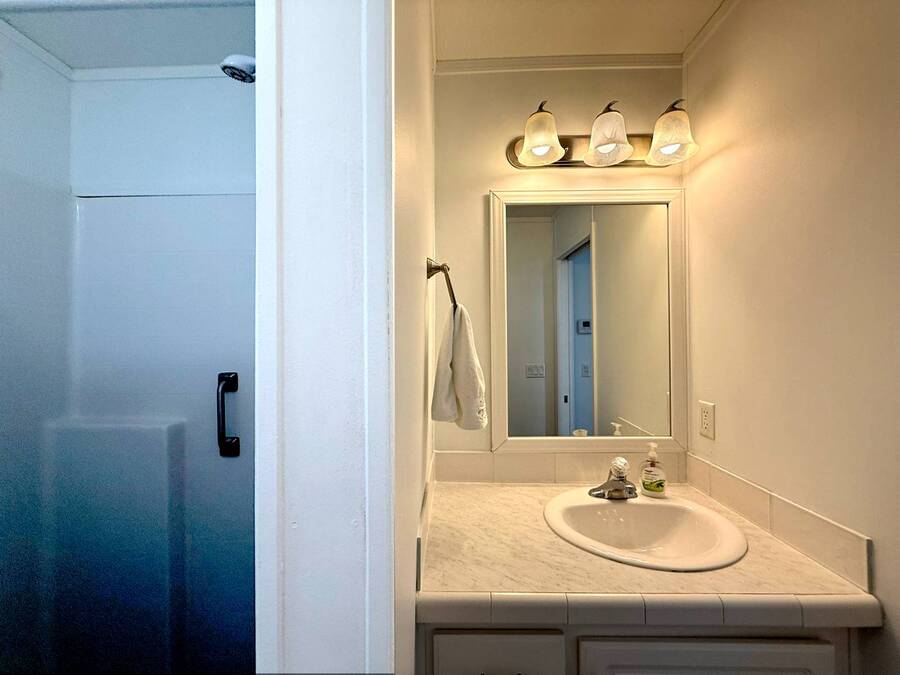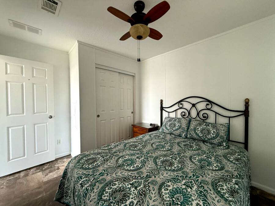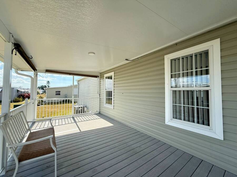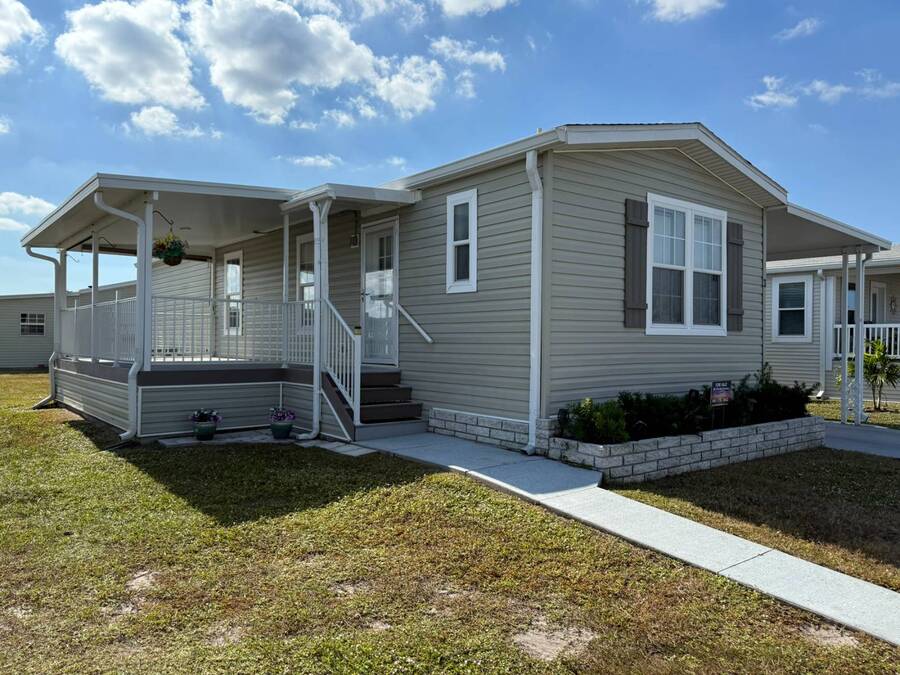 As you pull up to 3 Date Ave, the beautiful curb appeal immediately captures your attention, with clean lines and a welcoming presence that fits perfectly within the peaceful 55+ community of Terra Palms. Stepping inside, you're greeted by an inviting open-concept layout that feels bright, modern, and effortlessly comfortable. The living area flows naturally into the stunning all-white kitchen, where stainless steel appliances, abundant cabinetry, and expansive counter space create a space that is both functional and stylish. The breakfast bar adds a perfect touch, offering a cozy spot for morning coffee, casual meals, or simply enjoying the airy ambiance. Moving through the home, you'll find that every room has been designed with easy living in mind. Ceiling fans throughout keep the Florida breeze moving, while the thoughtful layout makes each space feel welcoming and well-connected. The guest bedroom offers dual closets, providing generous storage and making it ideal for visitors or flexible use. The primary bedroom continues the sense of comfort, giving you a peaceful retreat at the end of the day. As you step outside, the charm continues with a private patio where you can relax, entertain, or simply enjoy the warm Florida weather. The carport adds convenience and protection, and the exterior storage area ensures you have plenty of room for tools, bikes, beach gear, or seasonal items. Altogether, this home blends modern construction, stylish finishes, and effortless livability in a friendly, active community, creating a wonderful place to call home in Bradenton. Terra Palms is a wonderful gated community with numerous amenities; Pickleball, bocci ball, horseshoes, shuffleboard, swimming pool with new spa, new clubhouse, extended covered lounge areas with firepit and a double outdoor built in BBQ area, new fitness center and lush green spaces. There is live entertainment and parties for every occasion. Bradenton and Sarasota offer shopping, dining and centrally located to a number of airports. A must see is the Sarasota Tiger Woods pop stroke and Tampa casino or just search for shark teeth on the beach. The rates include all utilities and amenities such as cable TV, Internet, water, sewer, trash removal, lawn care with the exception of electric service. All listing information given to Our company is considered reliable and appropriate but should be independently verified through personal inspection by qualified professionals. The community office determines the lot rent.
