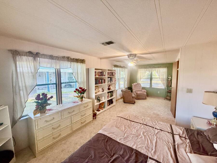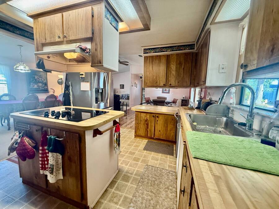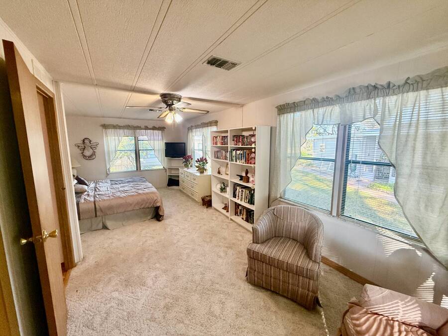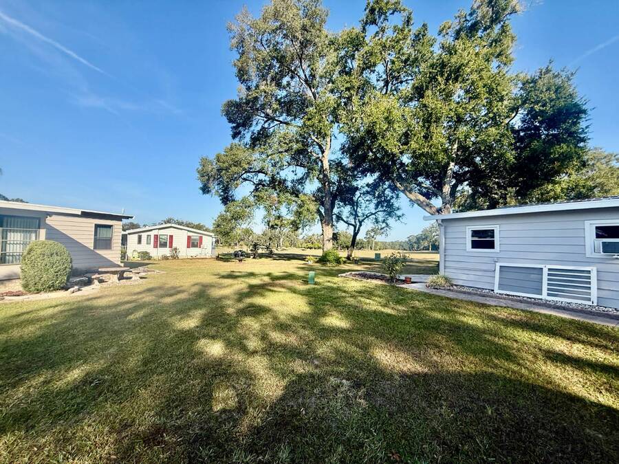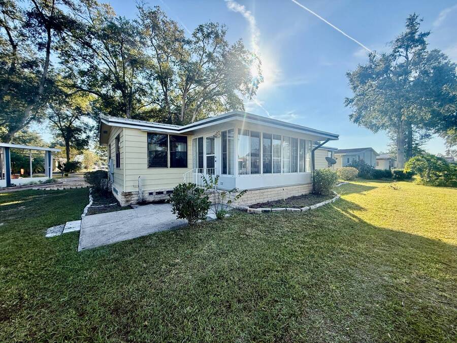 $12,000 PRICE DECREASE!! Home is located in Water Oak Country Club Estates in Lady Lake Florida, an active resort style 55 plus land lease community. This split floorplan home is unique in the community and is located on a large lot. Spacious driveway and carport with extra parking area for a second vehicle or golf cart. The utility shed is large and is great for storage or a workshop. The bedrooms are situated to provide privacy for you and your guests. The primary bedroom and ensuite bathroom is spacious with a walk in closet and has a beautiful renovated walk in shower. The guest bedroom is very large also with a spacious closet and has great views of the golf course. The kitchen has plenty of cupboard and counter space, with an island cooktop and nice large wall oven. A bar top is great for additional seating as well as the full dining area. Convenient indoor laundry located just off the kitchen and washer and dryer convey. Comfortable living room with sliding glass door that lead out to an enclosed lanai, equipped with a hot tub that will stay with home. Small open patio out the back door of the lanai, which is a great spot to BBQ or enjoy the beautiful Florida sunsets overlooking the golf course. Centrally located in the community, just a short ride or nice walk to the main clubhouse/amenities, as well as the on site restaurant and golf course. This home is being offered furnished and the golf cart is negotiable. The AC/Heat pump was replaced in 2018 and the lifetime metal was installed in 2024, which will provide years of worry free living. Water Oak is a premier active 55+ land lease community in Central Florida. A peaceful community with rolling hills, historic trees, and a newly renovated 18-hole championship golf course. Enjoy a gated community that mows your lawn as you live a resort lifestyle with two beautiful clubhouses, heated pools, a sports center, a restaurant, and a variety of clubs and activities. Call us to see this great home today!