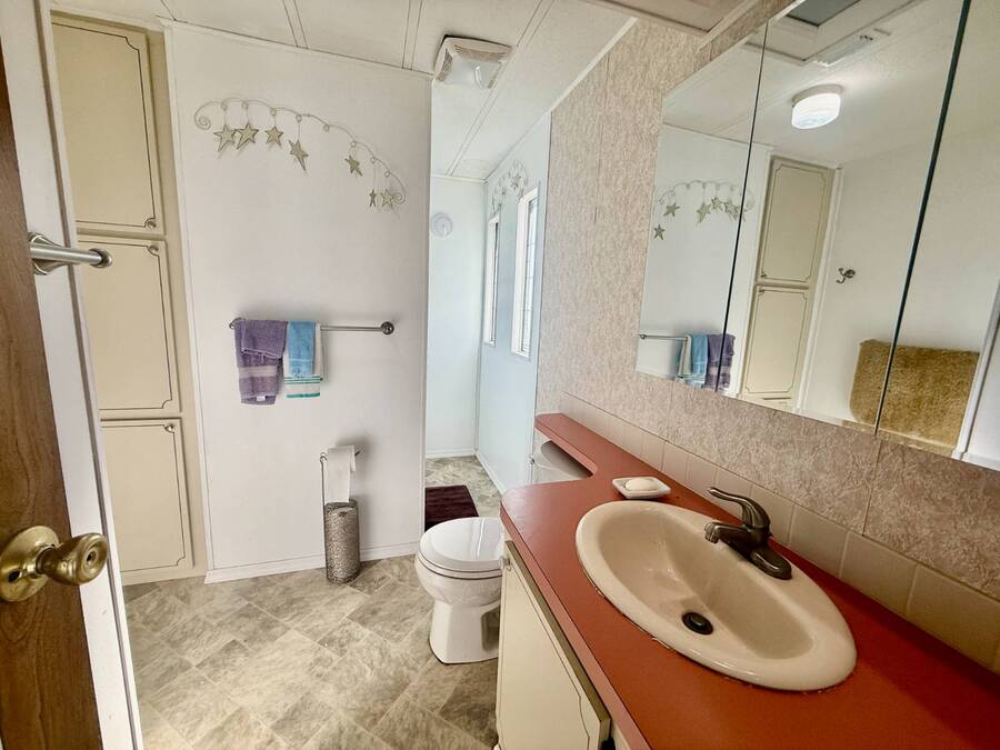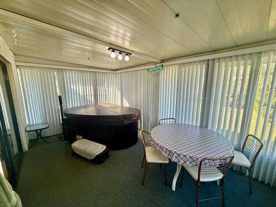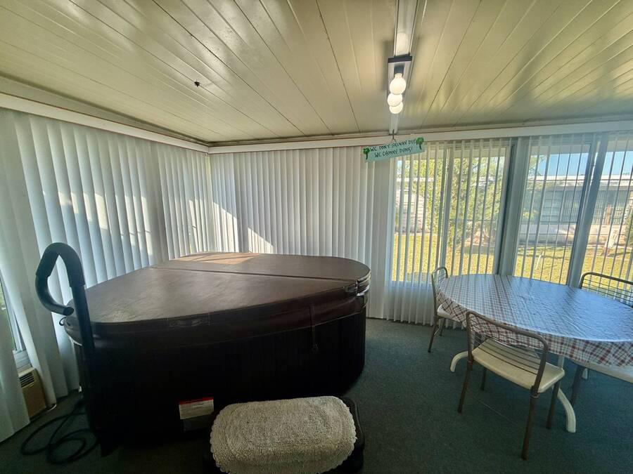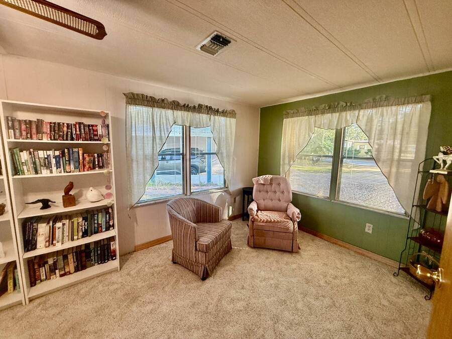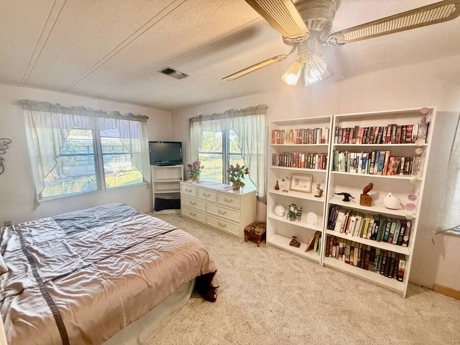 $12,000 PRICE DECREASE!! Home is located in Water Oak Country Club Estates in Lady Lake Florida, an active resort style 55 plus land lease community. This split floorplan home is unique in the community and is located on a large lot. Spacious driveway and carport with extra parking area for a second vehicle or golf cart. The utility shed is large and is great for storage or a workshop. The bedrooms are situated to provide privacy for you and your guests. The primary bedroom and ensuite bathroom is spacious with a walk in closet and has a beautiful renovated walk in shower. The guest bedroom is very large also with a spacious closet and has great views of the golf course. The kitchen has plenty of cupboard and counter space, with an island cooktop and nice large wall oven. A bar top is great for additional seating as well as the full dining area. Convenient indoor laundry located just off the kitchen and washer and dryer convey. Comfortable living room with sliding glass door that lead out to an enclosed lanai, equipped with a hot tub that will stay with home. Small open patio out the back door of the lanai, which is a great spot to BBQ or enjoy the beautiful Florida sunsets overlooking the golf course. Centrally located in the community, just a short ride or nice walk to the main clubhouse/amenities, as well as the on site restaurant and golf course. This home is being offered furnished and the golf cart is negotiable. The AC/Heat pump was replaced in 2018 and the lifetime metal was installed in 2024, which will provide years of worry free living. Water Oak is a premier active 55+ land lease community in Central Florida. A peaceful community with rolling hills, historic trees, and a newly renovated 18-hole championship golf course. Enjoy a gated community that mows your lawn as you live a resort lifestyle with two beautiful clubhouses, heated pools, a sports center, a restaurant, and a variety of clubs and activities. Call us to see this great home today!