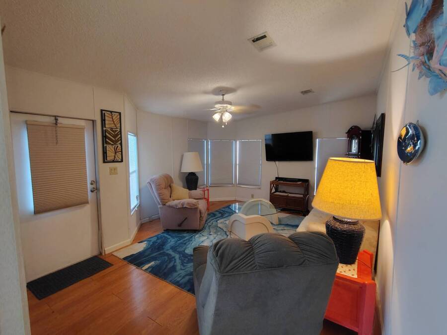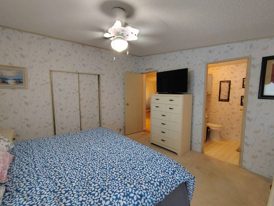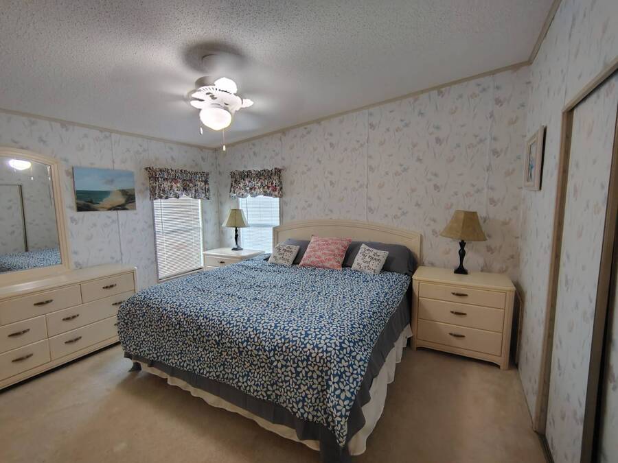 Welcome In!!! Overall home in good shape with some imperfections. But, for the price to be in this community it's a great opportunity to make it your own. Perfect for snowbirds or if you wish to be a permanent resident in this highly sought-after Golf Course Community of Spanish Lakes Fairways. The lot rent will be $865.29 for the new owner. This lovely home features 2 spacious bedrooms, with the primary having its own ensuite bath. The guest bedroom and guest bathroom are adjacent. The spacious eat-in kitchen has everything you need to prepare your favorite meals. Plenty of storage cupboards and counter space. The generous living room showcases laminate floors for easy maintenance and modern appeal. On the exterior, a concrete patio is perfect for enjoying the cooler days or just firing up your grill. Store your tools and extra gear in the nice-sized storage shed. This house comes fully furnished and is just waiting for its new owners. Welcome to Spanish Lakes Fairways, featuring 2 heated pools, a clubhouse with billiard tables, a card table, tennis courts for pickleball or tennis, bocce, and many clubs to join. Just 20-25 minutes to coastal beaches, and downtown Fort Pierce. The downtown has plenty of restaurants, some of which are seaside. Enjoy a walk on the Jedi and take in the Ocean Breeze. 5 minutes to I-95, 15 minutes to Vero Beach, where there are more shopping and restaurants to enjoy. All incoming residents are required to apply to the Spanish Lakes Community and go through the approval process. Call today to schedule your showing. All reasonable offers will be considered. All listing information is deemed reliable but not guaranteed and should be independently verified through personal inspection by appropriate professionals. Our company does not and cannot guarantee or warrant the accuracy of this information or the condition of this property. Measurements are approximate. The buyer assumes full responsibility for obtaining all current rates of lot rent, fees, and pass-on costs. Additionally, the buyer is responsible for obtaining all rules, regulations, pet policies, etc., associated with the community, park, or home from the community/park manager. Our company is not responsible for quoting said fees or policies. Financing is available through 3rd party lenders. The sales price does not include tax, dealer fees, or administrative fees. Please contact the sales agent for additional information.