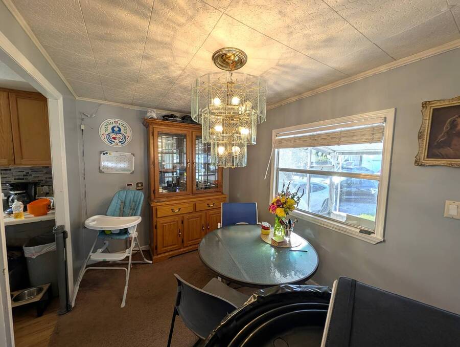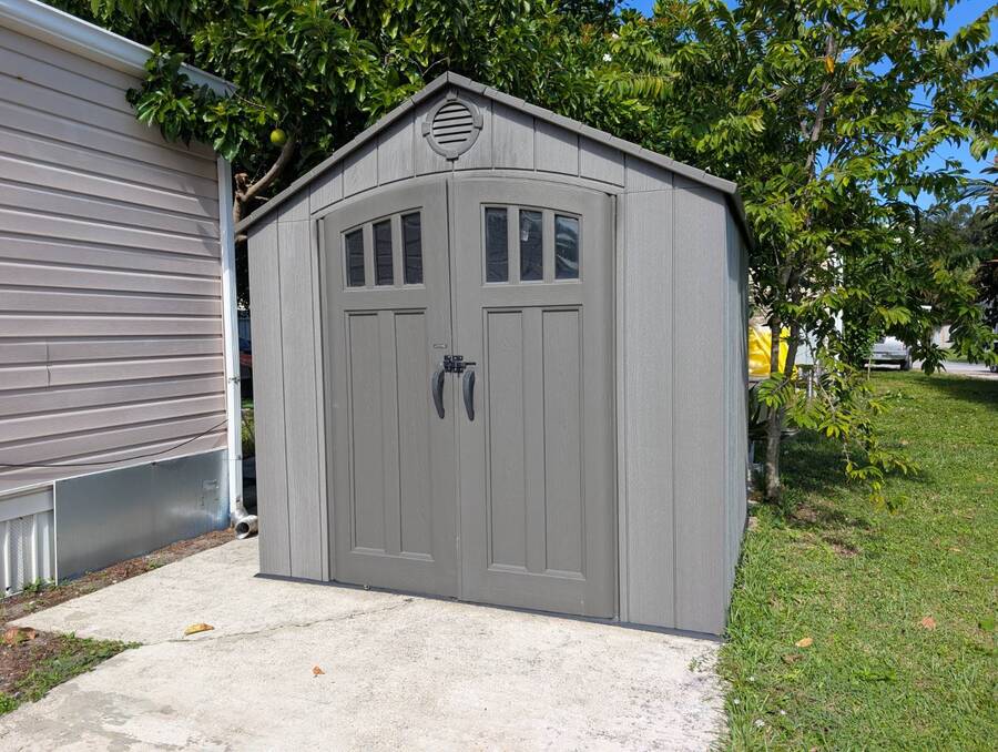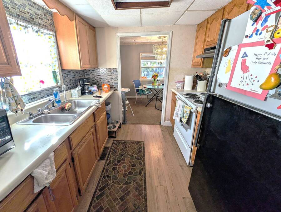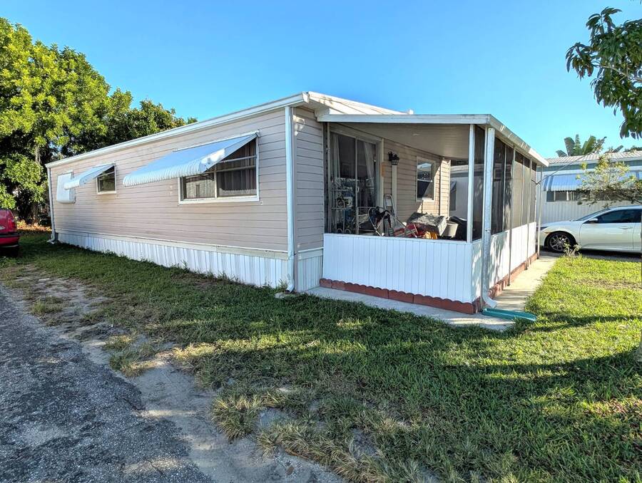Discover this delightful 2-bedroom, 2-bath home that perfectly blends comfort, charm, and convenience. Step inside to an open floor plan filled with natural light, creating an inviting atmosphere throughout. The spacious master suite features a large bathroom for added comfort and privacy. A roomy kitchen offers plenty of space for cooking and entertaining, while the adjoining dining area is accented by an elegant chandelier. The home also includes an interior laundry area with washer and dryer, central A/C, and an additional mini-split system for energy-efficient cooling. Enjoy outdoor living on the screened patio or take advantage of the extra storage provided by the shed. The property is surrounded by mature fruit trees and equipped with window shutters. Parking is available for several vehicles, and the community offers fantastic amenities - including swimming pools, a clubhouse, playground, and basketball court. Located in an all-ages community close to shopping, dining, and daily conveniences, with quick access to I-95. A comfortable and inviting place to call home! Mobile home only. Lot lease $1080/month
