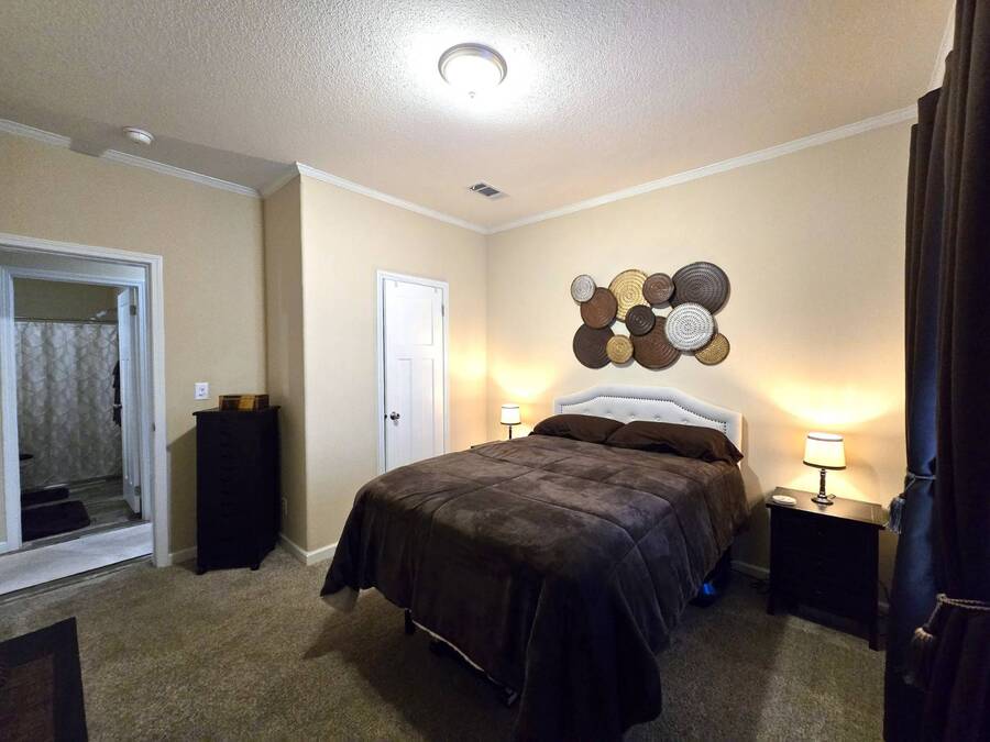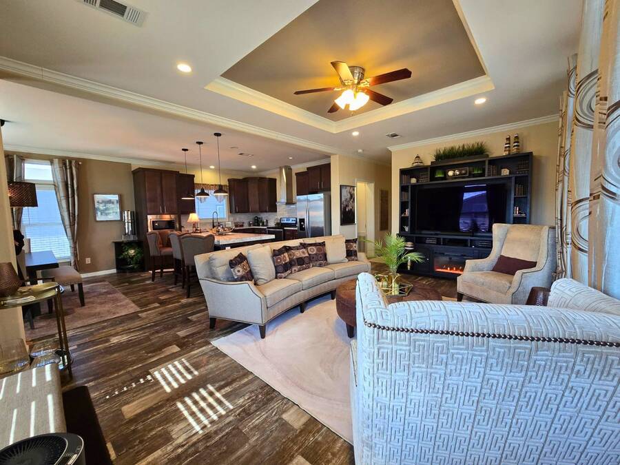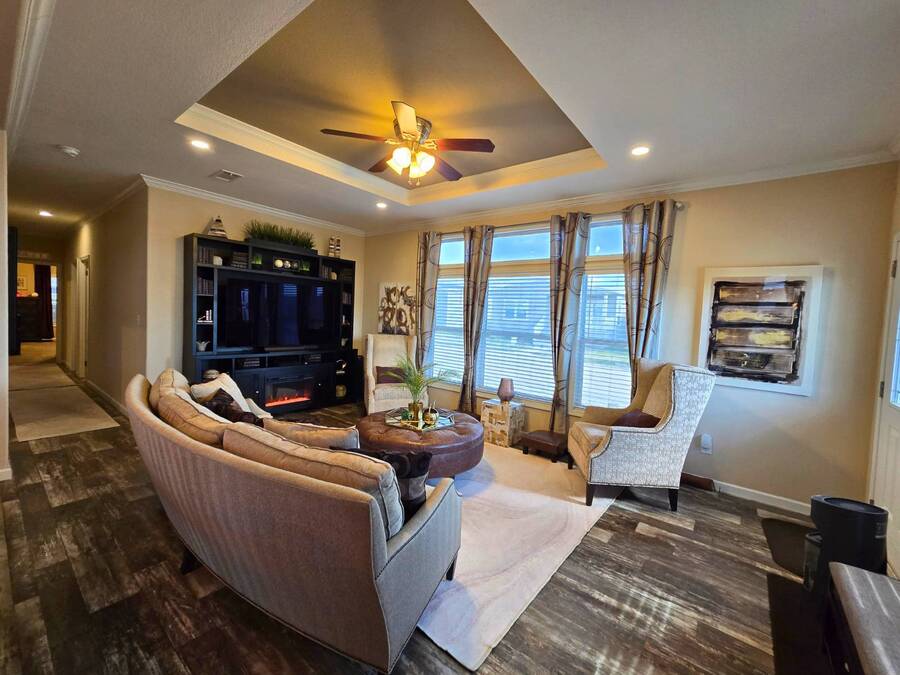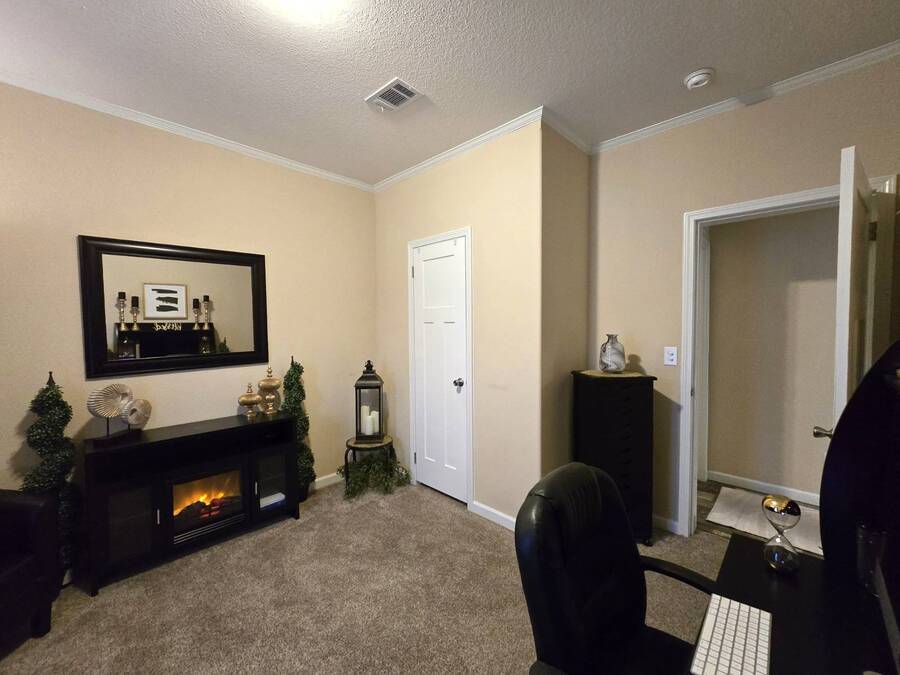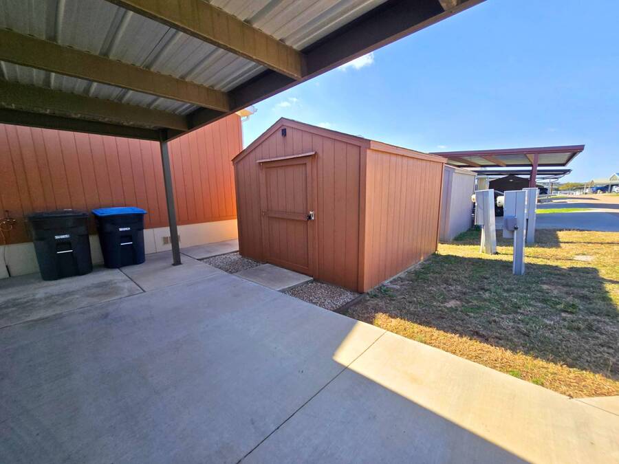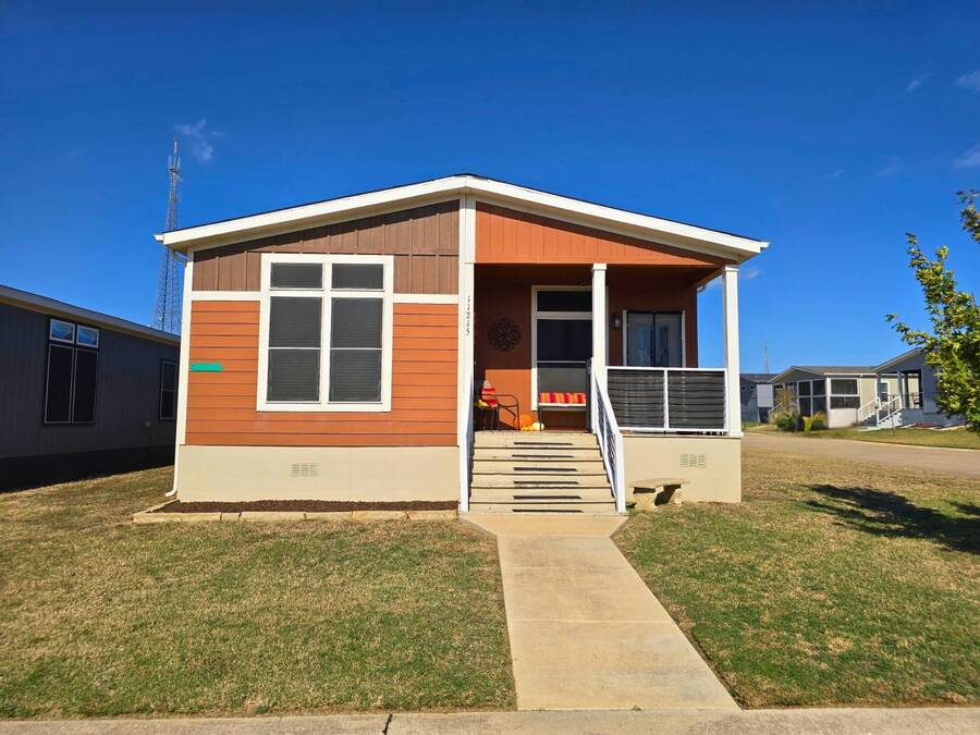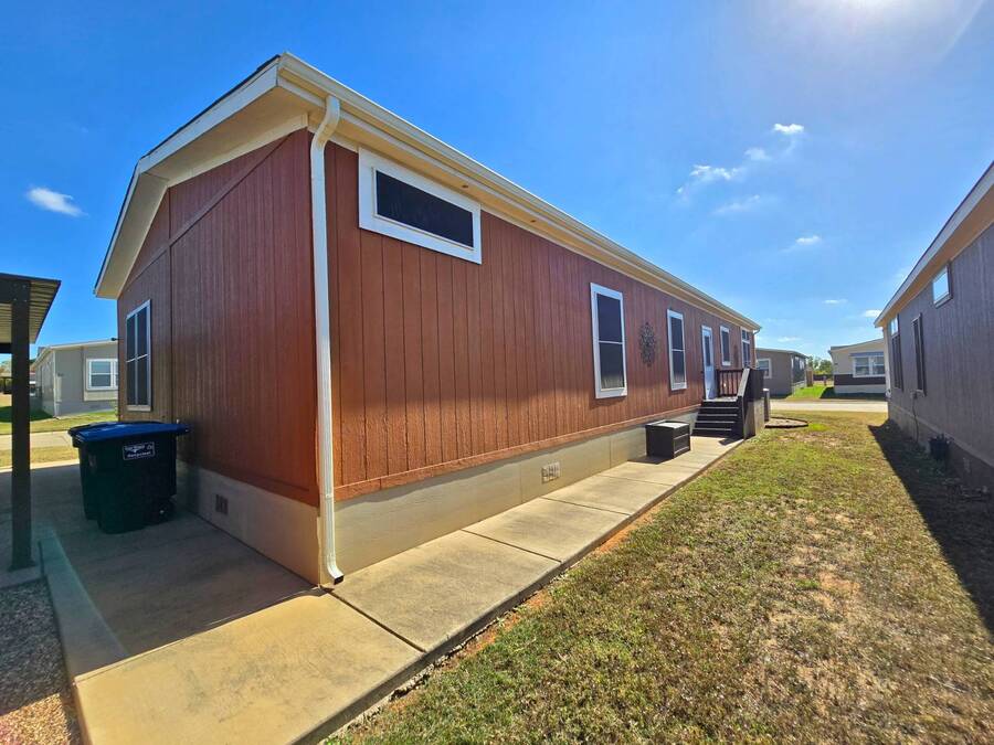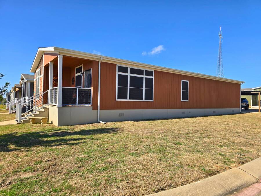Beautiful and well-maintained 4-bedroom, 2-bath doublewide located in the highly desirable Harston Woods community. Inside, the open-concept layout features a spacious living room with a tray ceiling, large windows for natural light, and a seamless flow into the kitchen and dining areas. The kitchen includes generous cabinet storage, ample counter space, an oversized island with bar seating, and stainless-steel appliances, including a refrigerator, dishwasher, and garbage disposal; the stove and microwave are NEW (March 2026). The primary suite offers a private bath and walk-in closet, while three additional bedrooms and a secondary bathroom provide comfortable flexibility for family, guests, or work-from-home needs. Outside, the home features a covered front porch, solar screens, gutters, a large carport, and a storage shed for added convenience. The community is clean, well-kept, and ideally located near major highways, offering easy access to entertainment, shopping, and great local restaurants. Lot rent is $750 per month, and community approval is required. Disclosures are regulated by the Texas Department of Housing and Community Affairs (TDHCA). Select furnishings may be available for separate purchase.